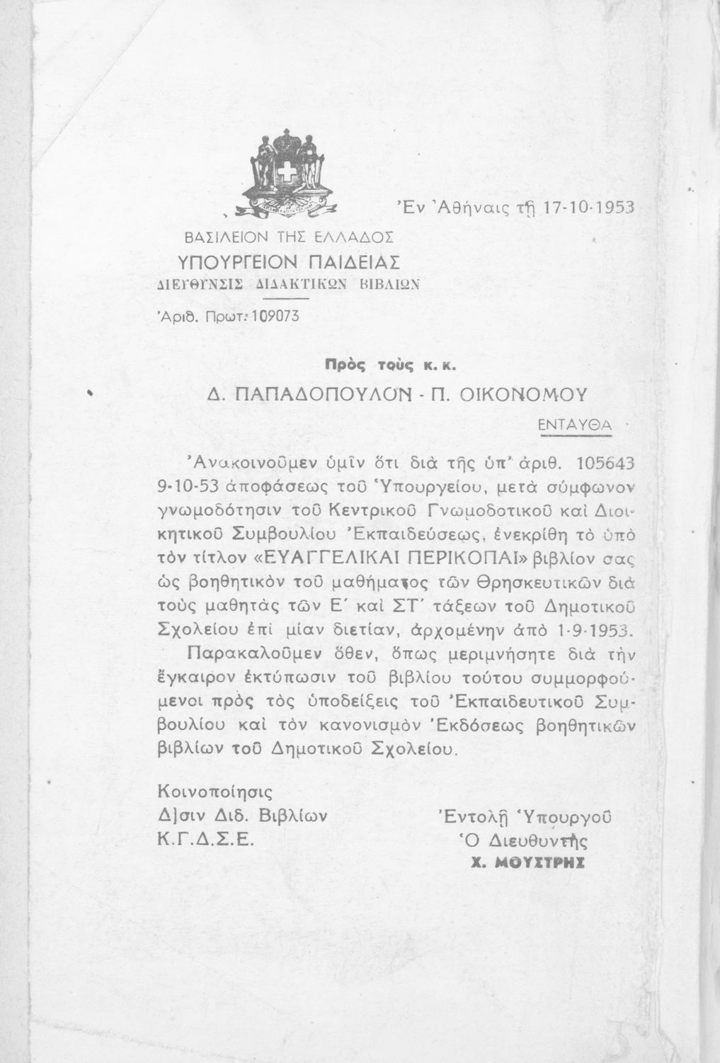 Τίτλος: Ευαγγελικαί Περικοπαί προς χρήσιν των μαθητών Ε' και ΣΤ' τάξεως των δημ. σχολείων