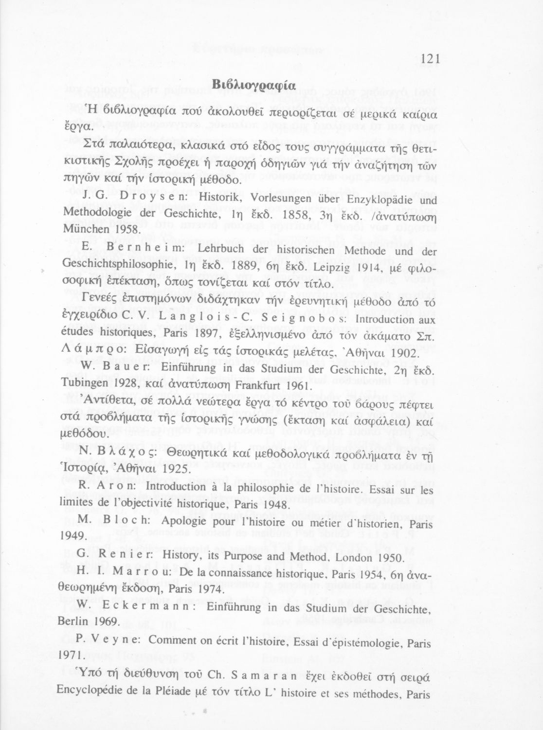 Σχολικό εγχειρίδιο Ιστορίας Γ΄ Λυκείου που περιλαμβάνει μια εισαγωγή στις ιστορικές σπουδές και μεθοδολογικά ζητήματα έρευνας της ιστορίας και σχολιάζει ζητήματα ιστορικών πηγών.