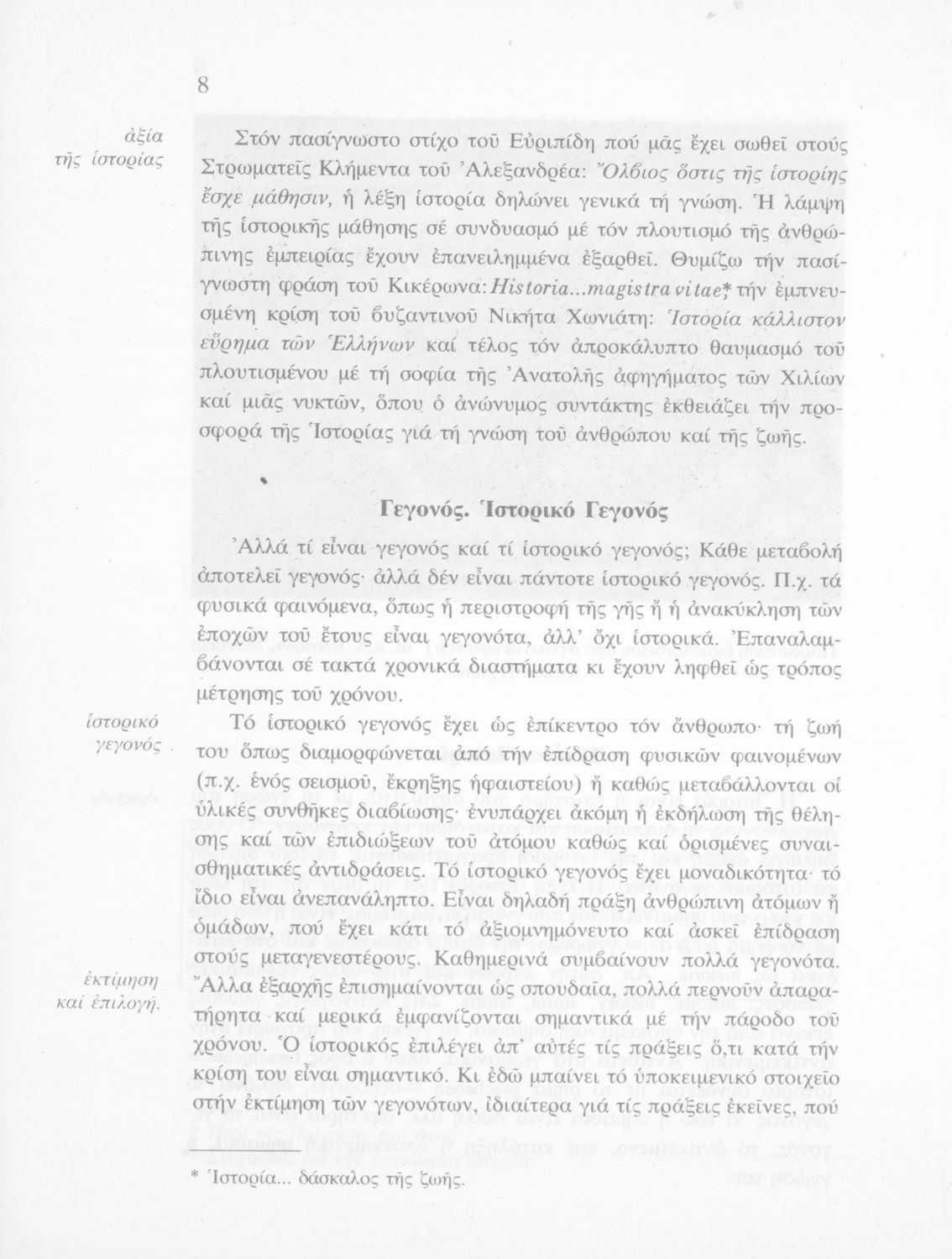 Σχολικό εγχειρίδιο Ιστορίας Β΄ Λυκείου που αποτελεί εισαγωγή στην ιστοριογραφία και την επιστήμη της ιστορίας και αναλύει τα είδη των ιστορικών πηγών.
