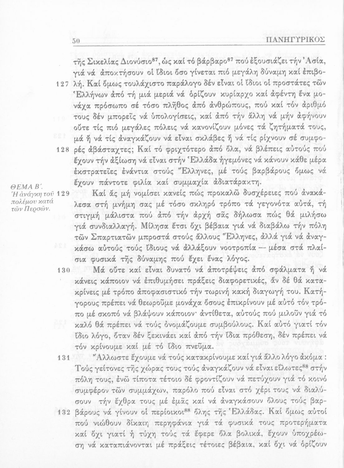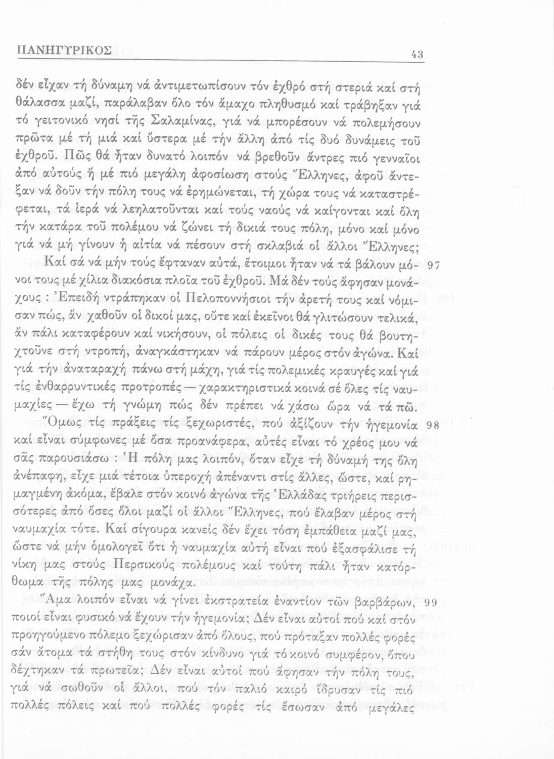 Σχολικό εγχειρίδιο Αρχαίων Ελληνικών Β΄ Γυμνασίου που περιλαμβάνει εισαγωγή στη ζωή και το έργο του Ισοκράτη, τον Πανηγυρικό, μετάφραση και ερμηνευτικές σημειώσεις.