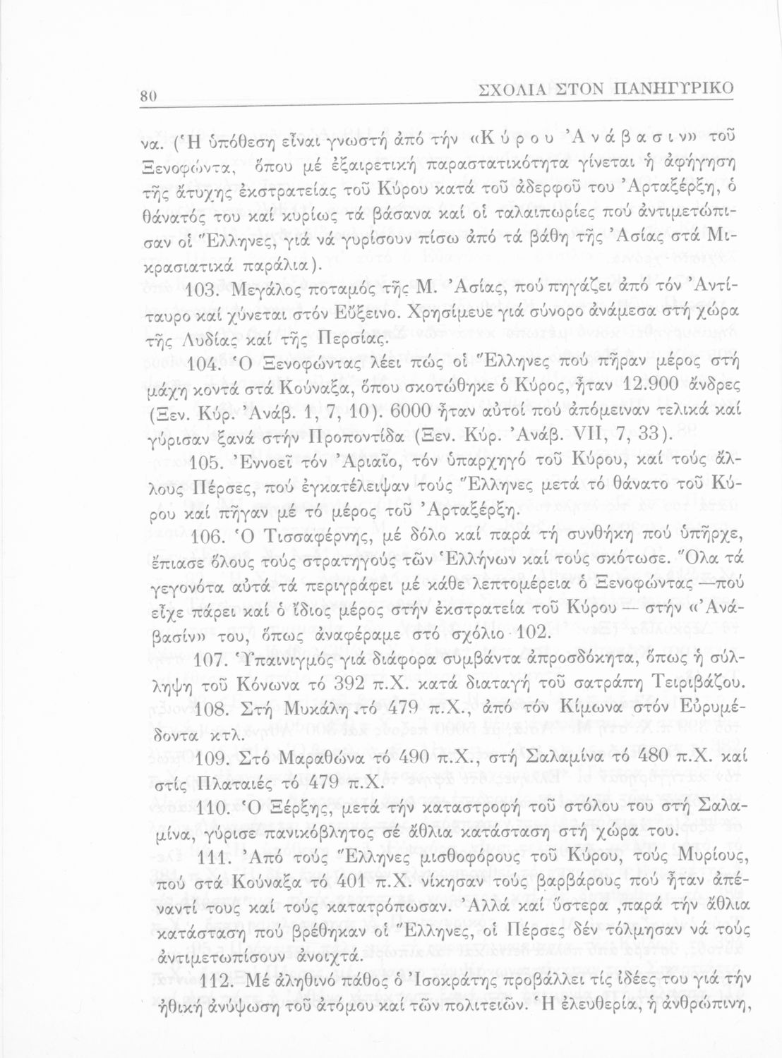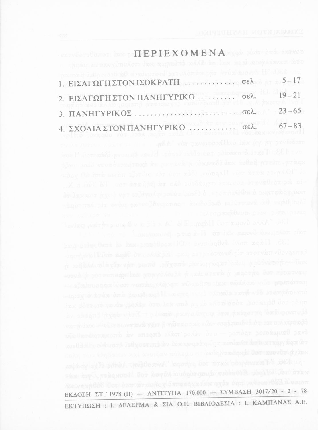 Σχολικό εγχειρίδιο Αρχαίων Ελληνικών Β΄ Γυμνασίου που περιλαμβάνει εισαγωγή στη ζωή και το έργο του Ισοκράτη, τον Πανηγυρικό, μετάφραση και ερμηνευτικές σημειώσεις.