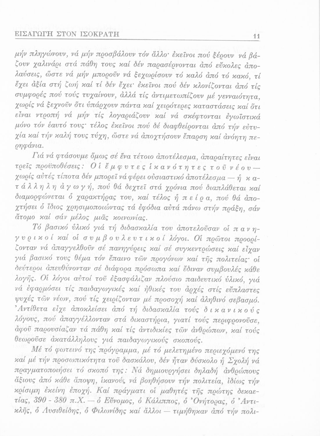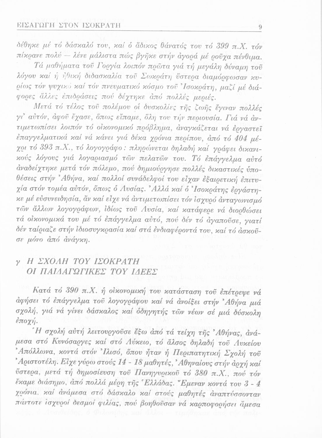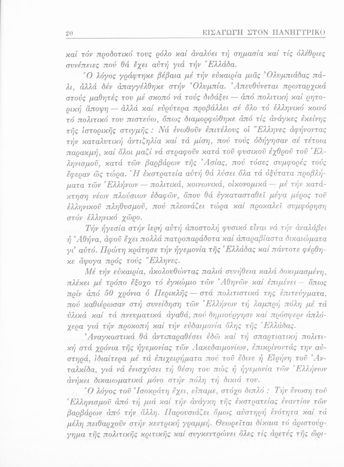 Σχολικό εγχειρίδιο Αρχαίων Ελληνικών Β΄ Γυμνασίου που περιλαμβάνει εισαγωγή στη ζωή και το έργο του Ισοκράτη, τον Πανηγυρικό, μετάφραση και ερμηνευτικές σημειώσεις.