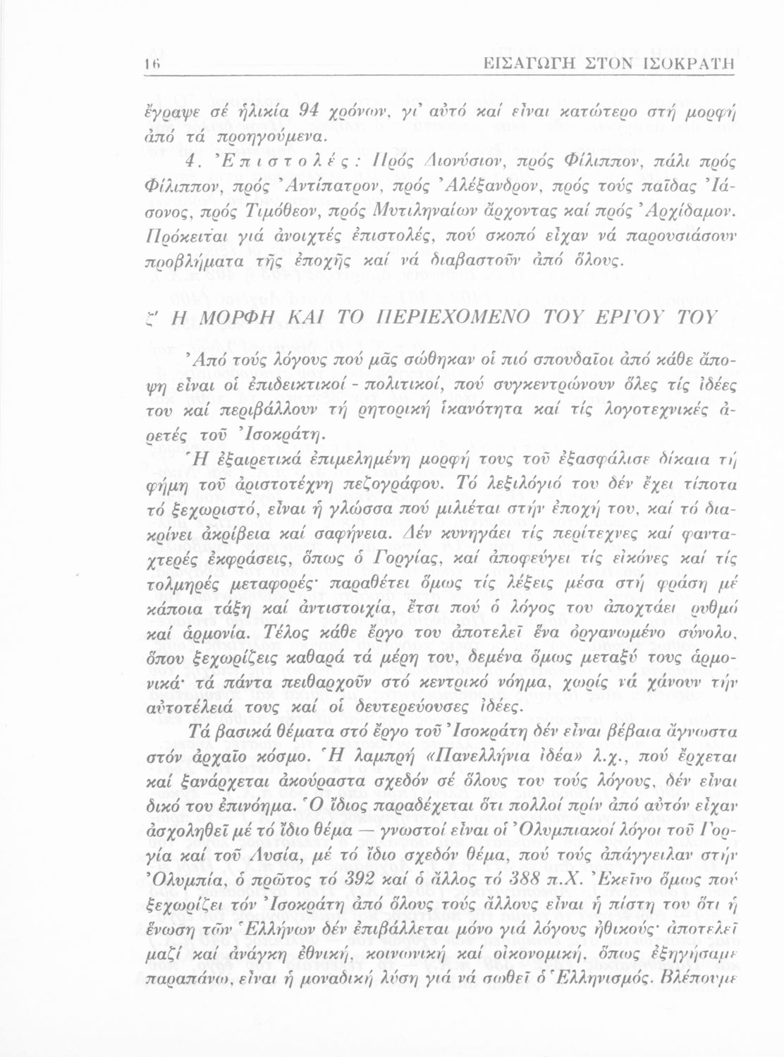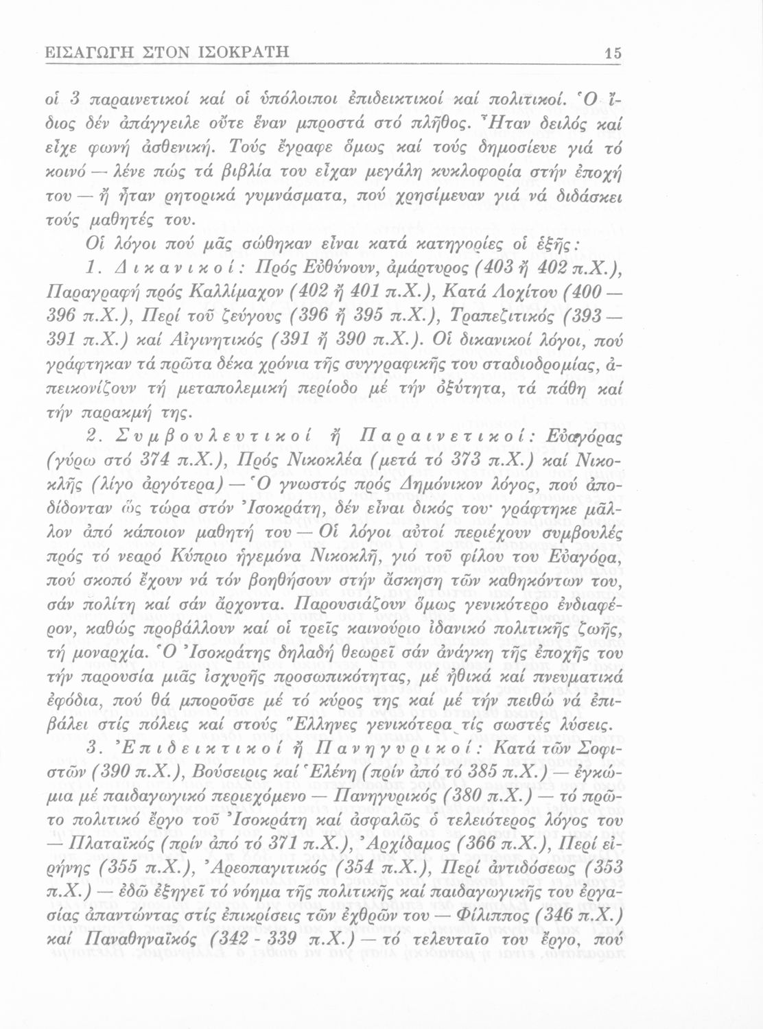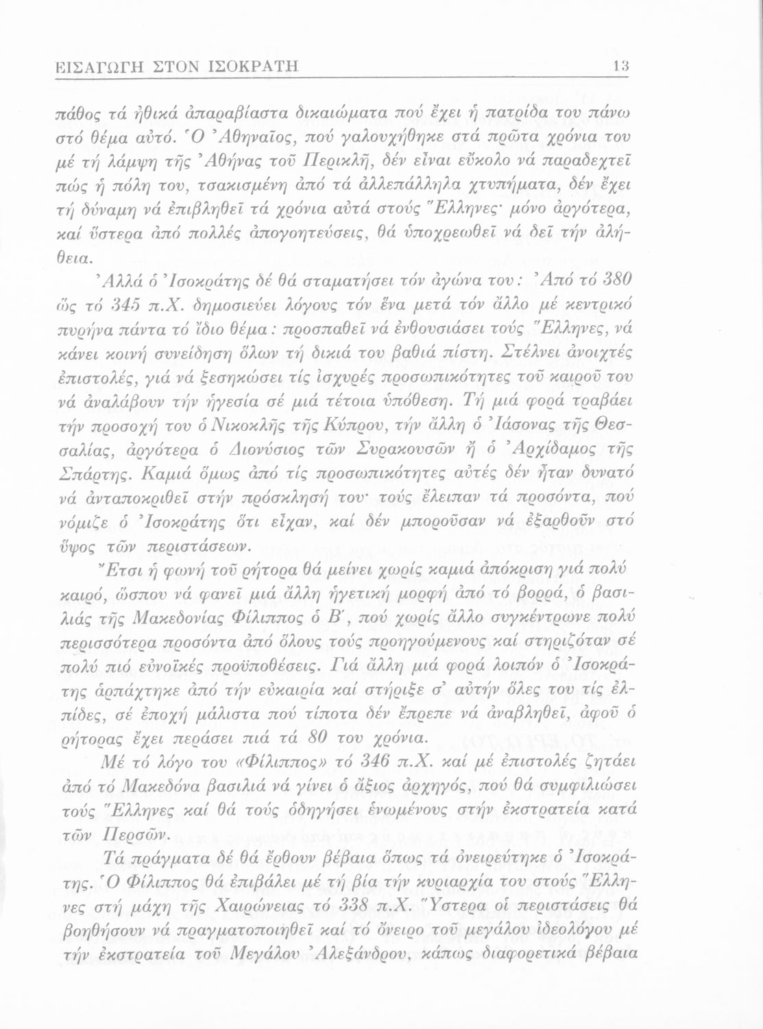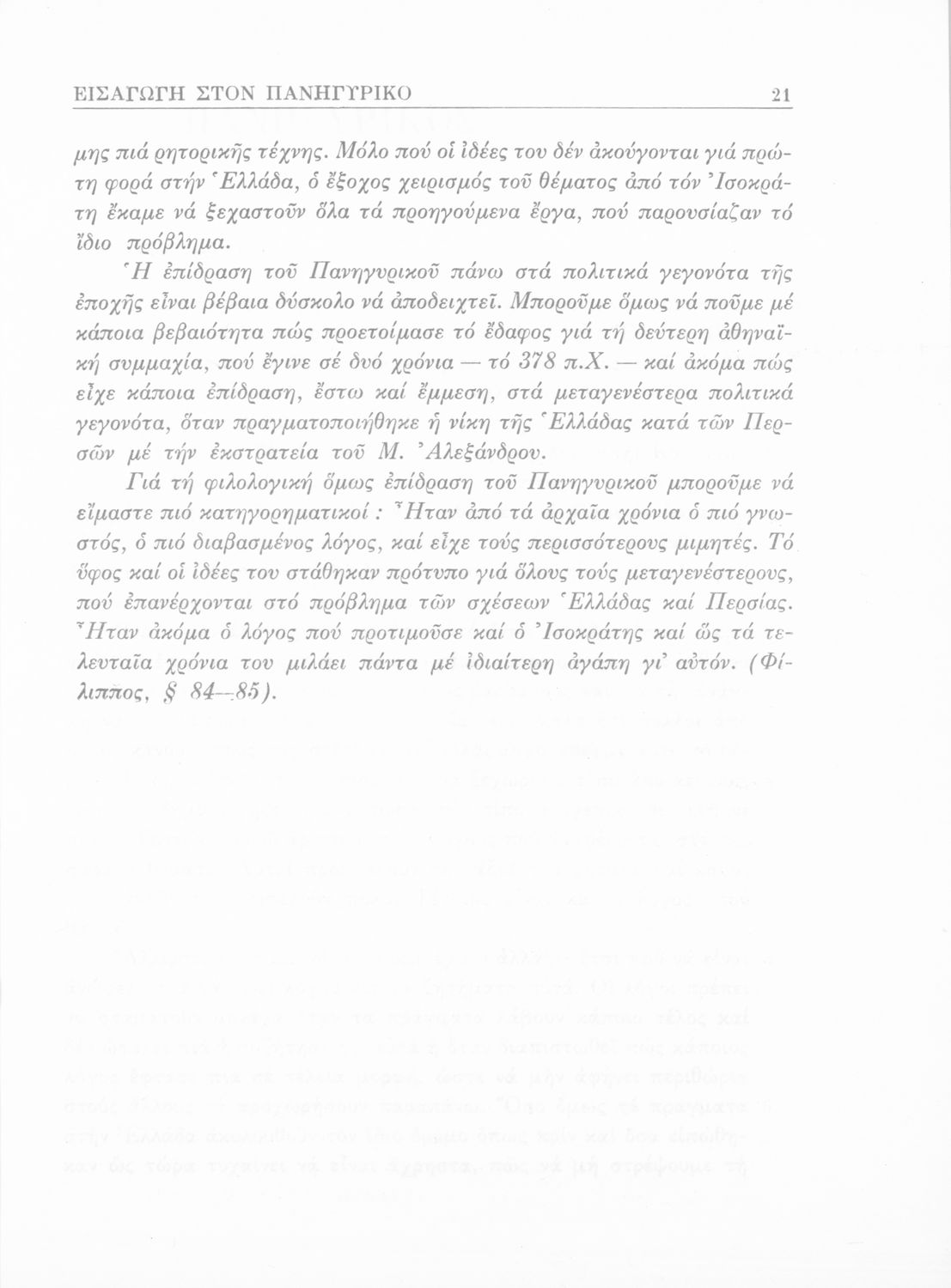 Σχολικό εγχειρίδιο Αρχαίων Ελληνικών Β΄ Γυμνασίου που περιλαμβάνει εισαγωγή στη ζωή και το έργο του Ισοκράτη, τον Πανηγυρικό, μετάφραση και ερμηνευτικές σημειώσεις.