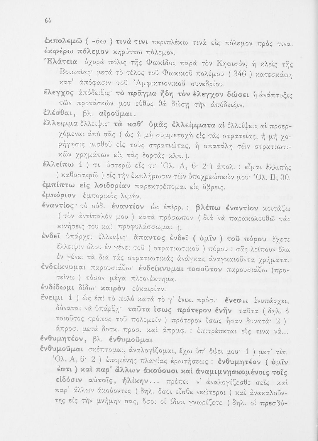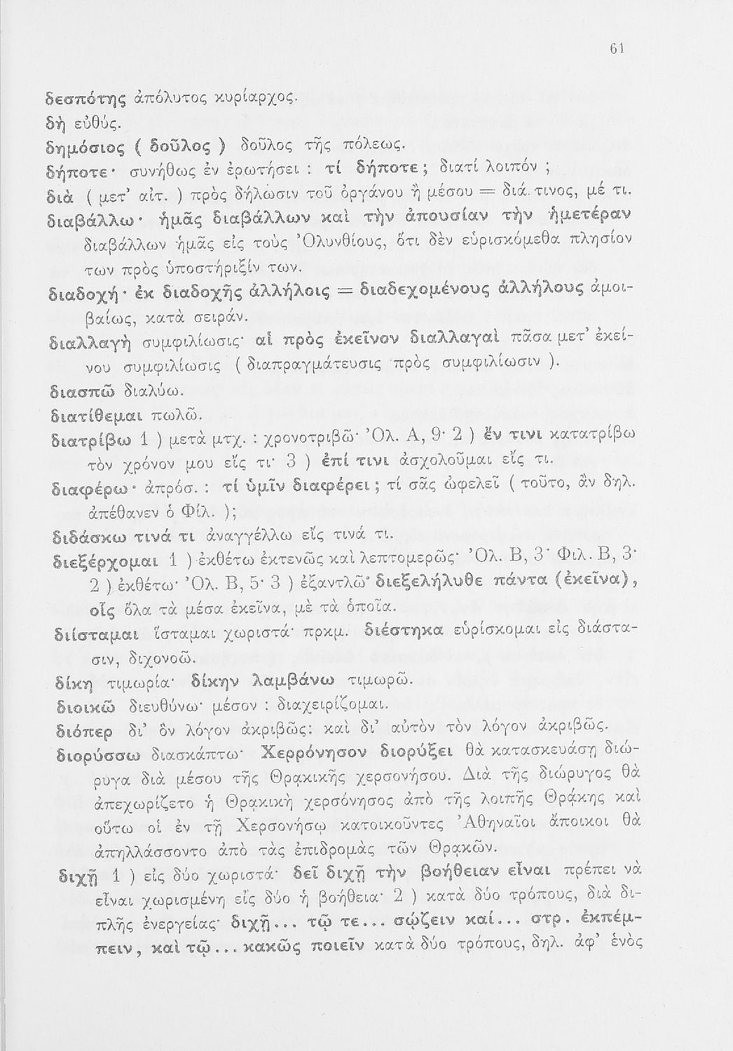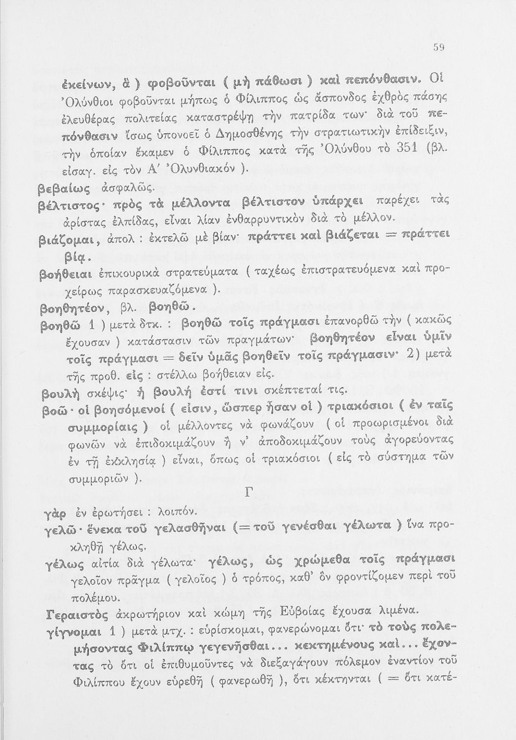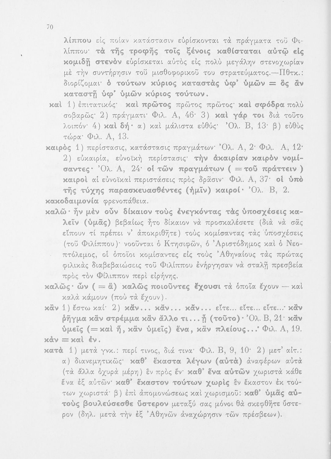 Σχολικό εγχειρίδιο Αρχαίων Ελληνικών Δ' Γυμνασίου που περιέχει τους Ολυνθιακούς Α΄ και Β΄ και τους Φιλιππικούς Α΄ και Β' του Δημοσθένη, ερμηνευτικά σχόλια και εισαγωγή στη ζωή και το έργο του Δημοσθένη. Φέρει το σύμβολο της δικτατορίας.