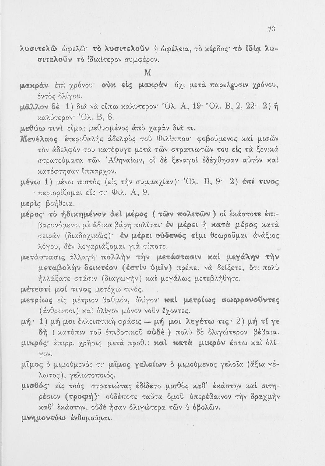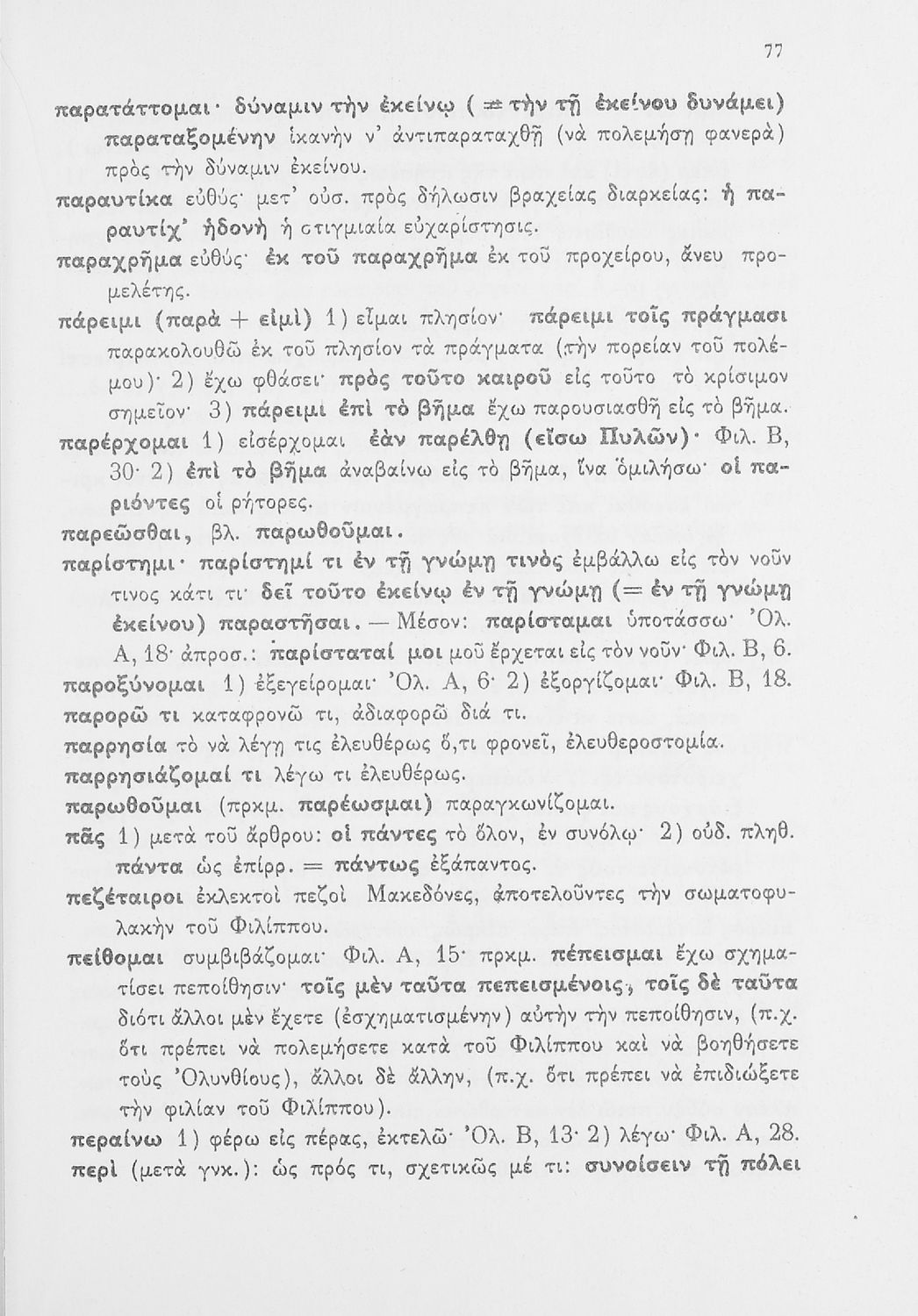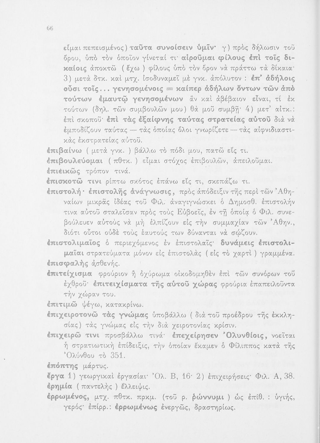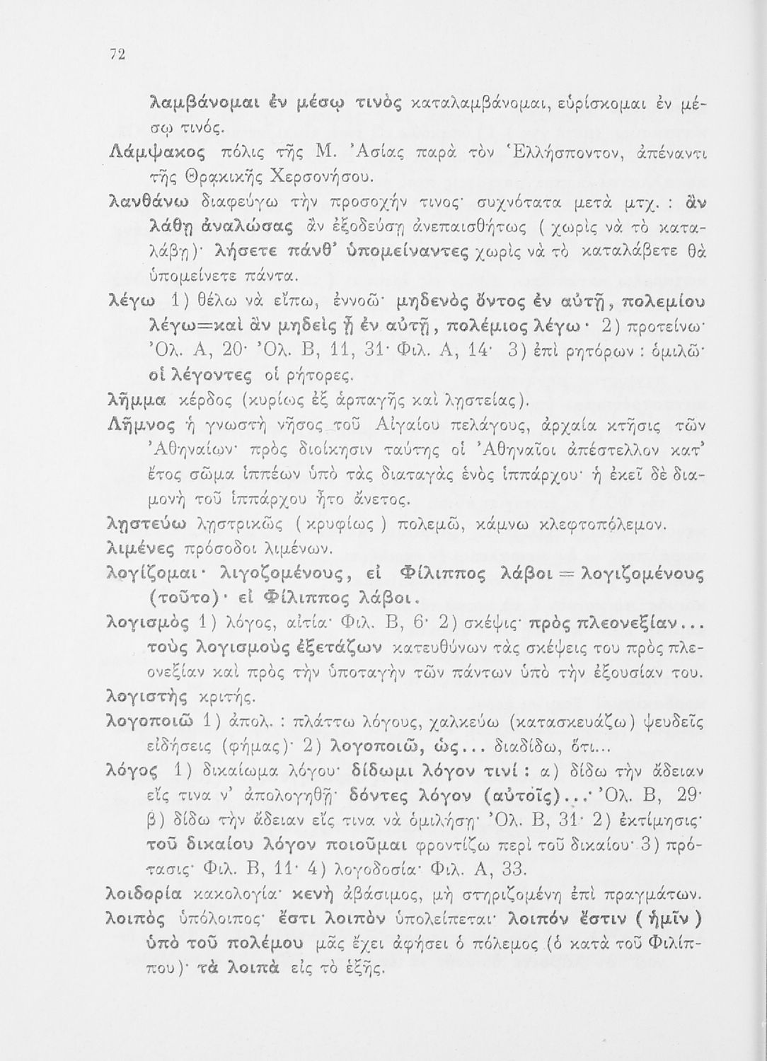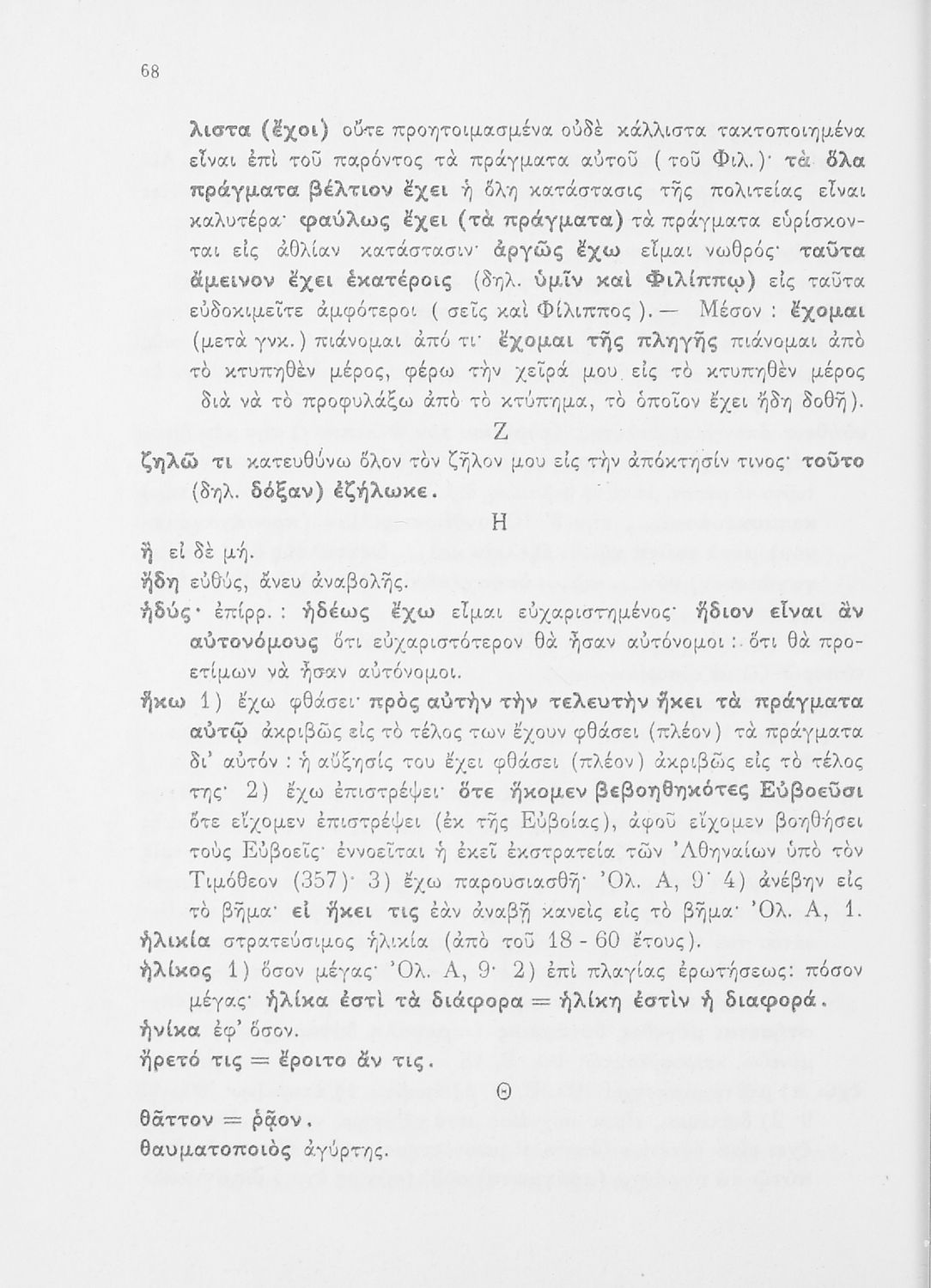 Σχολικό εγχειρίδιο Αρχαίων Ελληνικών Δ' Γυμνασίου που περιέχει τους Ολυνθιακούς Α΄ και Β΄ και τους Φιλιππικούς Α΄ και Β' του Δημοσθένη, ερμηνευτικά σχόλια και εισαγωγή στη ζωή και το έργο του Δημοσθένη. Φέρει το σύμβολο της δικτατορίας.