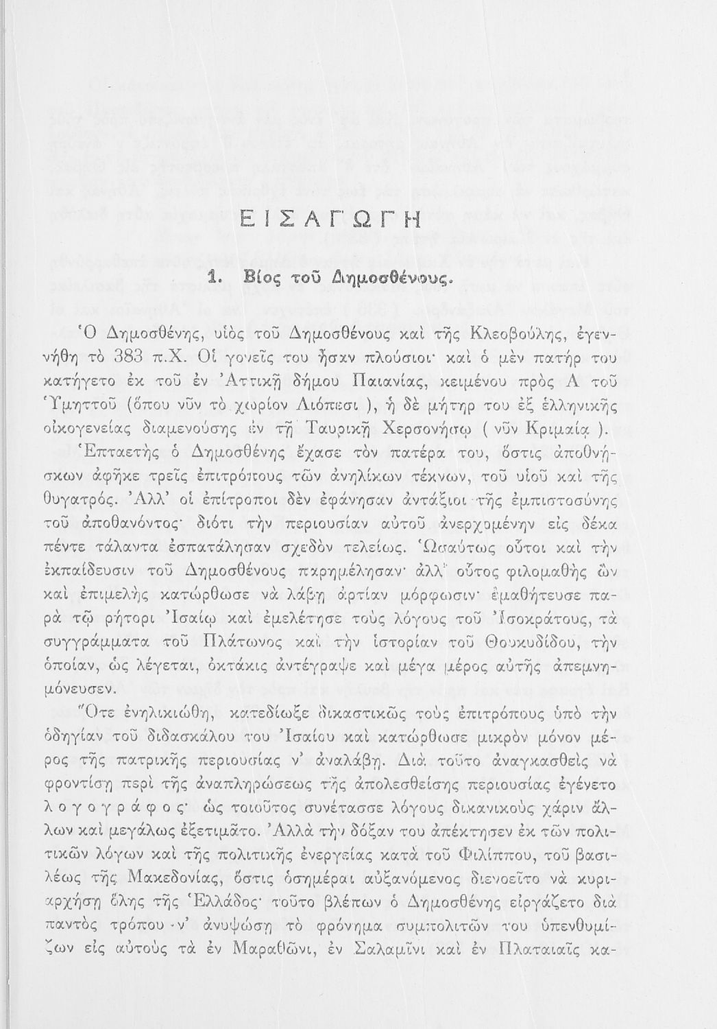 Δημοσθένης, Λυκούργος, Ισοκράτης, Κυριάκος Κοσμάς, Νικ. Φραγκίσκος, Μιχ. Περίδης, Γ. Παπαοικονόμου (σχόλια)