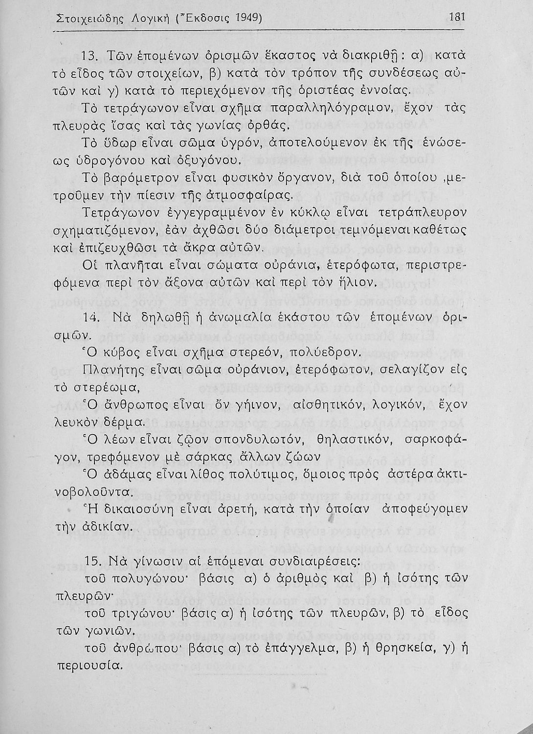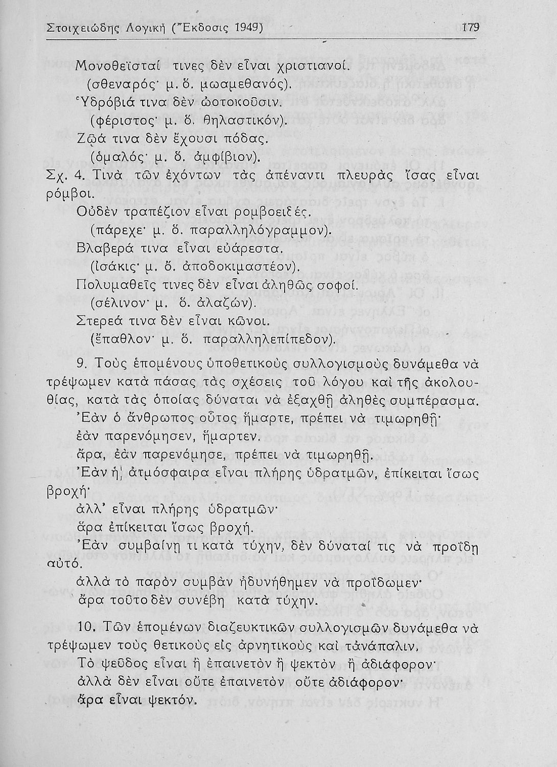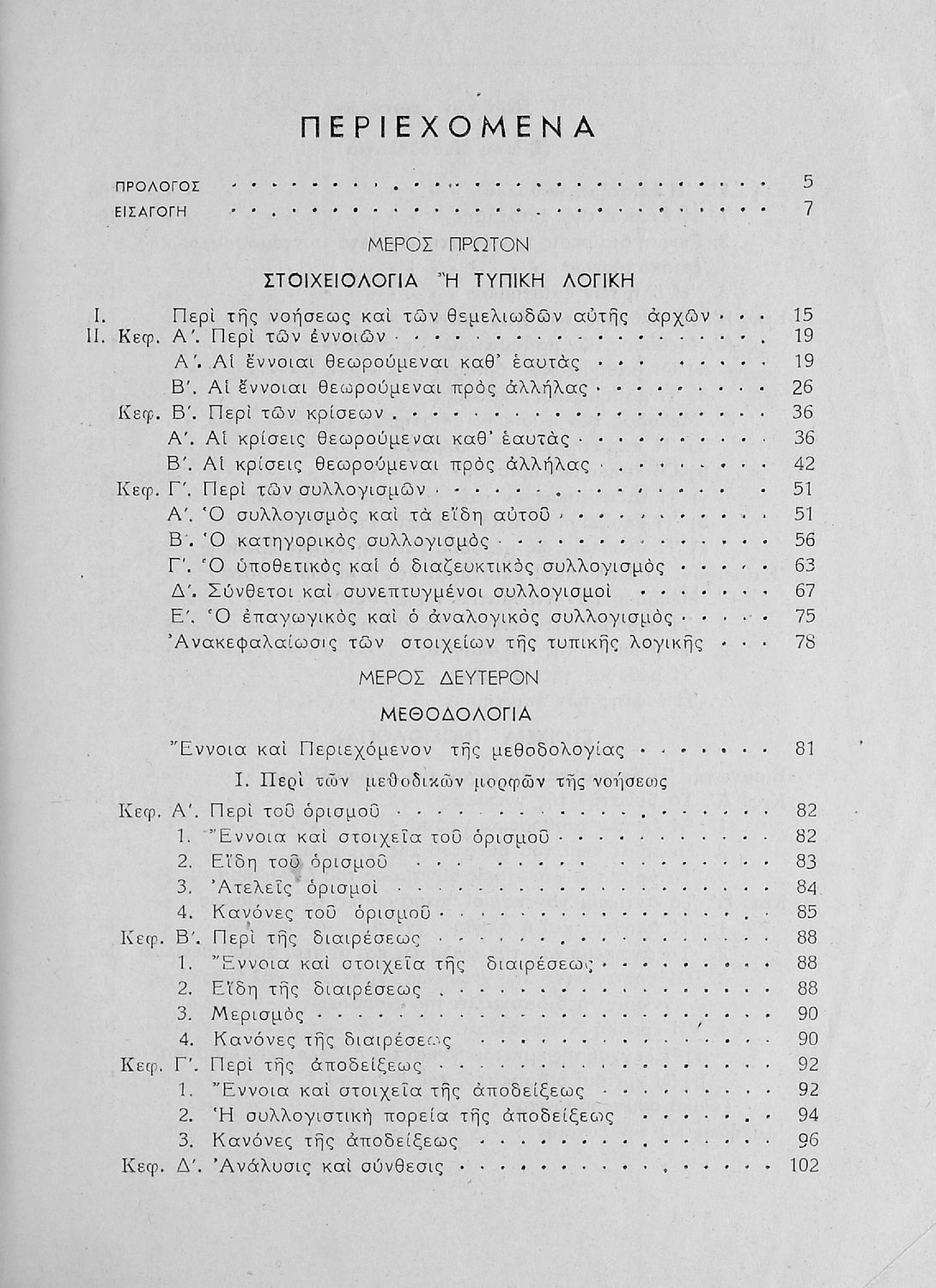 Σχολικό εγχειρίδιο Λογικής Γυμνασίου που είναι χωρισμένο σε στοιχειολογία ή τυπική λογική, μεθοδολογία και γνωσιολογία. Περιέχει ασκήσεις λογικής.