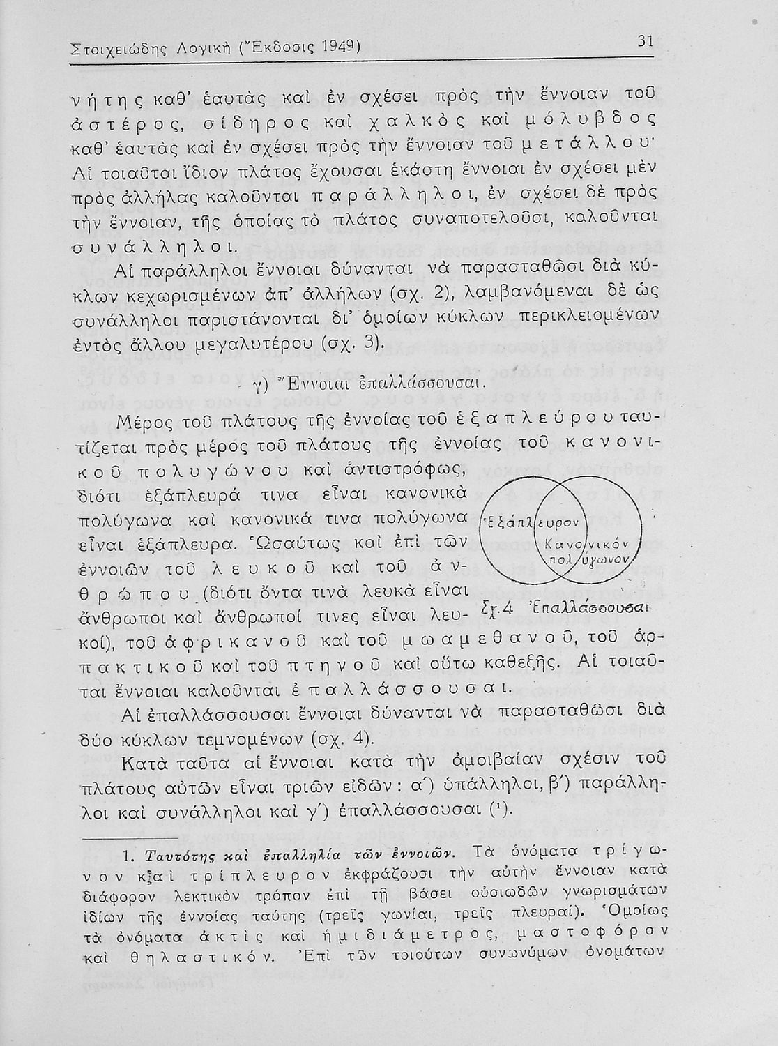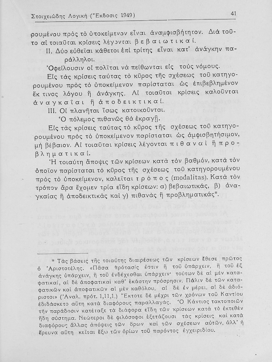 Σχολικό εγχειρίδιο Λογικής Γυμνασίου που είναι χωρισμένο σε στοιχειολογία ή τυπική λογική, μεθοδολογία και γνωσιολογία. Περιέχει ασκήσεις λογικής.