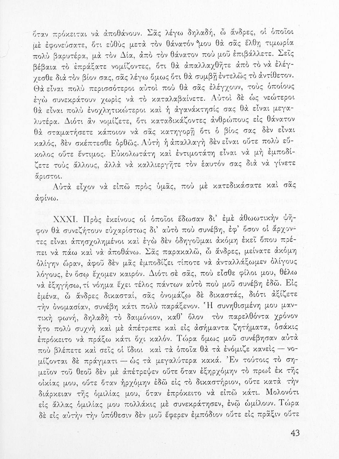 Πλάτωνος Απολογία Σωκράτους, Ε΄ Γυμνασίου