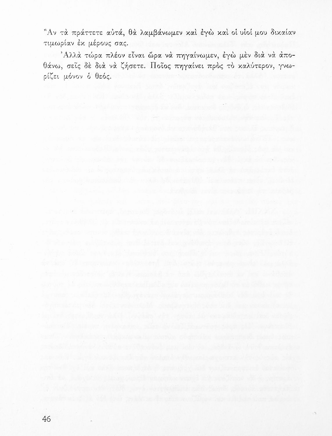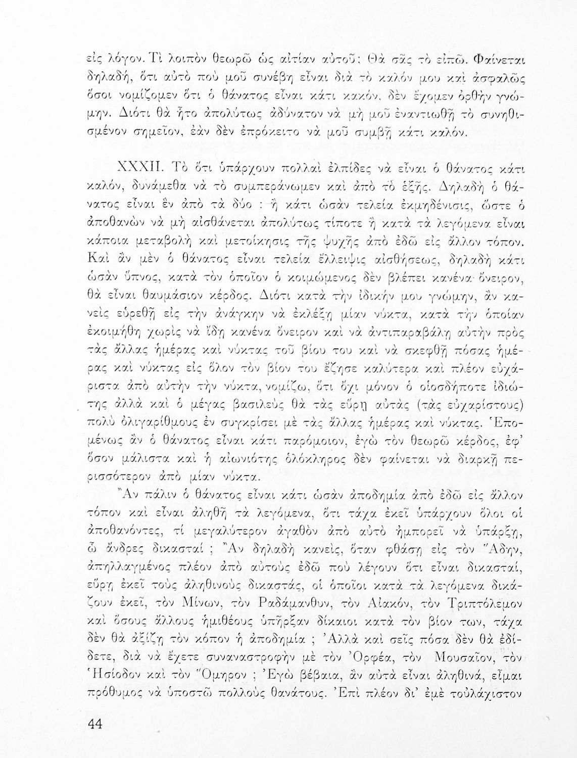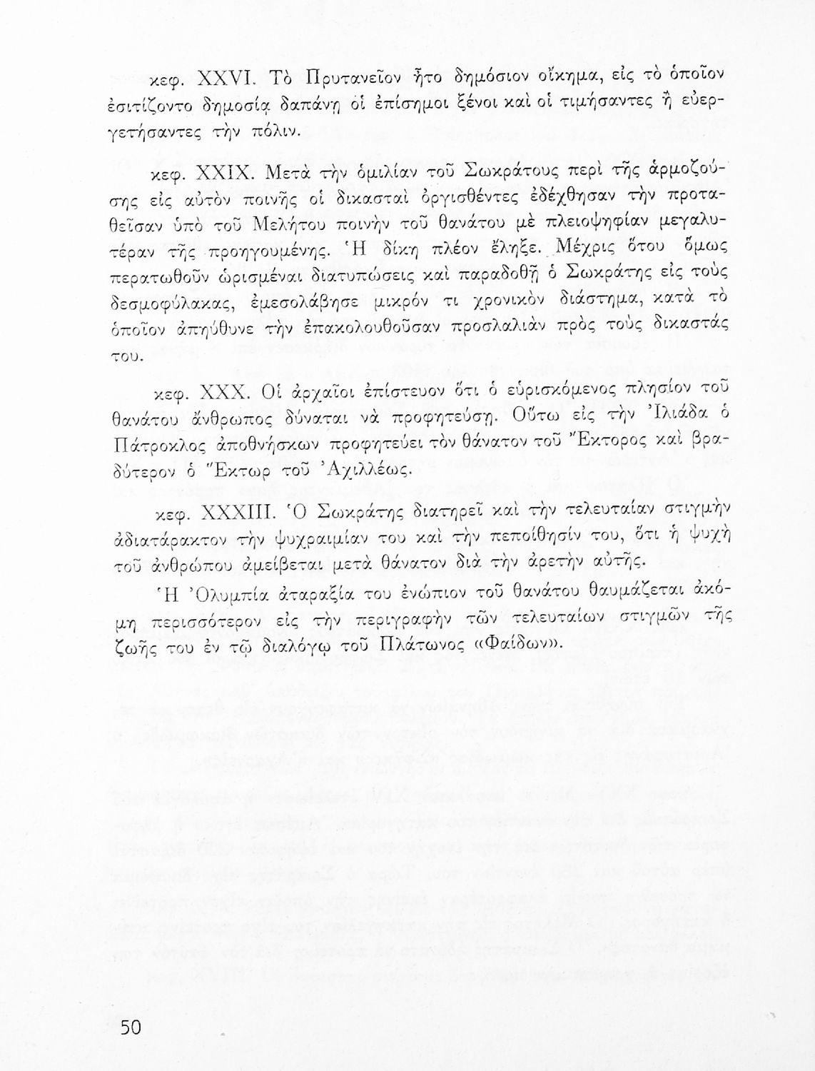 Σχολικό εγχειρίδιο Αρχαίων Ελληνικών για την Ε' Γυμνασίου. Βιβλίο που περιλαμβάνει εισαγωγή με το βίο του Πλάτωνα ενώ το κείμενο είναι μετάφραση. Το βιβλίο κοσμείται από το σύμβολο της επταετίας.