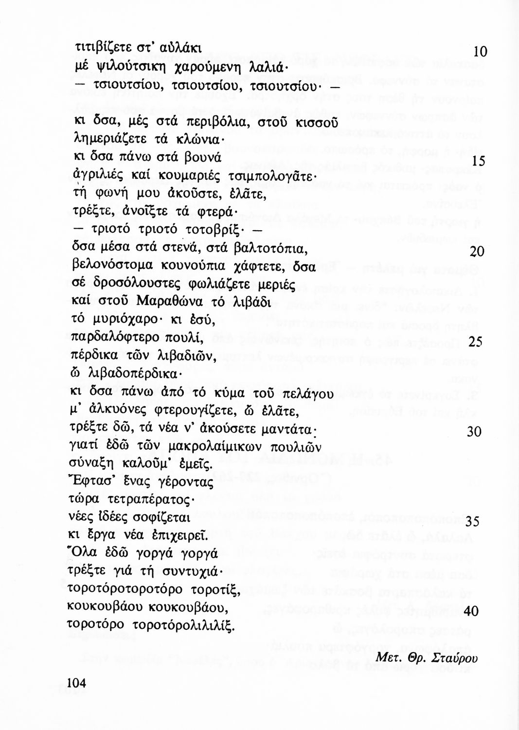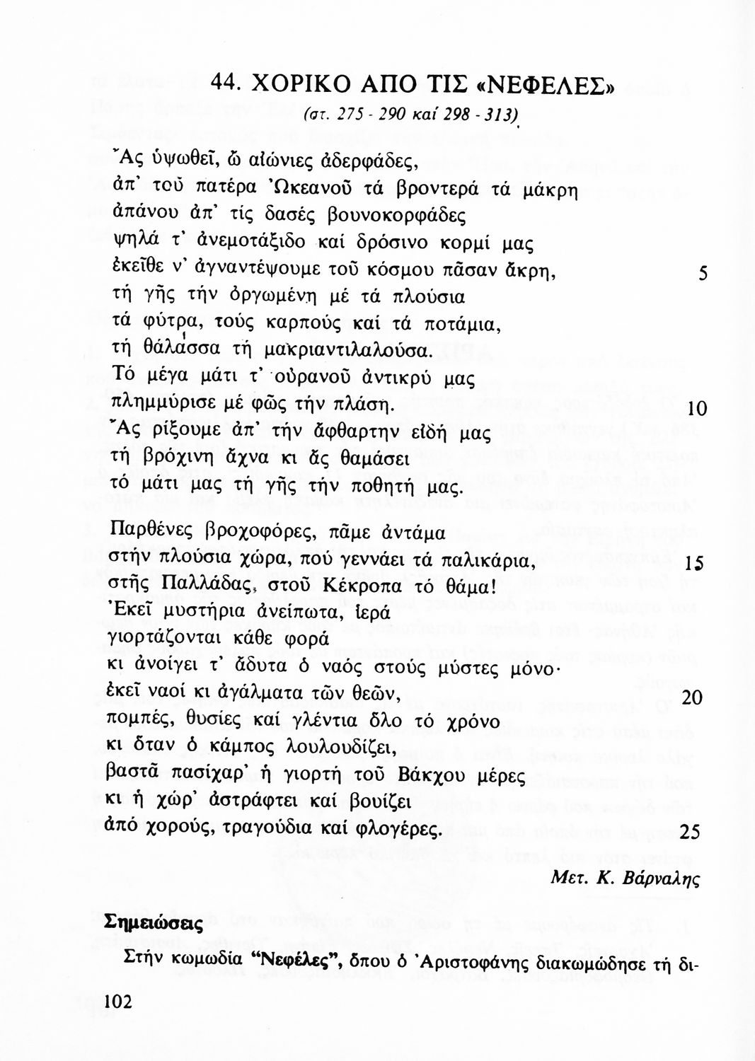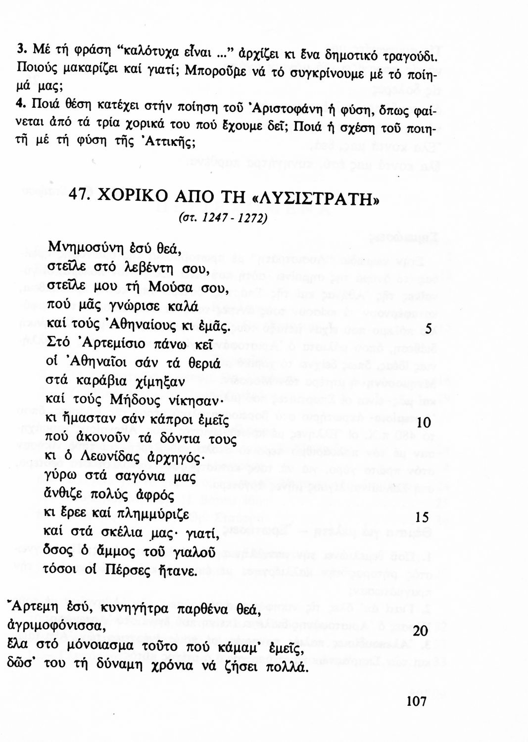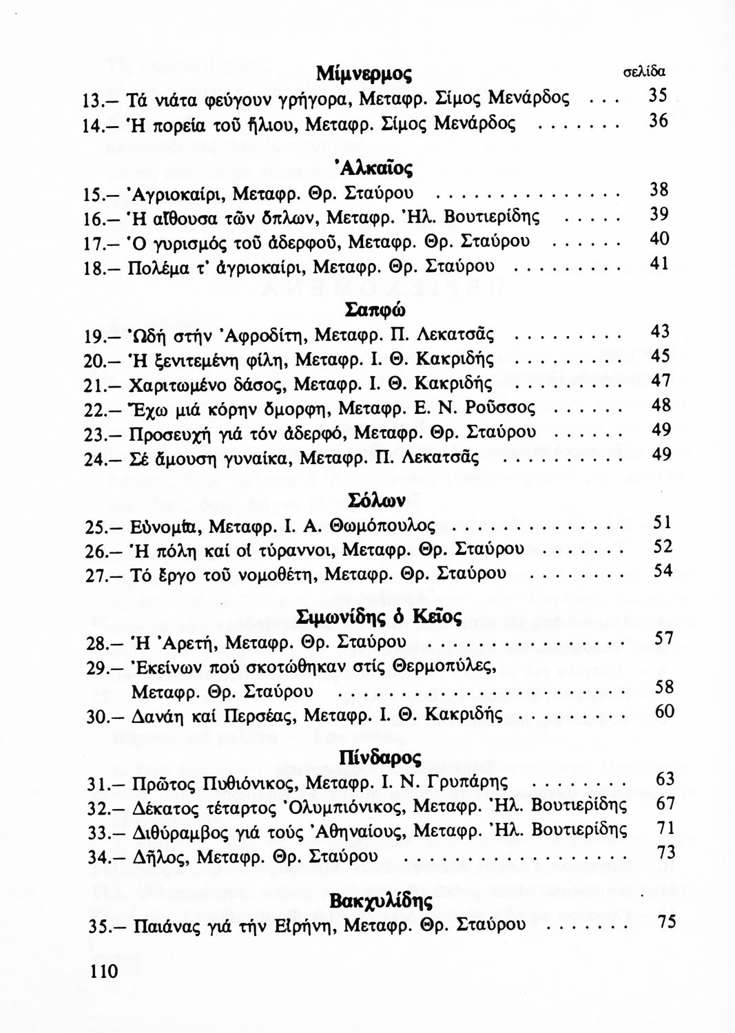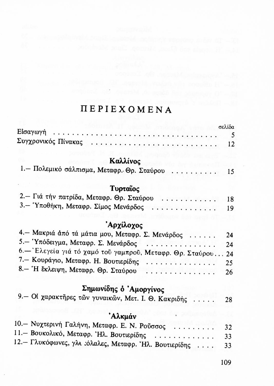 Σχολικό εγχειρίδιο Αρχαίων Ελληνικών Γ΄ Γυμνασίου που περιλαμβάνει εισαγωγή στην αρχαία λυρική ποίηση, χαρακτηριστικά δείγματα σε μετάφραση, πίνακα των κυριοτέρων ποιητών και του συγγραφικού τους έργου και ερμηνευτικές σημειώσεις.