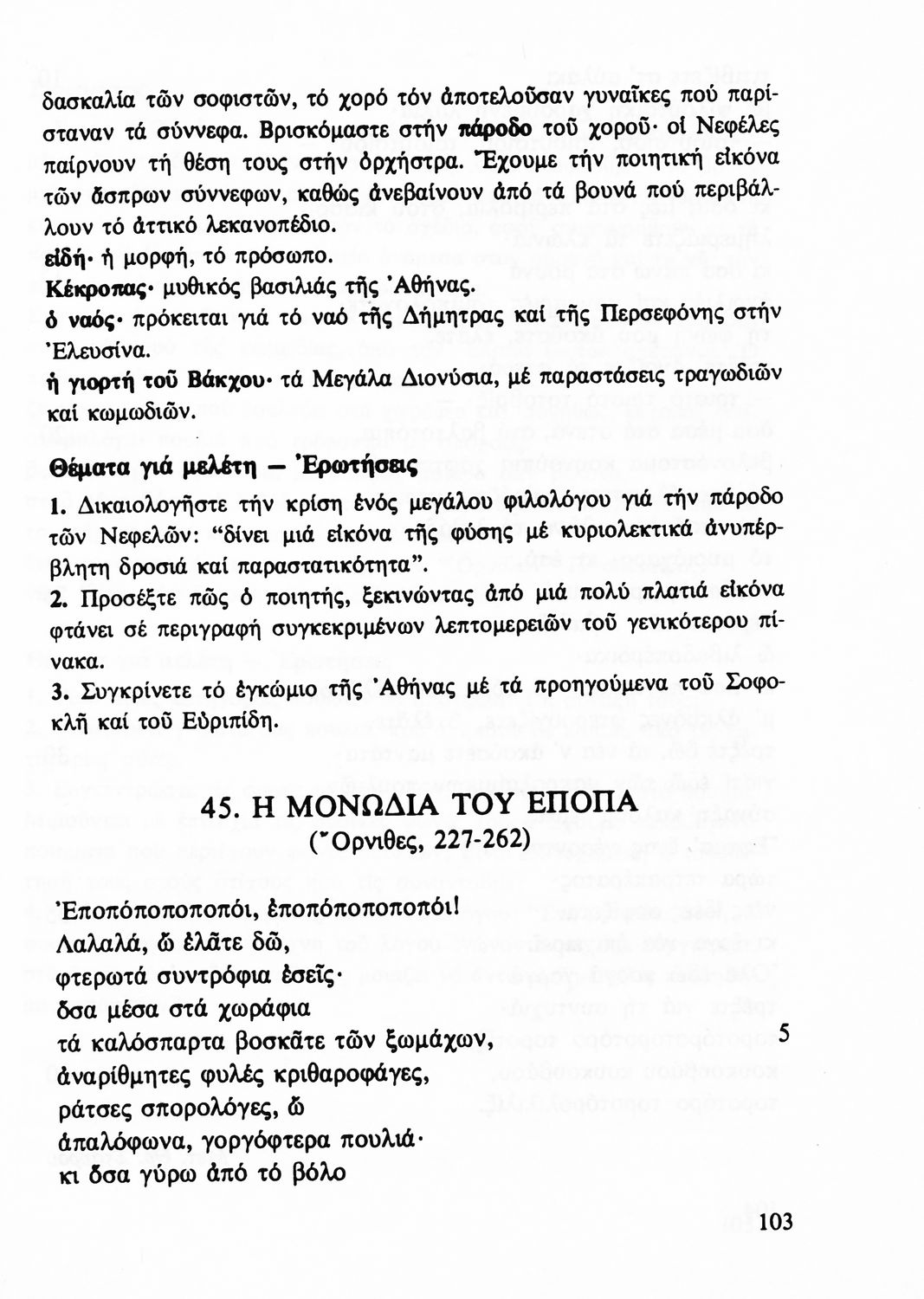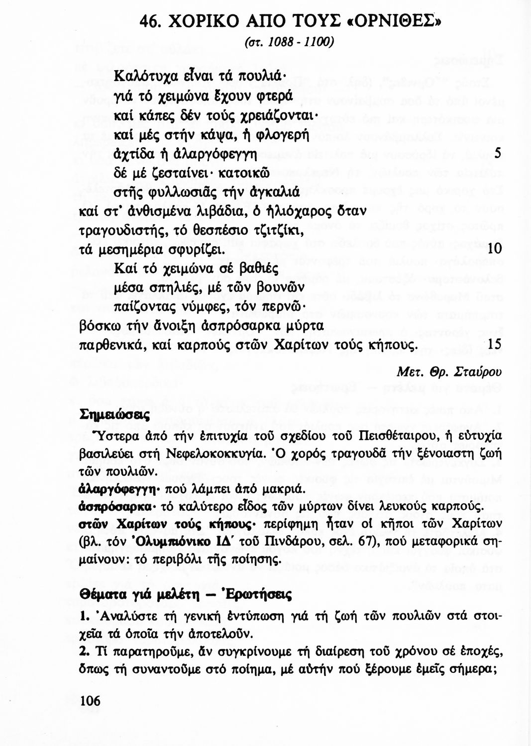 LDR 01538 2200217 4500 035 ## _a01-46145 040 ## _aΙνστιτούτο Εκπαιδευτικής Πολιτικής 041 ## _ael 100 ## _aΗλ. Σπυρόπουλος (εισαγωγή ) _aΕυ. Ρούσσος _aΒασ. Τσακατίκας (σημειώσεις) 110 ## _a46145 245 0# _aΑνθολόγιο Λυρικής Ποιήσεως, Γ΄ Γυμνασίου 250 ## _a5η Έκδοση 260 ## _aΑθήνα _bΟργανισμός Εκδόσεως Διδακτικών Βιβλίων _c1982 300 ## _a113 _bΕικόνες (ασπρόμαυρες) _c20 520 ## _aΣχολικό εγχειρίδιο Αρχαίων Ελληνικών Γ΄ Γυμνασίου που περιλαμβάνει εισαγωγή στην αρχαία λυρική ποίηση, χαρακτηριστικά δείγματα σε μετάφραση, πίνακα των κυριοτέρων ποιητών και του συγγραφικού τους έργου και ερμηνευτικές σημειώσεις. 521 ## _aΓ' Γυμνασίου 522 ## _aΕλλάδα 546 ## _aΔημοτική 563 ## _aΜαλακό Εξώφυλλο 583 ## _a3691/10-12-1981 _c1981 650 #4 _aΑισχύλος _aΑλκμάν _aΑριστοφάνης _aΑρχίλοχος _aΒακχυλίδης _aΔιθύραμβος _aΕυριπίδης _aΘέογνης _aΚαλλίνος _aΠαιάνας _aΣαπφώ _aΣημωνίδης _aΣοφοκλής _aΤυρταίος _aΧορικό