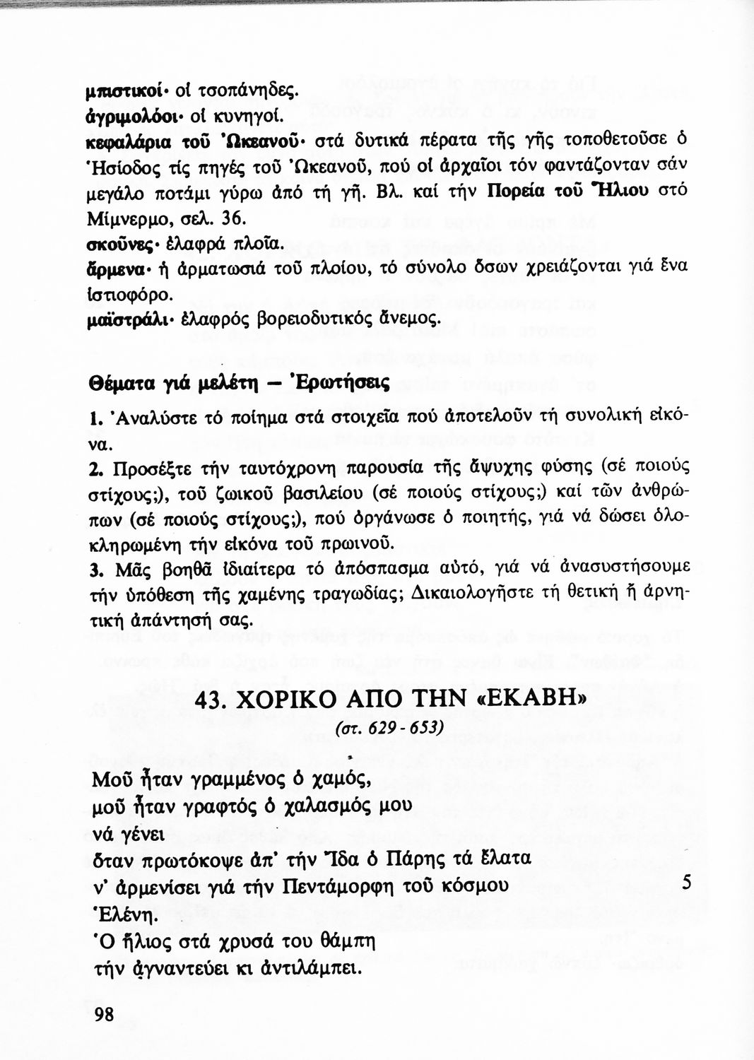 LDR 01538 2200217 4500 035 ## _a01-46145 040 ## _aΙνστιτούτο Εκπαιδευτικής Πολιτικής 041 ## _ael 100 ## _aΗλ. Σπυρόπουλος (εισαγωγή ) _aΕυ. Ρούσσος _aΒασ. Τσακατίκας (σημειώσεις) 110 ## _a46145 245 0# _aΑνθολόγιο Λυρικής Ποιήσεως, Γ΄ Γυμνασίου 250 ## _a5η Έκδοση 260 ## _aΑθήνα _bΟργανισμός Εκδόσεως Διδακτικών Βιβλίων _c1982 300 ## _a113 _bΕικόνες (ασπρόμαυρες) _c20 520 ## _aΣχολικό εγχειρίδιο Αρχαίων Ελληνικών Γ΄ Γυμνασίου που περιλαμβάνει εισαγωγή στην αρχαία λυρική ποίηση, χαρακτηριστικά δείγματα σε μετάφραση, πίνακα των κυριοτέρων ποιητών και του συγγραφικού τους έργου και ερμηνευτικές σημειώσεις. 521 ## _aΓ' Γυμνασίου 522 ## _aΕλλάδα 546 ## _aΔημοτική 563 ## _aΜαλακό Εξώφυλλο 583 ## _a3691/10-12-1981 _c1981 650 #4 _aΑισχύλος _aΑλκμάν _aΑριστοφάνης _aΑρχίλοχος _aΒακχυλίδης _aΔιθύραμβος _aΕυριπίδης _aΘέογνης _aΚαλλίνος _aΠαιάνας _aΣαπφώ _aΣημωνίδης _aΣοφοκλής _aΤυρταίος _aΧορικό