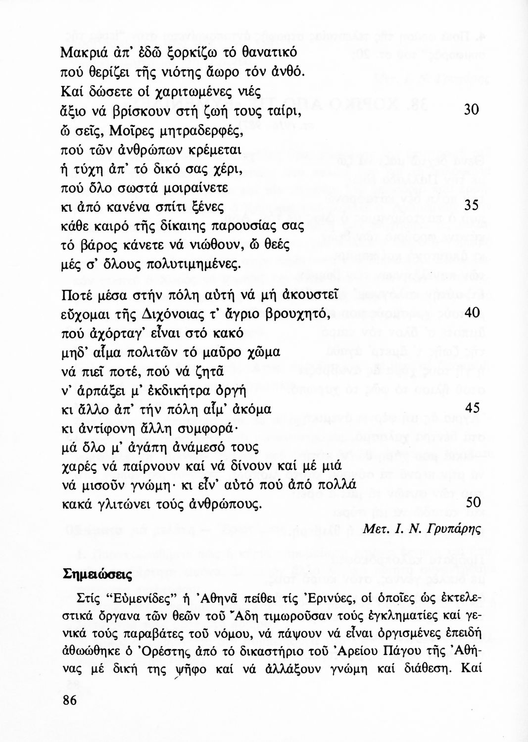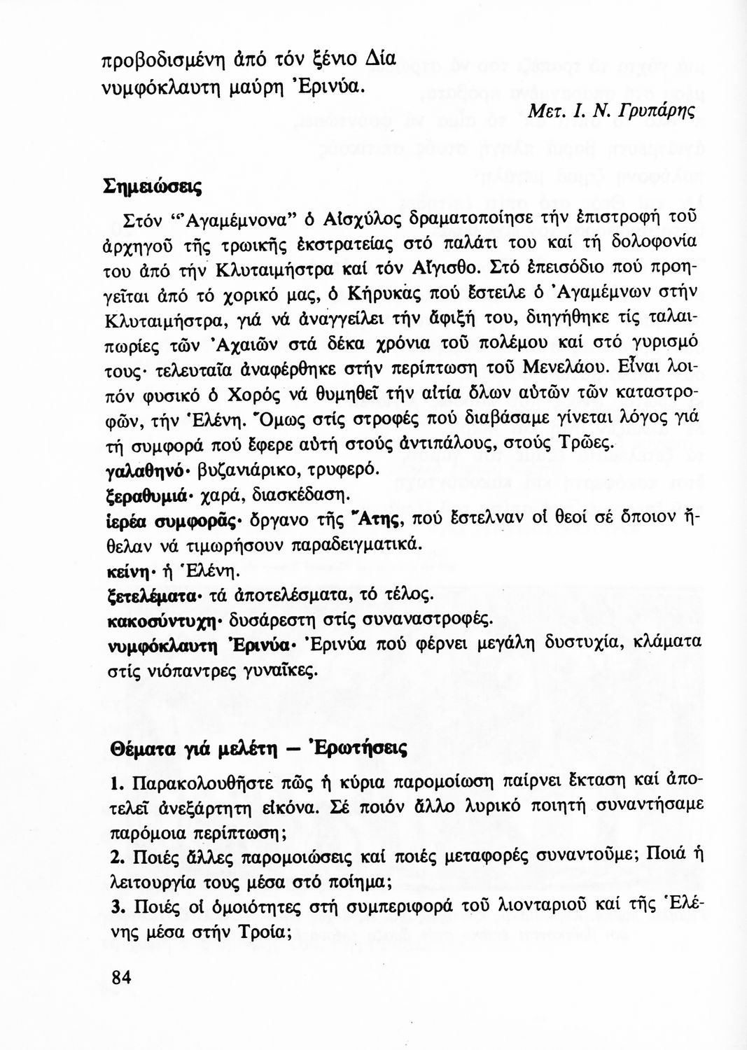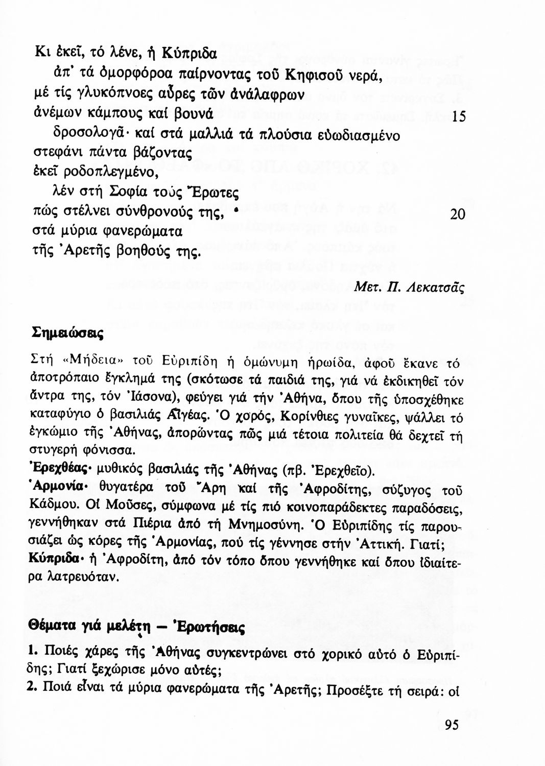 Βαθμίδα εκπαίδευσης: Δευτεροβάθμια Τάξη: Γ' Γυμνασίου Μάθημα: Αρχαία Ελληνικά Γλώσσα: Δημοτική Παρουσίαση περιεχομένου: Σχολικό εγχειρίδιο Αρχαίων Ελληνικών Γ΄ Γυμνασίου που περιλαμβάνει εισαγωγή στην αρχαία λυρική ποίηση, χαρακτηριστικά δείγματα σε μετάφραση, πίνακα των κυριοτέρων ποιητών και του συγγραφικού τους έργου και ερμηνευτικές σημειώσεις. |
