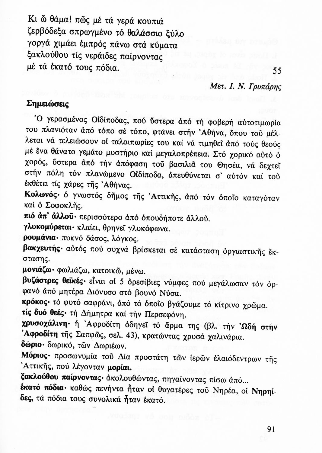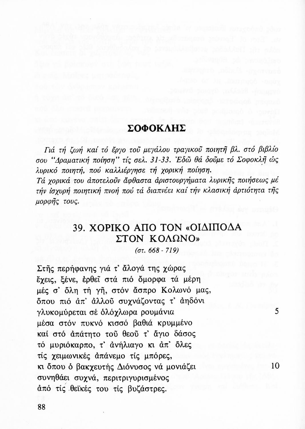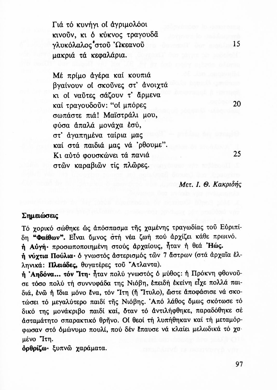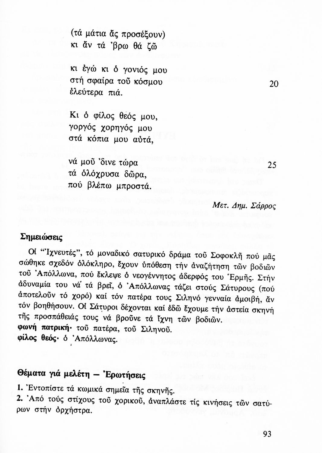 Σχολικό εγχειρίδιο Αρχαίων Ελληνικών Γ΄ Γυμνασίου που περιλαμβάνει εισαγωγή στην αρχαία λυρική ποίηση, χαρακτηριστικά δείγματα σε μετάφραση, πίνακα των κυριοτέρων ποιητών και του συγγραφικού τους έργου και ερμηνευτικές σημειώσεις.