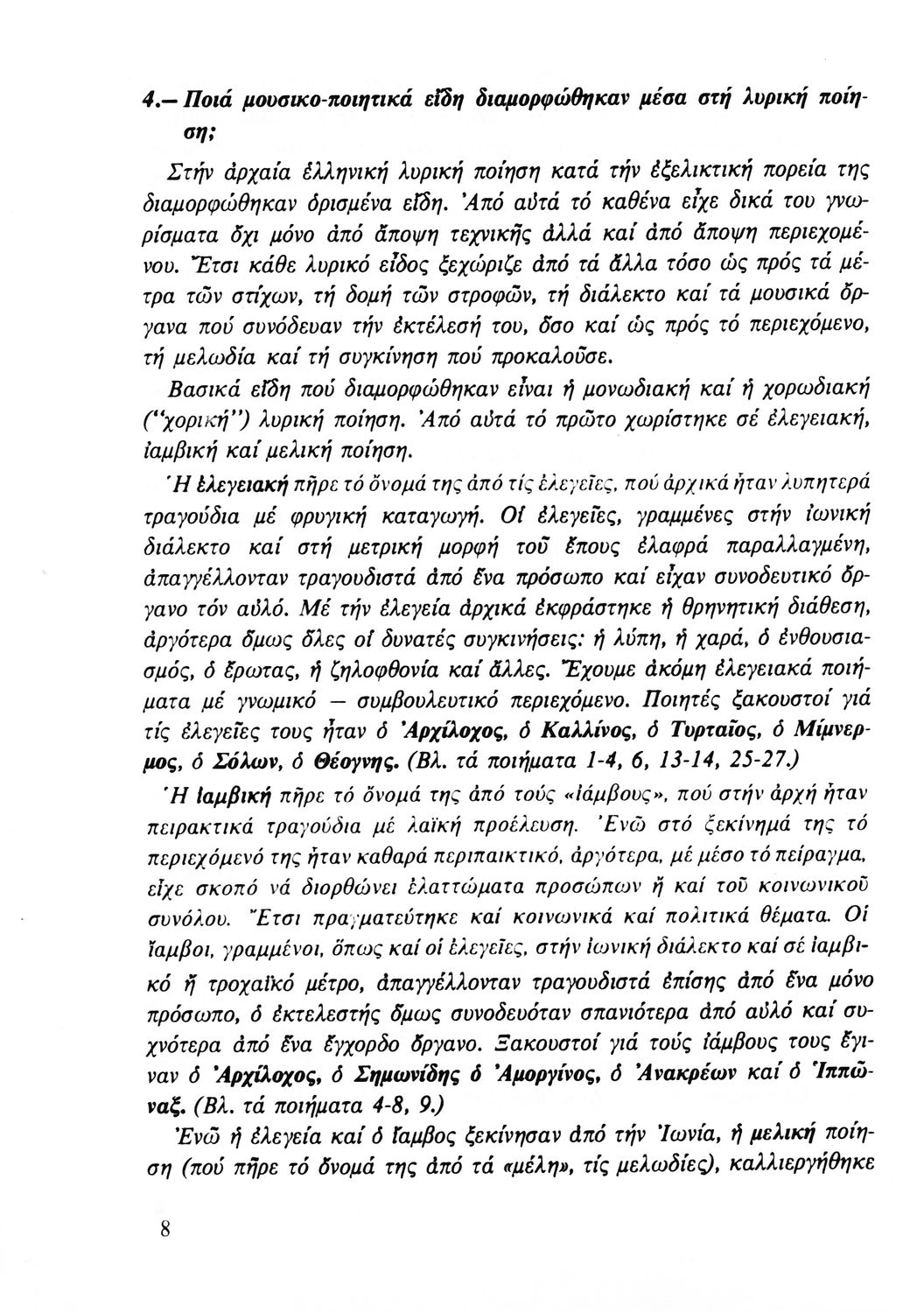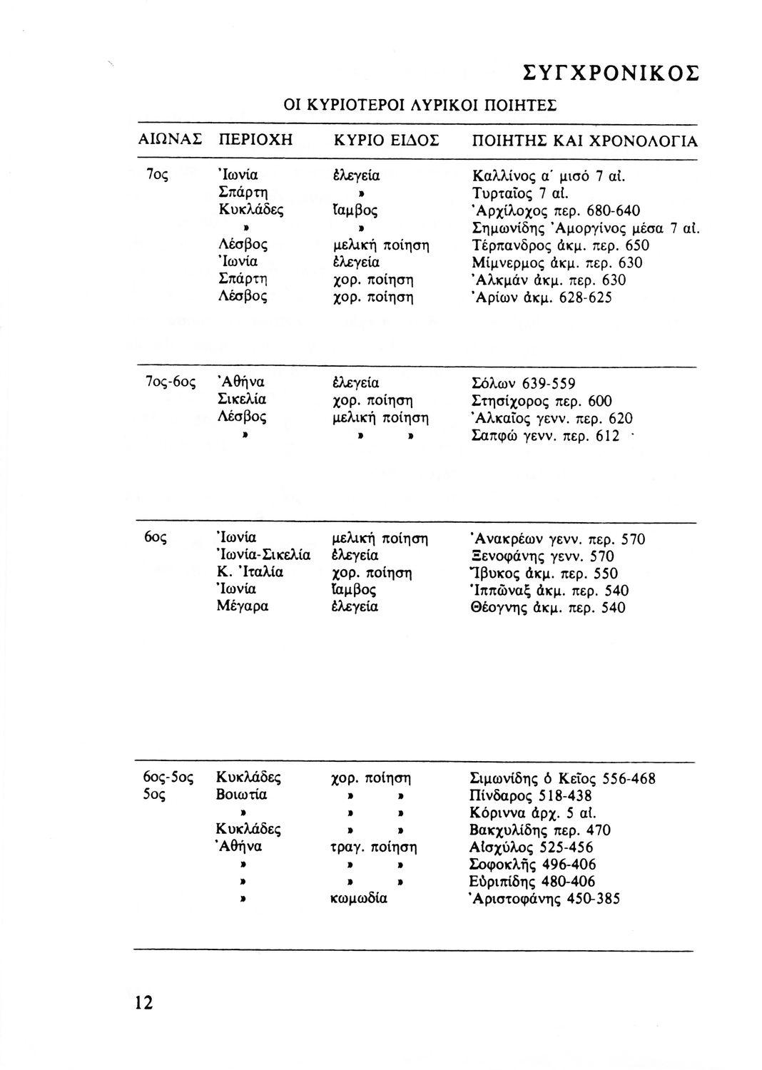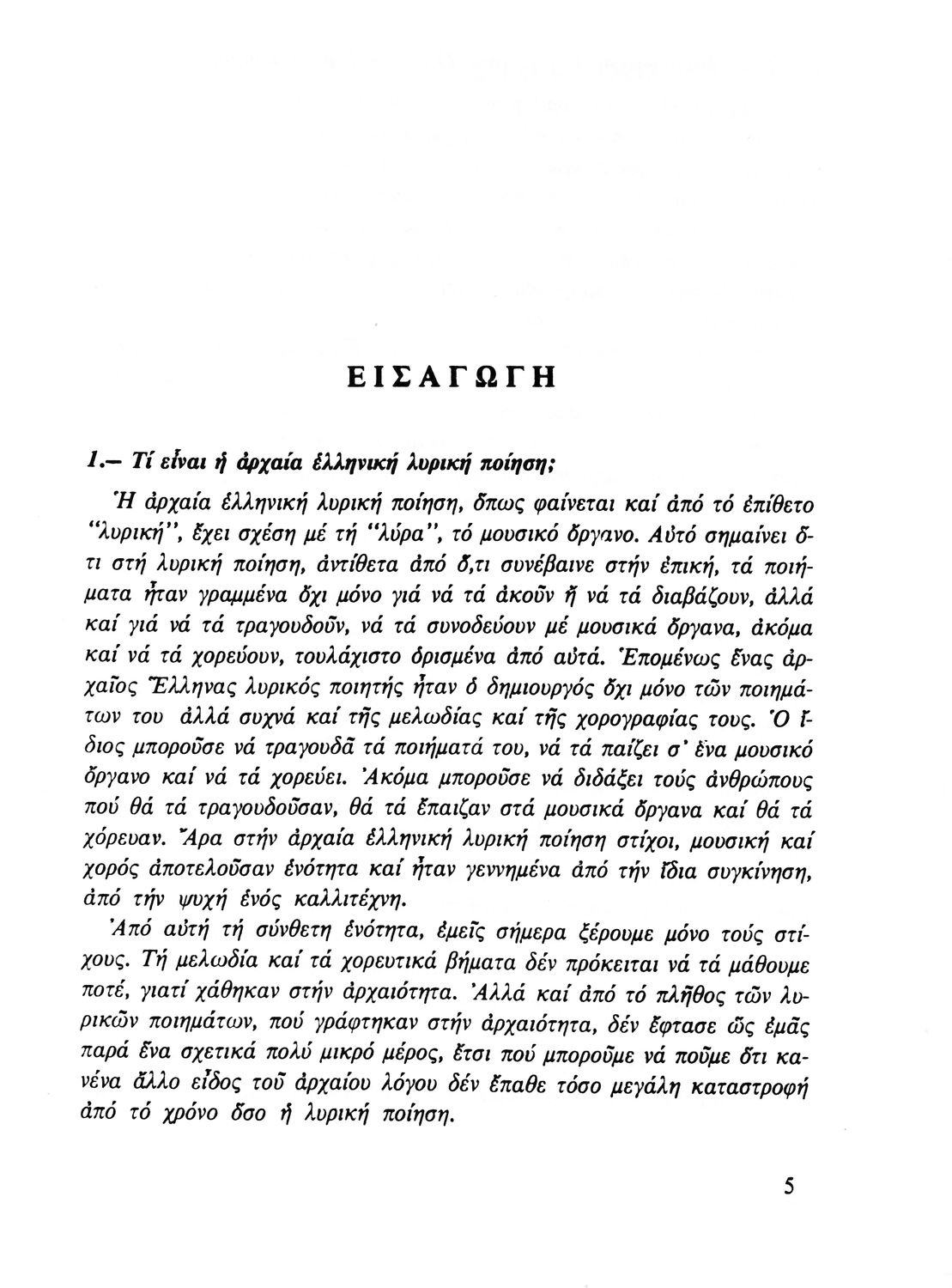 Σχολικό εγχειρίδιο Αρχαίων Ελληνικών Γ΄ Γυμνασίου που περιλαμβάνει εισαγωγή στην αρχαία λυρική ποίηση, χαρακτηριστικά δείγματα σε μετάφραση, πίνακα των κυριοτέρων ποιητών και του συγγραφικού τους έργου και ...