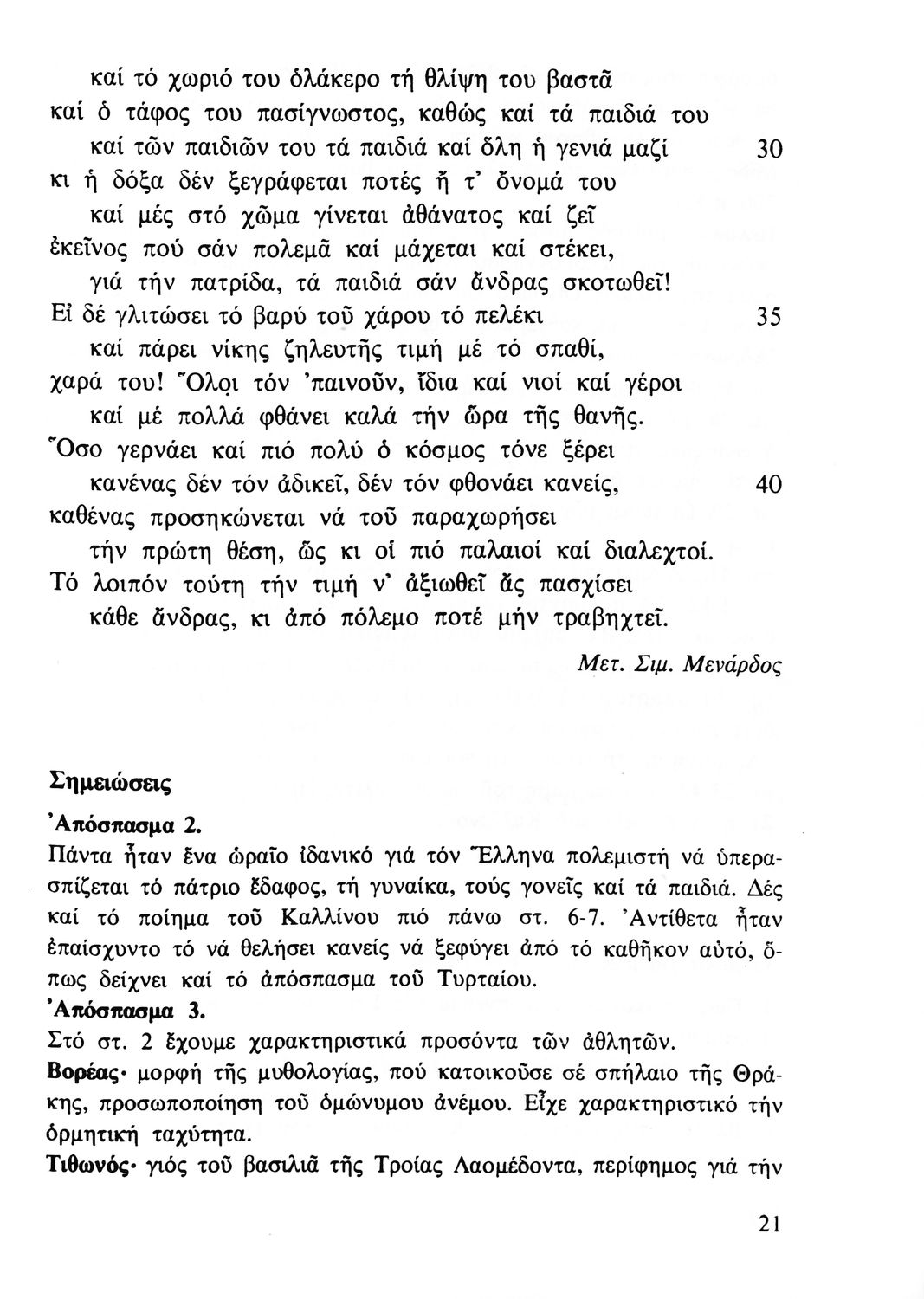 Ανθολόγιο Λυρικής Ποιήσεως, Γ΄ Γυμνασίου