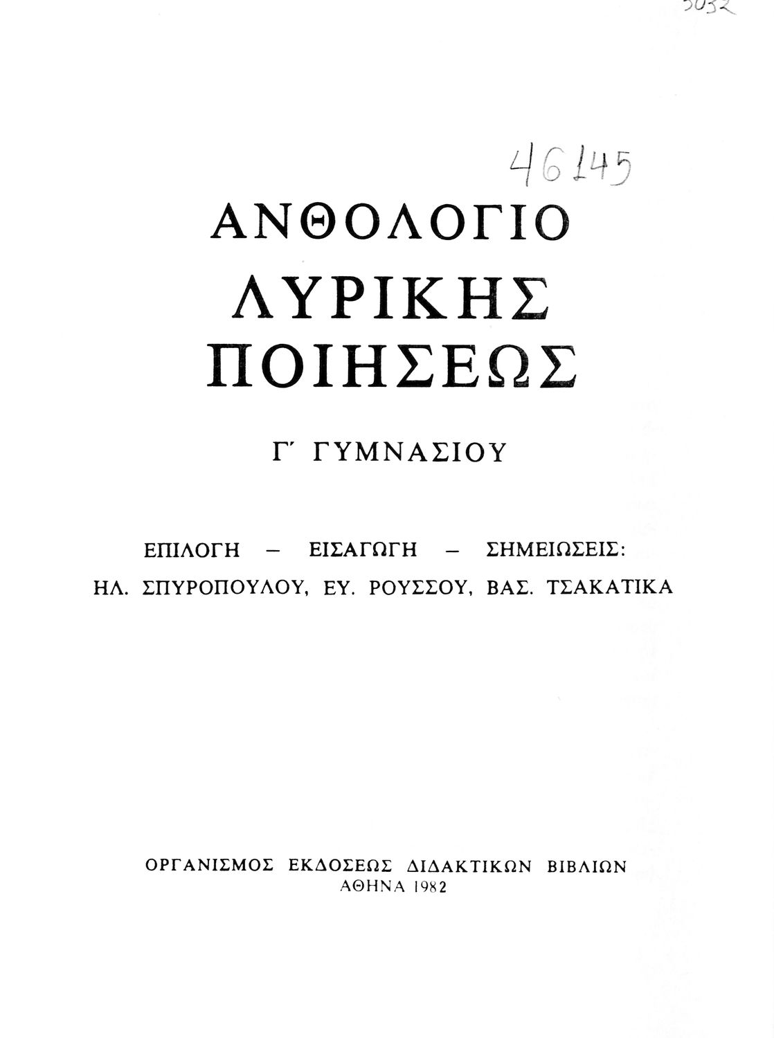 Τίτλος: Ανθολόγιο Λυρικής Ποιήσεως, Γ΄ Γυμνασίου