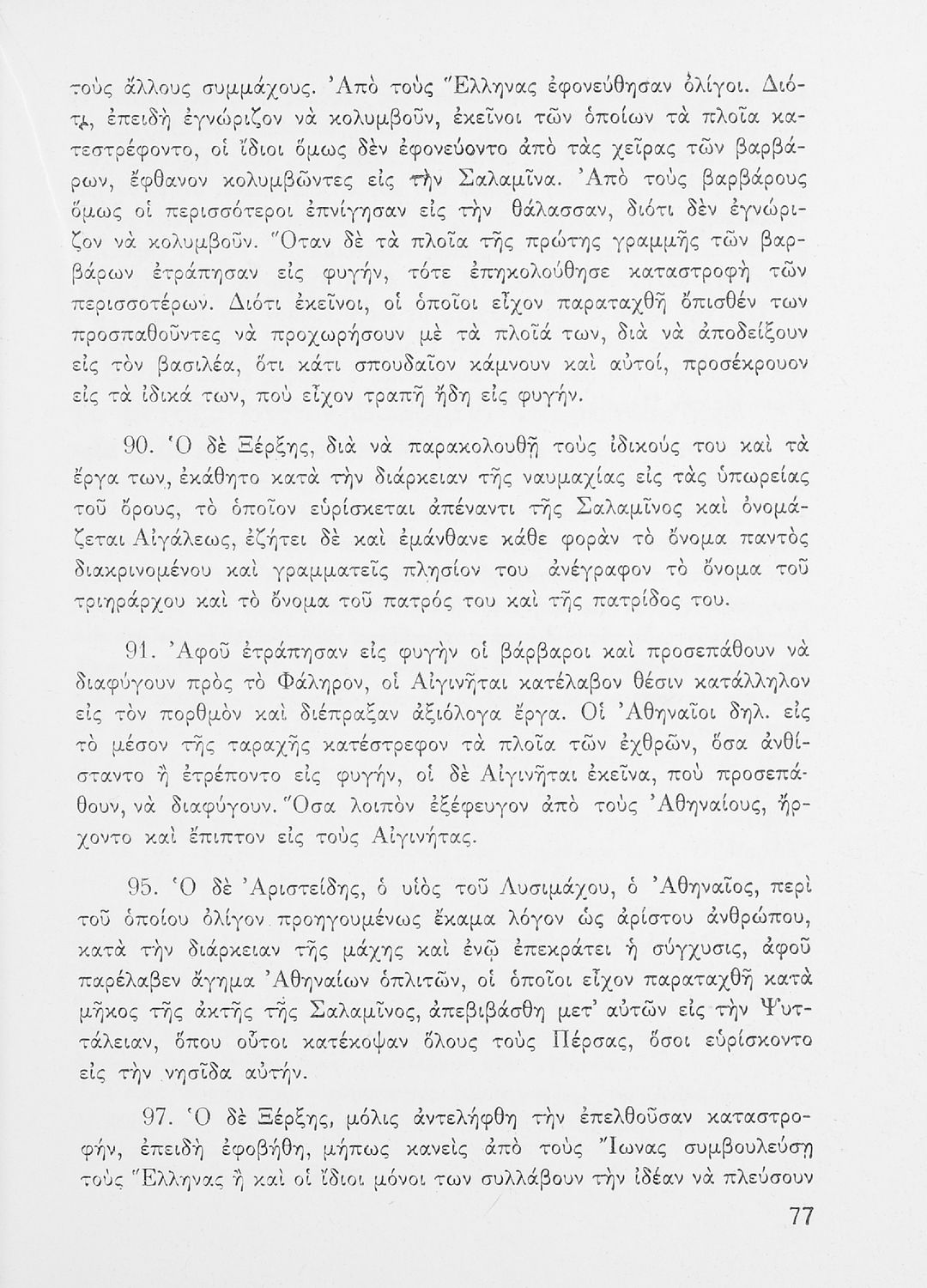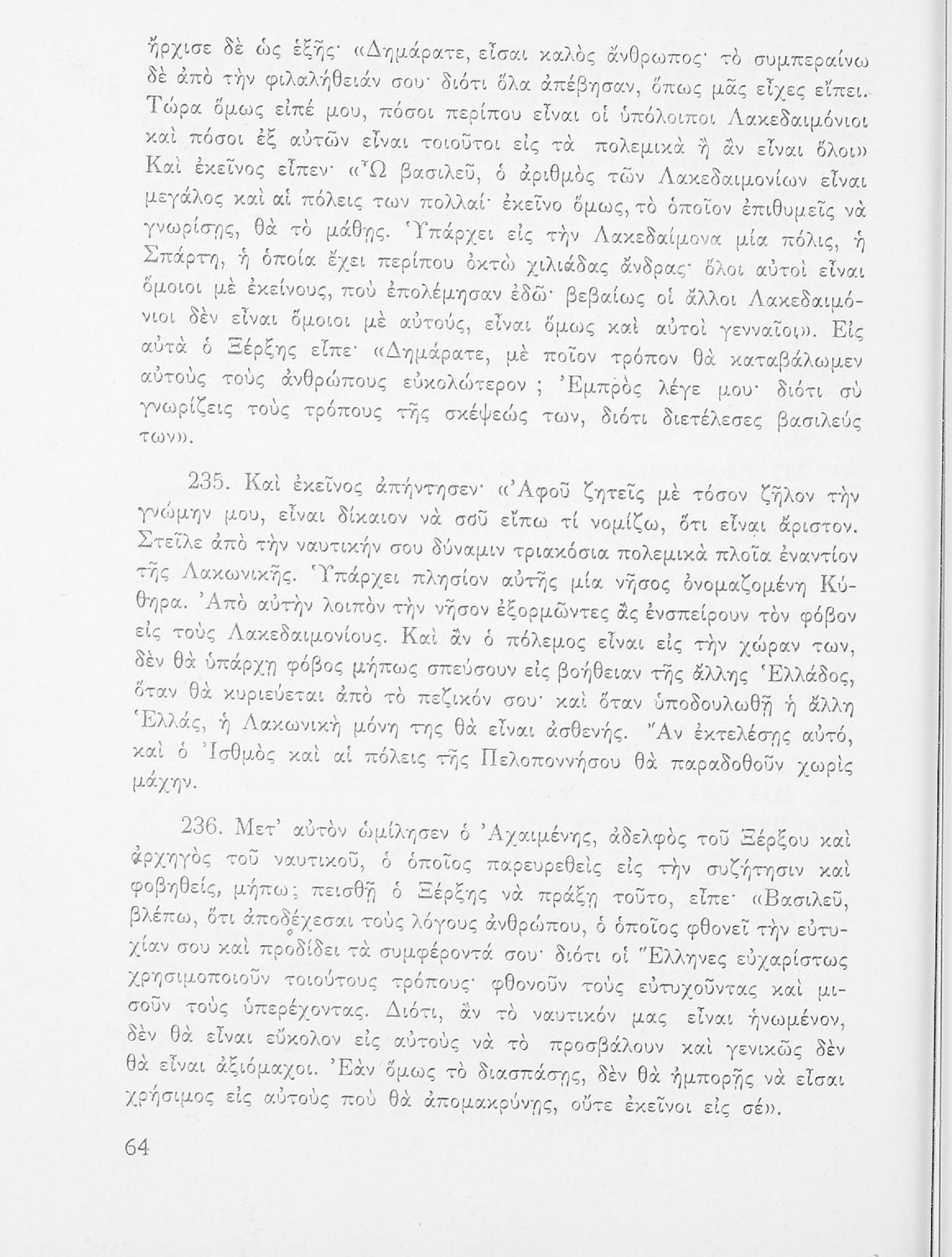 Σχολικό εγχειρίδιο Αρχαίων Ελληνικών Δ΄ Γυμνασίου που περιλαμβάνει εισαγωγή στη ζωή και το έργο του Ηρόδοτου, αποσπάσματα από την Ιστορία του και ερμηνευτικές σημειώσεις. Φέρει το σύμβολο της δικτατορίας.