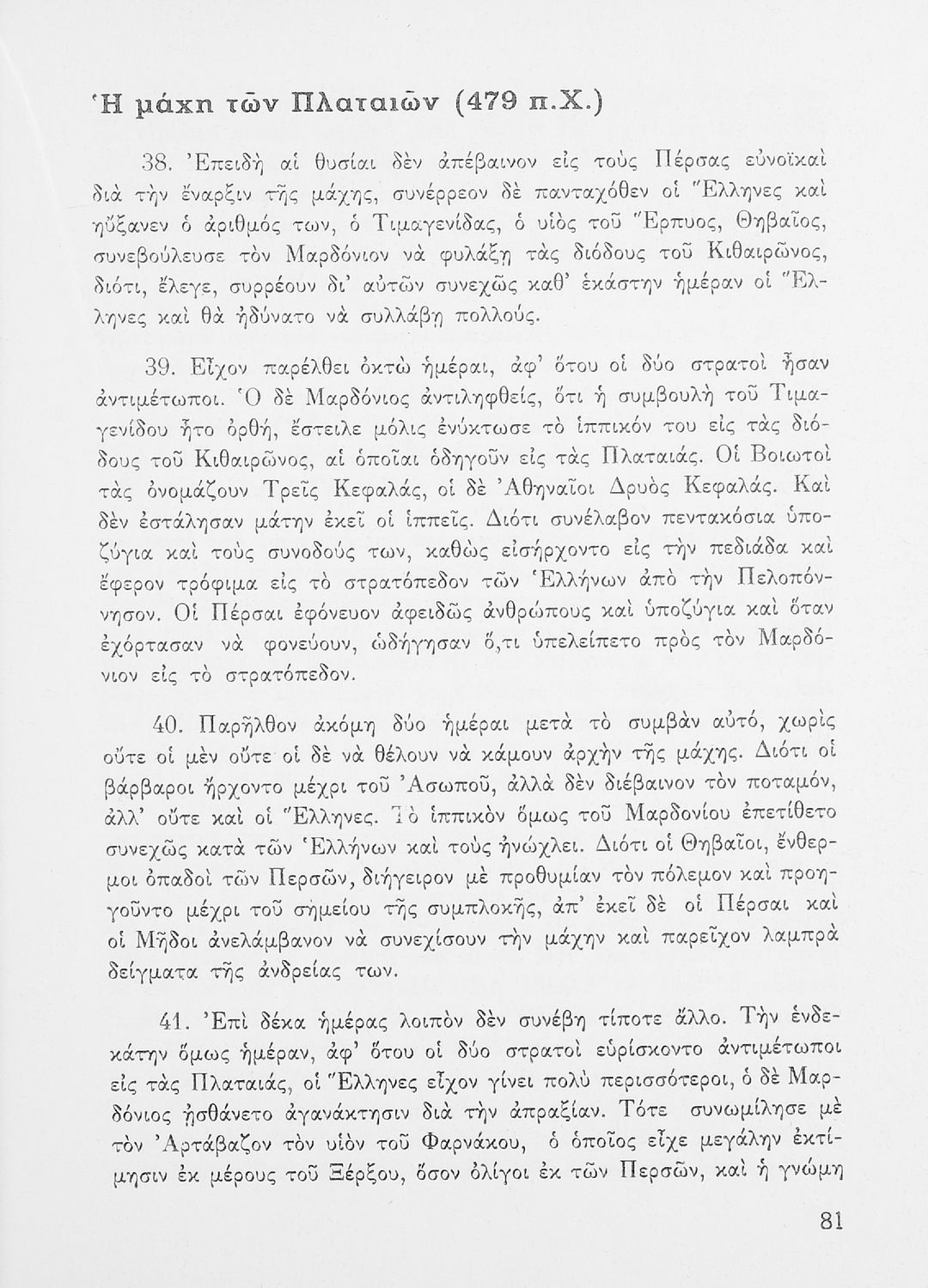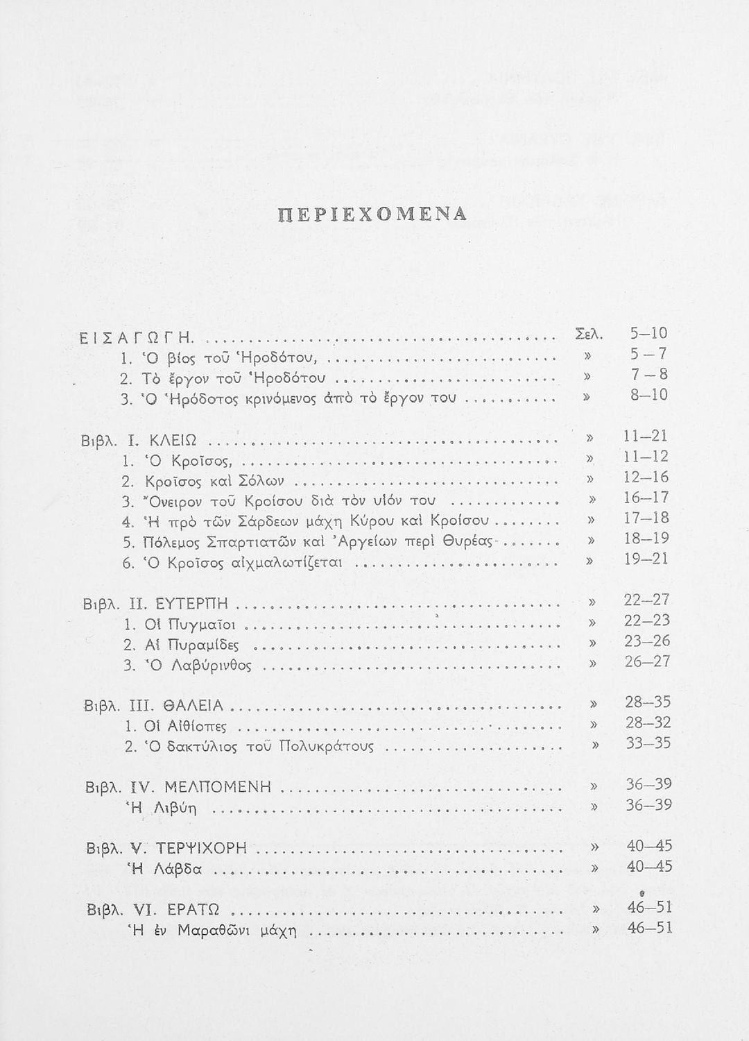 Μαθητικό βοήθημα Αρχαίων Ελληνικών Γ΄ Γυμνασίου που περιλαμβάνει εισαγωγή στη διάλεκτο του Ηρόδοτου, κείμενο, ερμηνευτικά, γραμματικά και συντακτικά σχόλια.