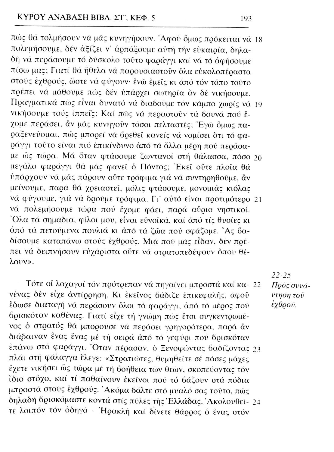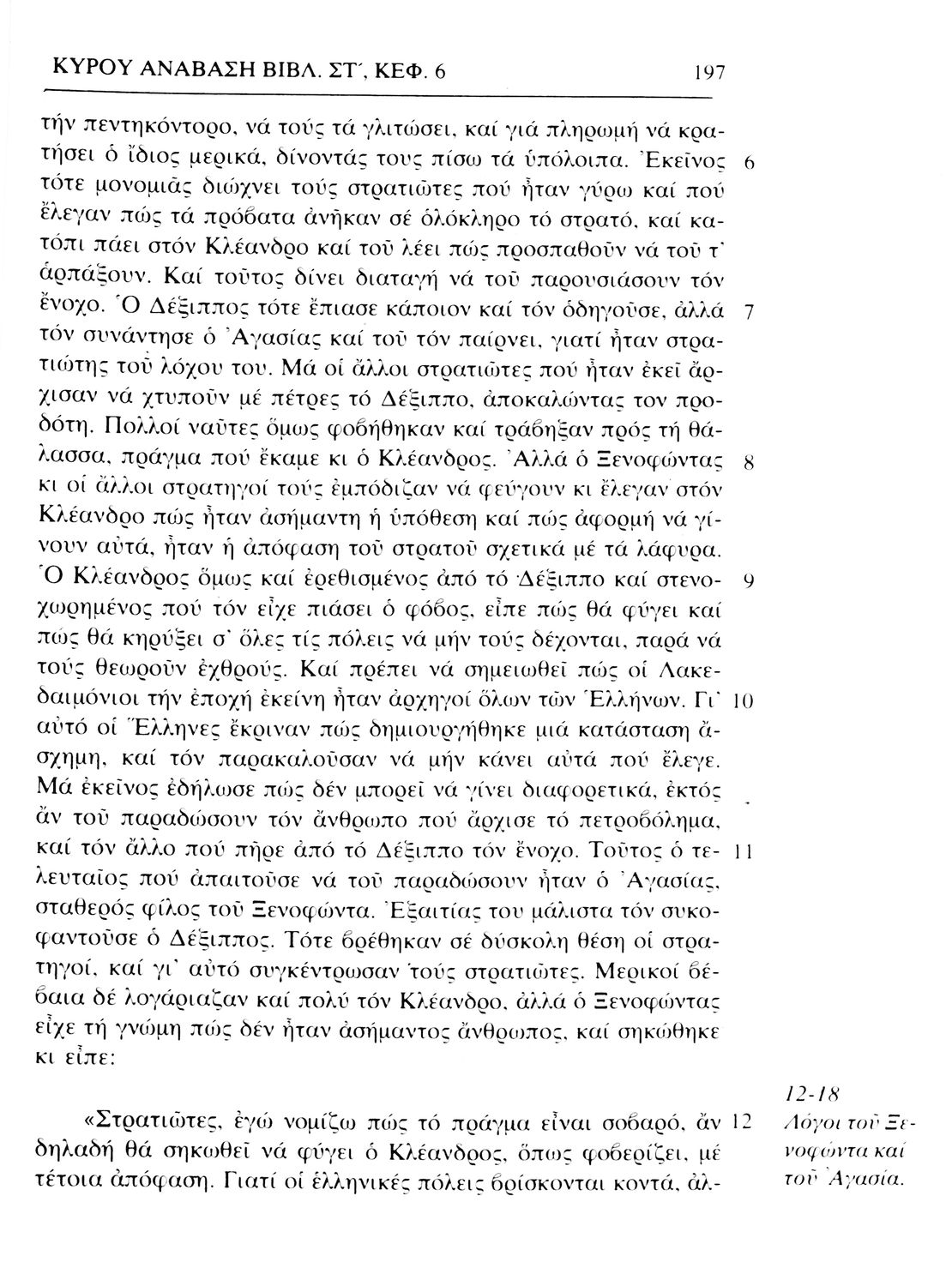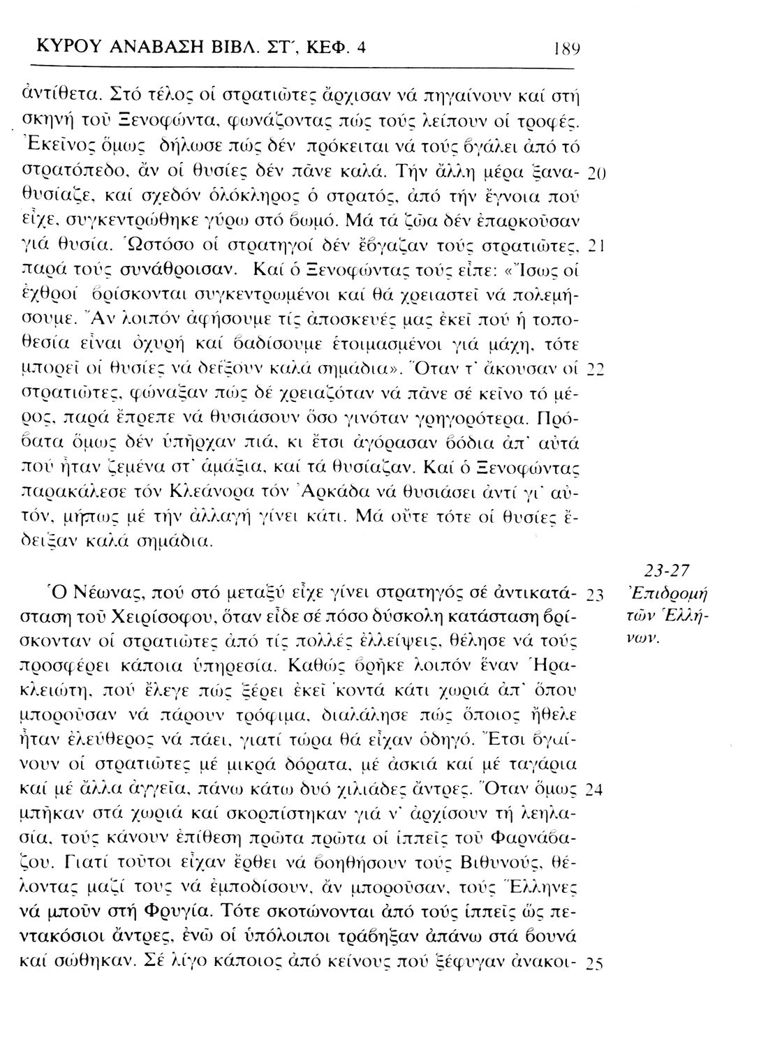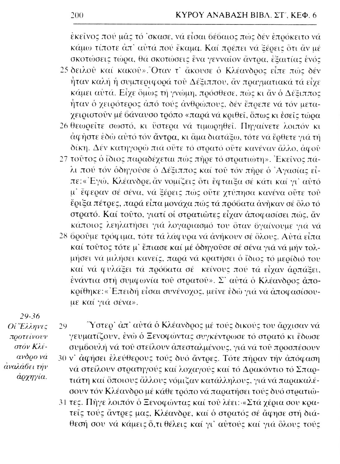 Σχολικό εγχειρίδιο Αρχαίων Ελληνικών. Το βιβλίο περιλαμβάνει εισαγωγή σχετικά με τη ζωή και το έργο του Ξενοφώντα. Ακολουθούν τα εφτά βιβλία της "Κύρου Ανάβασις" εκ των οποίων το Πρώτο και Έβδομο παρατίθενται περιληπτικά. Το βιβλίο φέρει σημειώσεις και σχέδια της μαθήτριας στην οποία ανήκε.