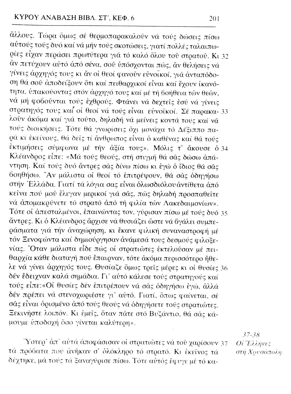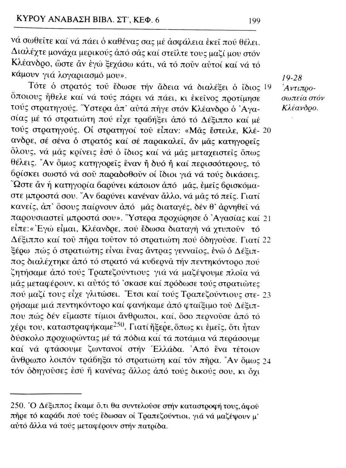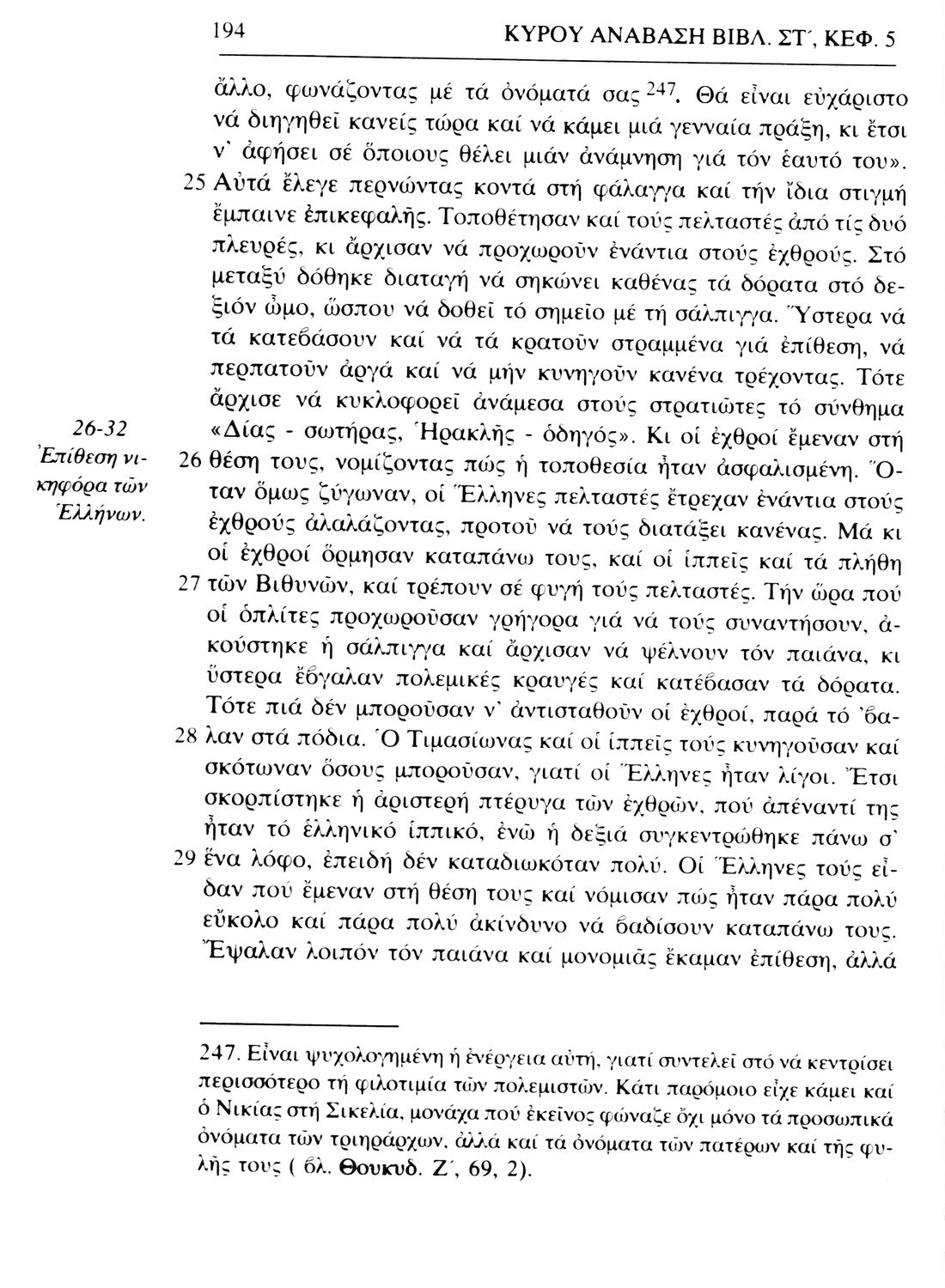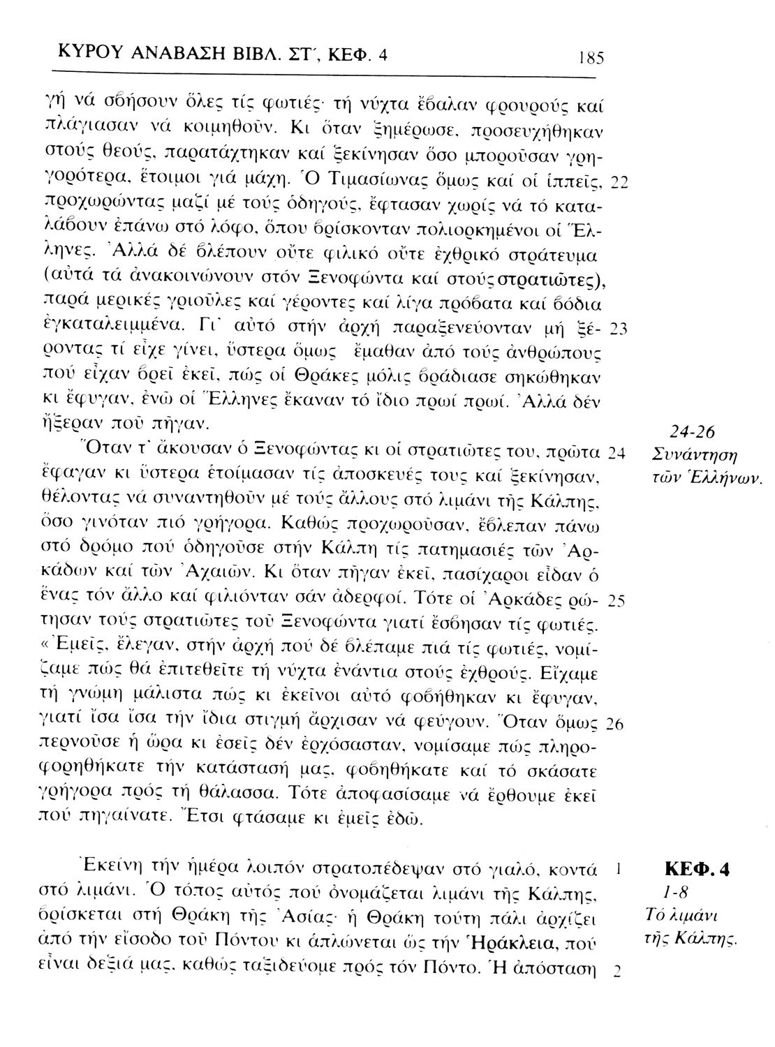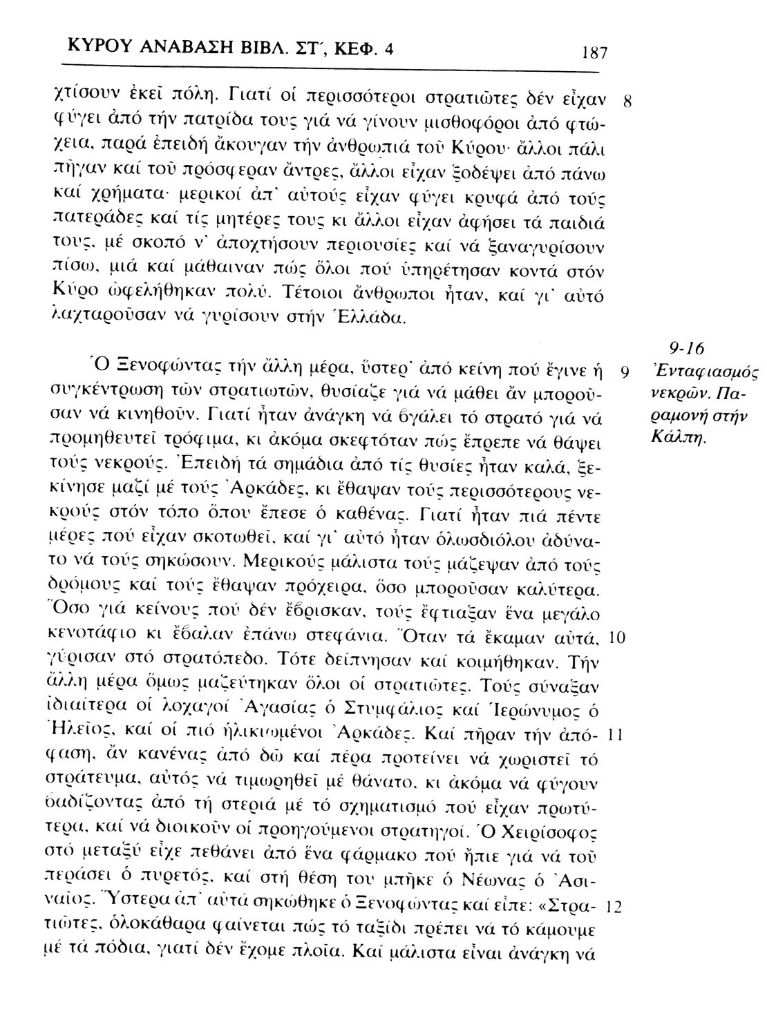 Σχολικό εγχειρίδιο Αρχαίων Ελληνικών. Το βιβλίο περιλαμβάνει εισαγωγή σχετικά με τη ζωή και το έργο του Ξενοφώντα. Ακολουθούν τα εφτά βιβλία της "Κύρου Ανάβασις" εκ των οποίων το Πρώτο και Έβδομο παρατίθενται περιληπτικά. Το βιβλίο φέρει σημειώσεις και σχέδια της μαθήτριας στην οποία ανήκε.