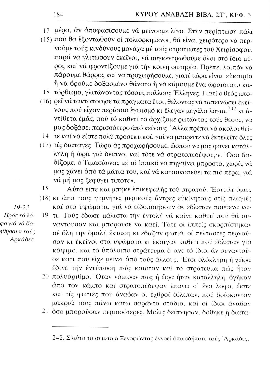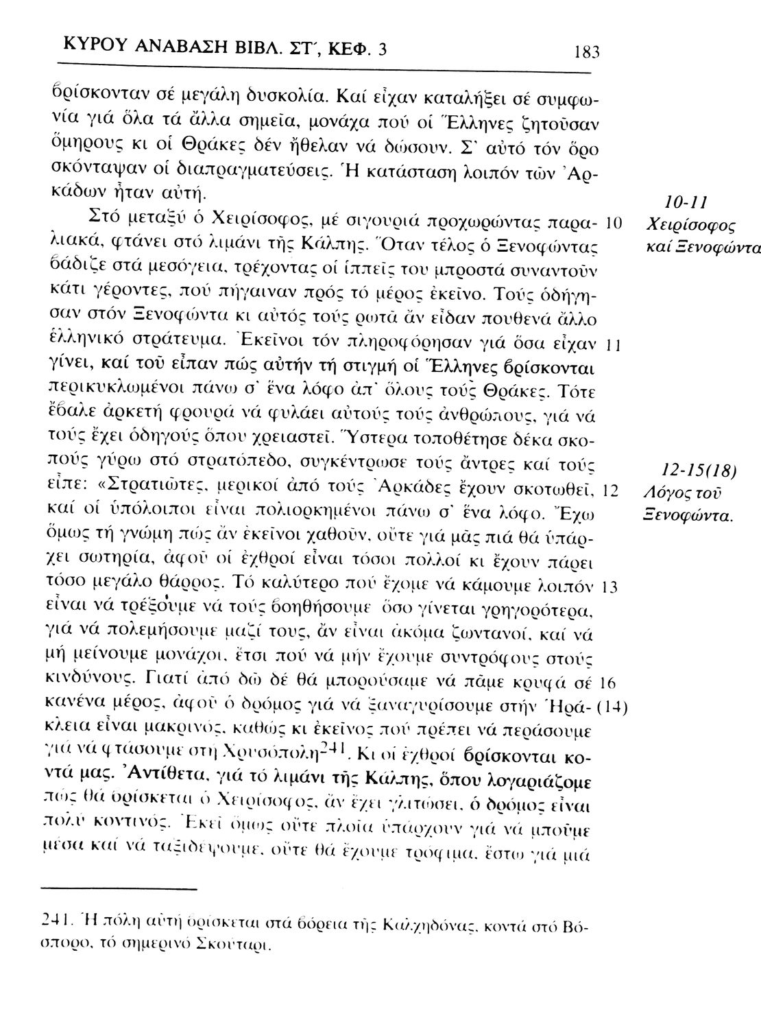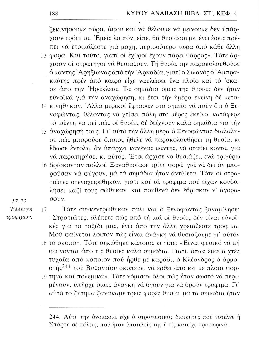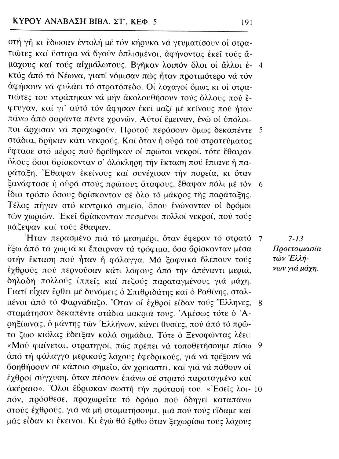 Σχολικό εγχειρίδιο Αρχαίων Ελληνικών. Το βιβλίο περιλαμβάνει εισαγωγή σχετικά με τη ζωή και το έργο του Ξενοφώντα. Ακολουθούν τα εφτά βιβλία της "Κύρου Ανάβασις" εκ των οποίων το Πρώτο και Έβδομο παρατίθενται περιληπτικά. Το βιβλίο φέρει σημειώσεις και σχέδια της μαθήτριας στην οποία ανήκε.