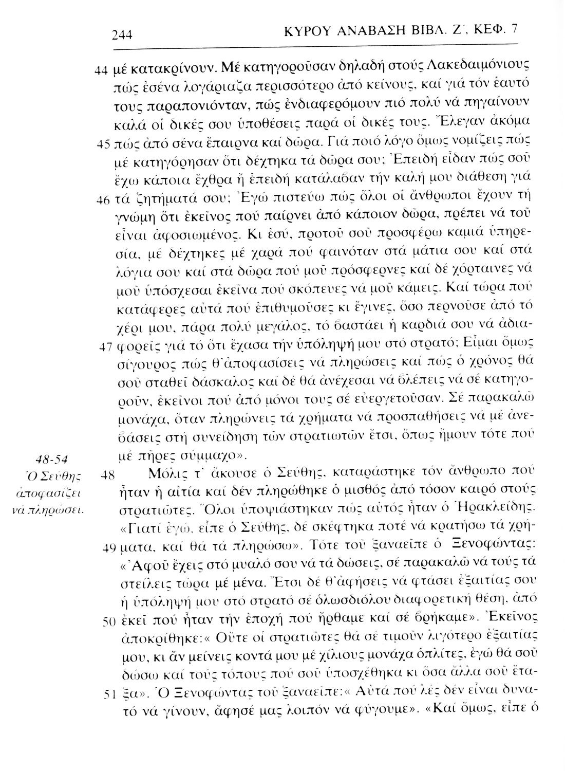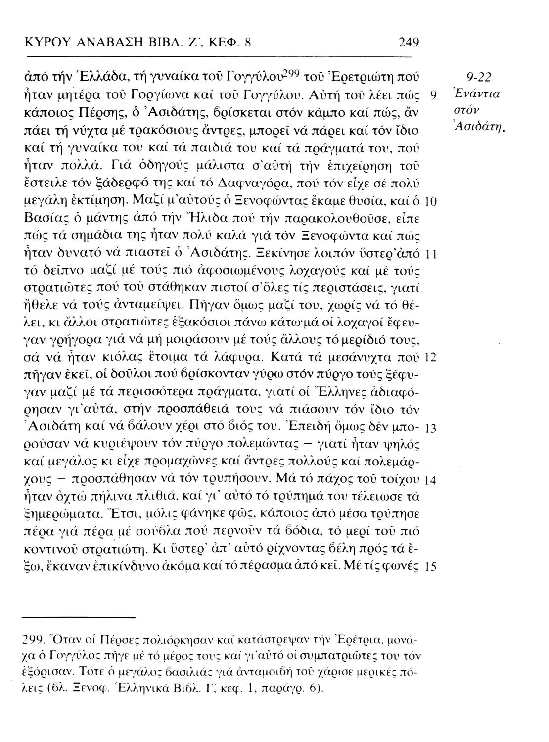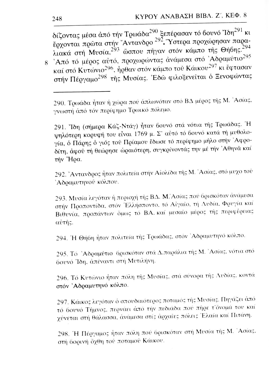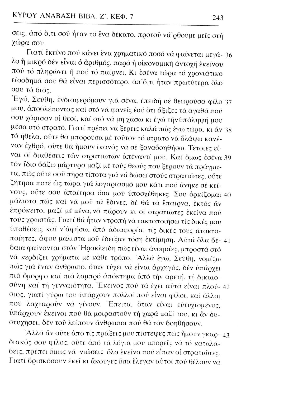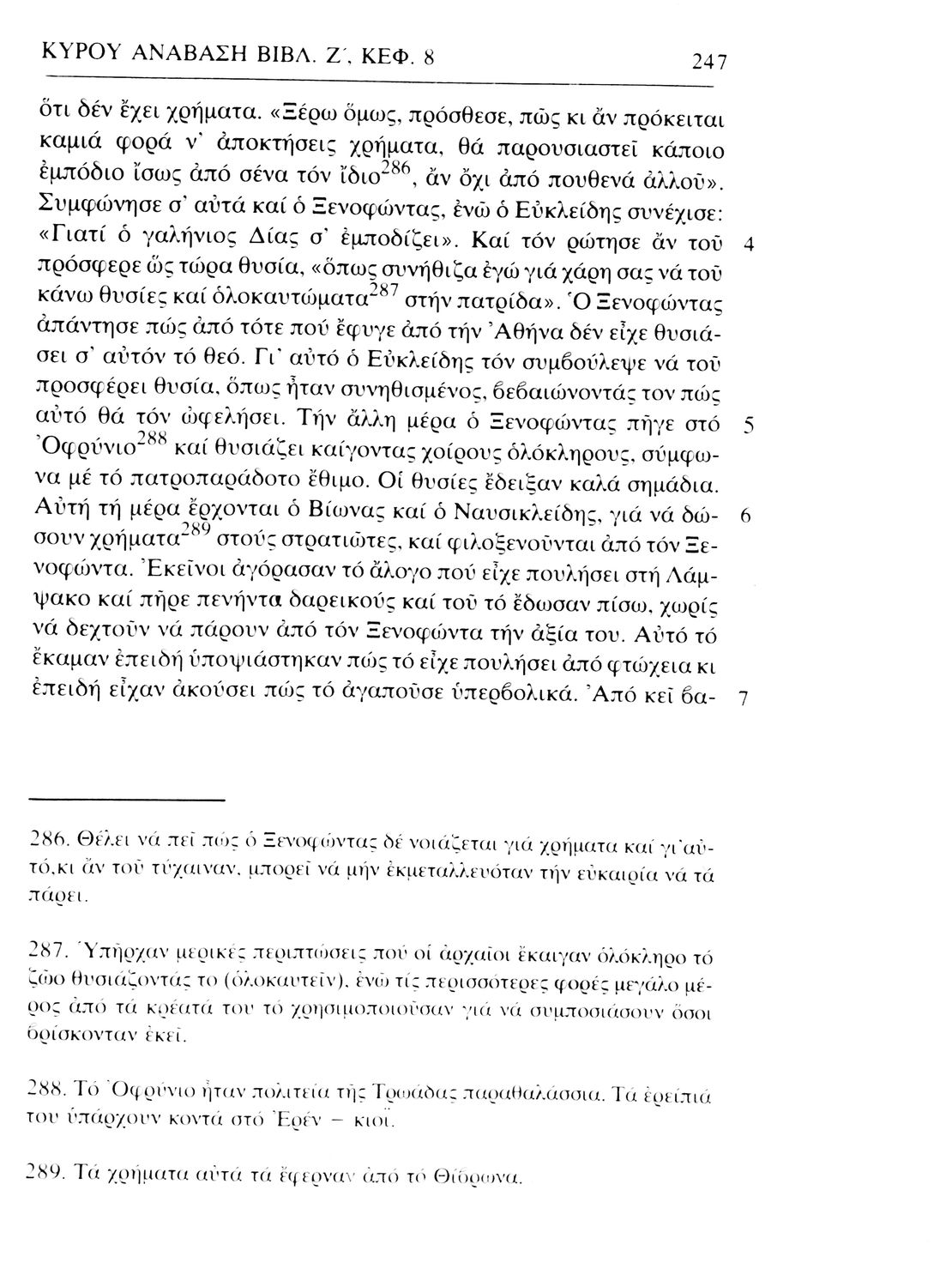 Σχολικό εγχειρίδιο Αρχαίων Ελληνικών α΄ Γυμνασίου που περιλαμβάνει μετάφραση του έργου του Ξενοφώντα Κύρου Ανάβασις, εισαγωγικά σχόλια για τη ζωή και το έργο του, και ερμηνευτικές παρατηρήσεις.