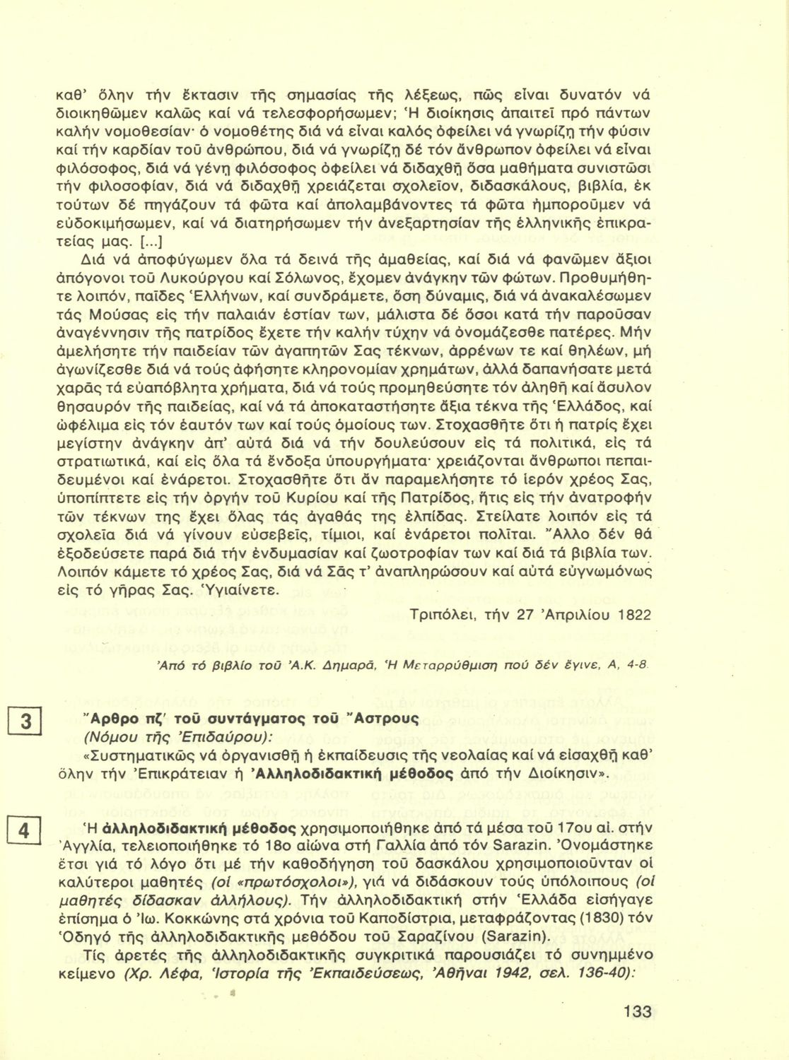 Παρουσίαση περιεχομένου: Σχολικό εγχειρίδιο Ιστορίας Γ΄ Λυκείου που πραγματεύεται τον ευρωπαϊκό διαφωτισμό, νεοελληνικό διαφωτισμό και θέματα νεοελληνικής ιστορίας (1750-1850) από πηγές.
