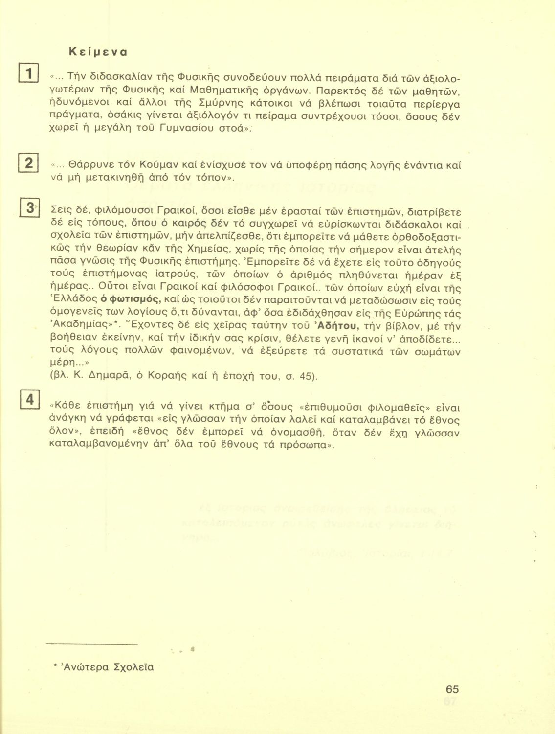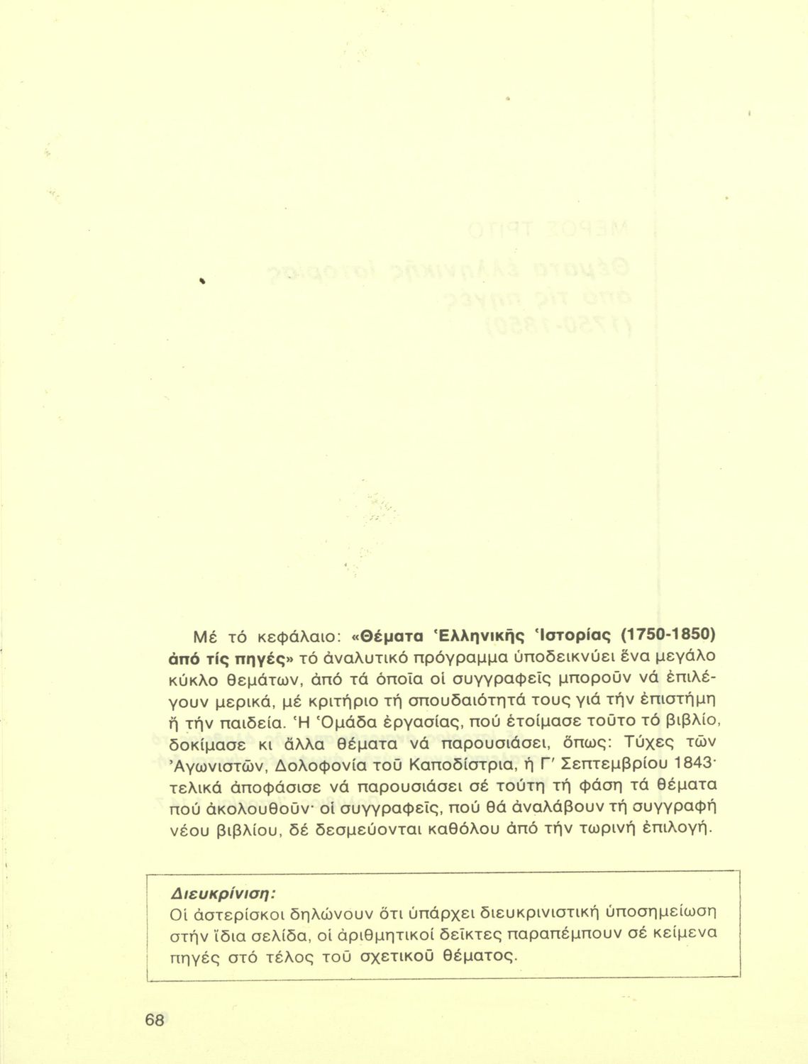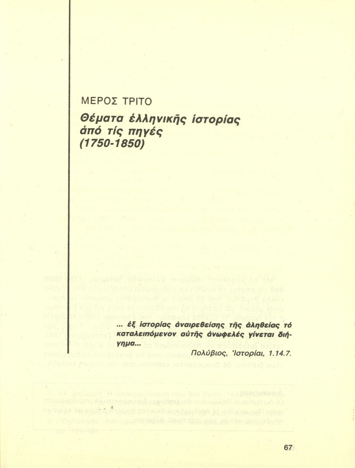 Σχολικό εγχειρίδιο Ιστορίας Γ΄ Λυκείου που πραγματεύεται τον ευρωπαϊκό διαφωτισμό, νεοελληνικό διαφωτισμό και θέματα νεοελληνικής ιστορίας (1750-1850) από πηγές.