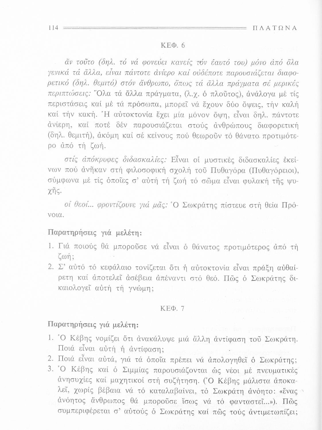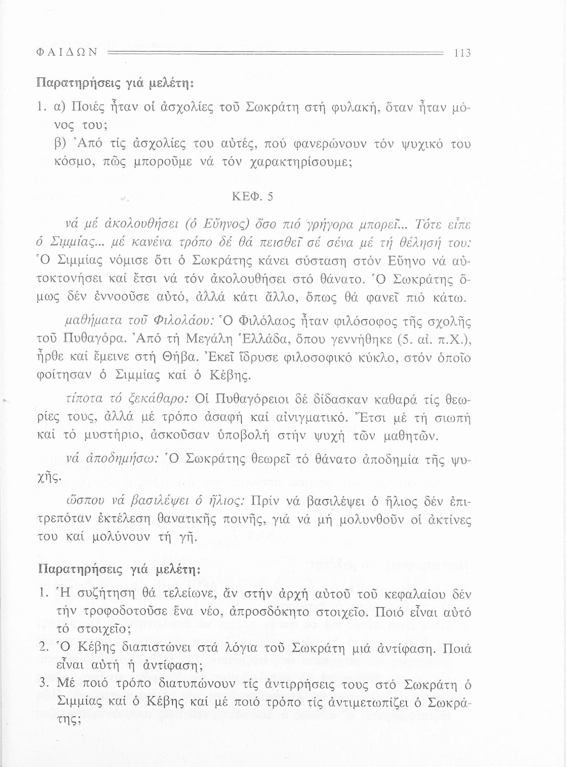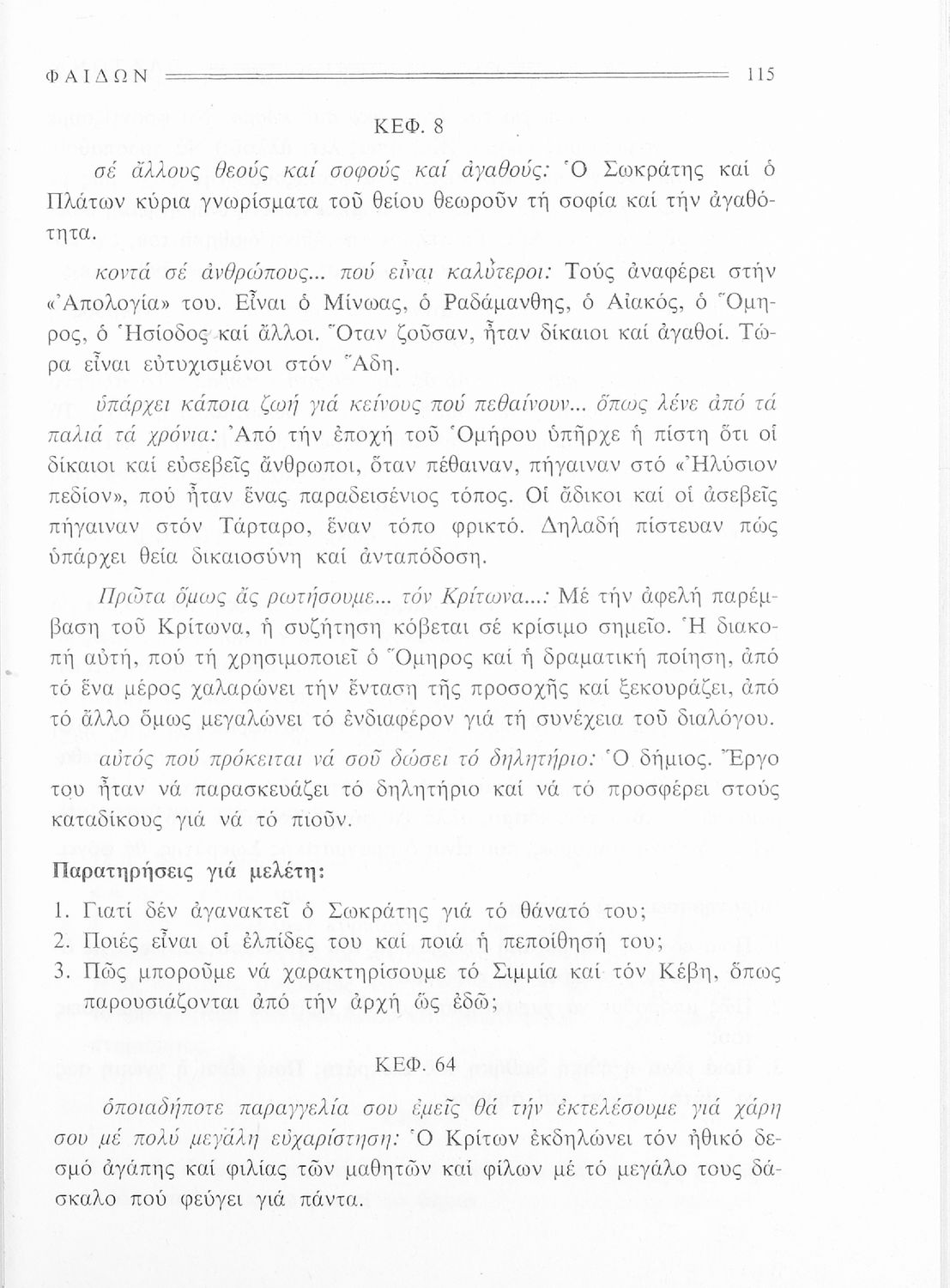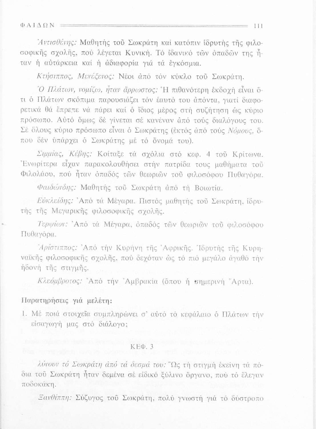 Σχολικό εγχειρίδιο της Γ΄ Γυμνασίου για το μάθημα των Αρχαίων Ελληνικών στο Γυμνάσιο. Πρόκειται για φιλοσοφικά κείμενα. Περιέχει ερμηνευτικές και πραγματολογικές παρατηρήσεις του συγγραφέα.