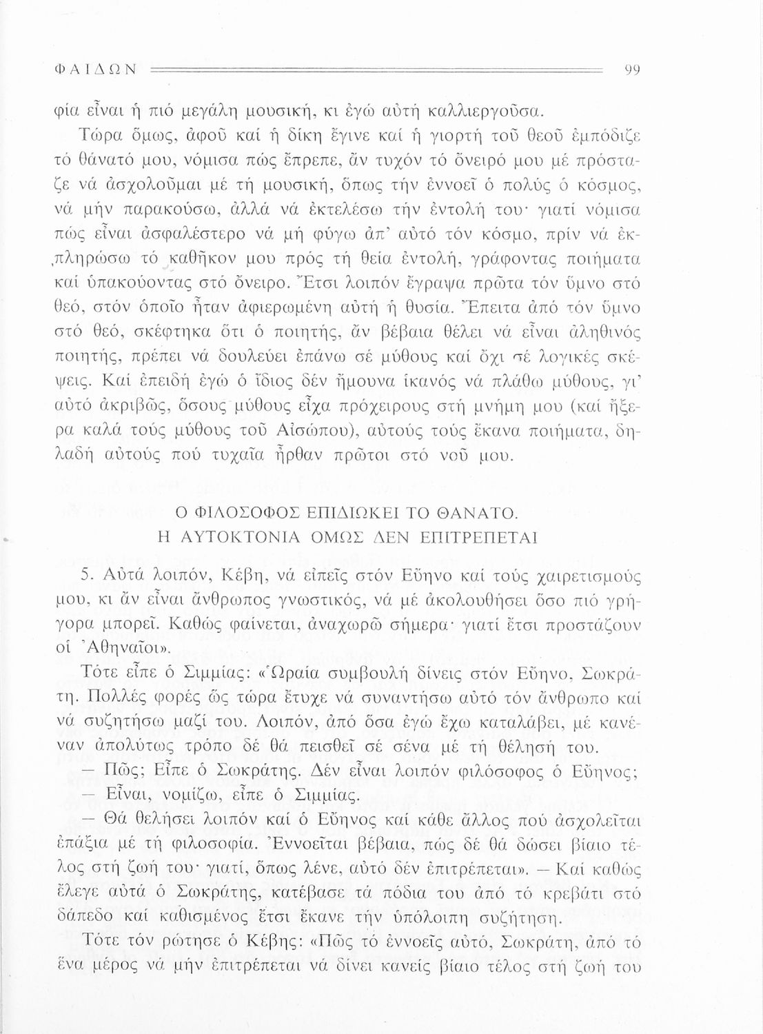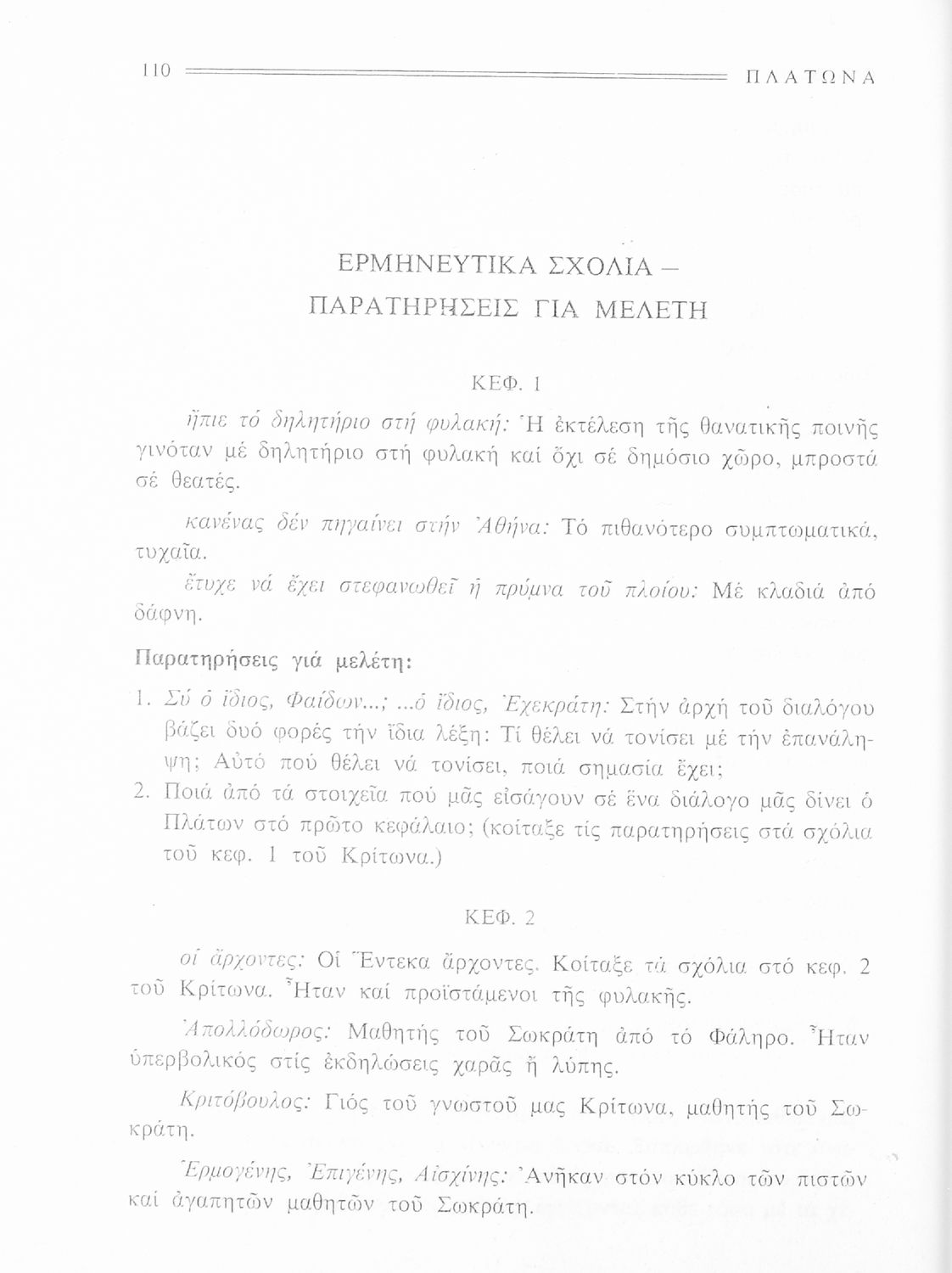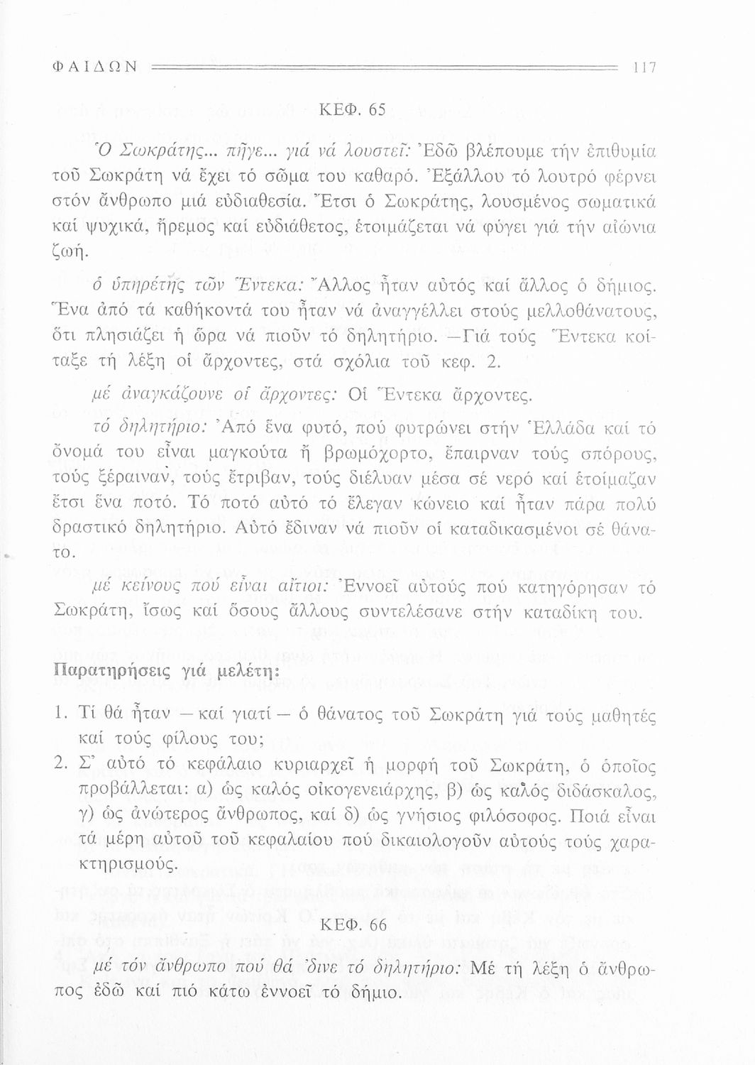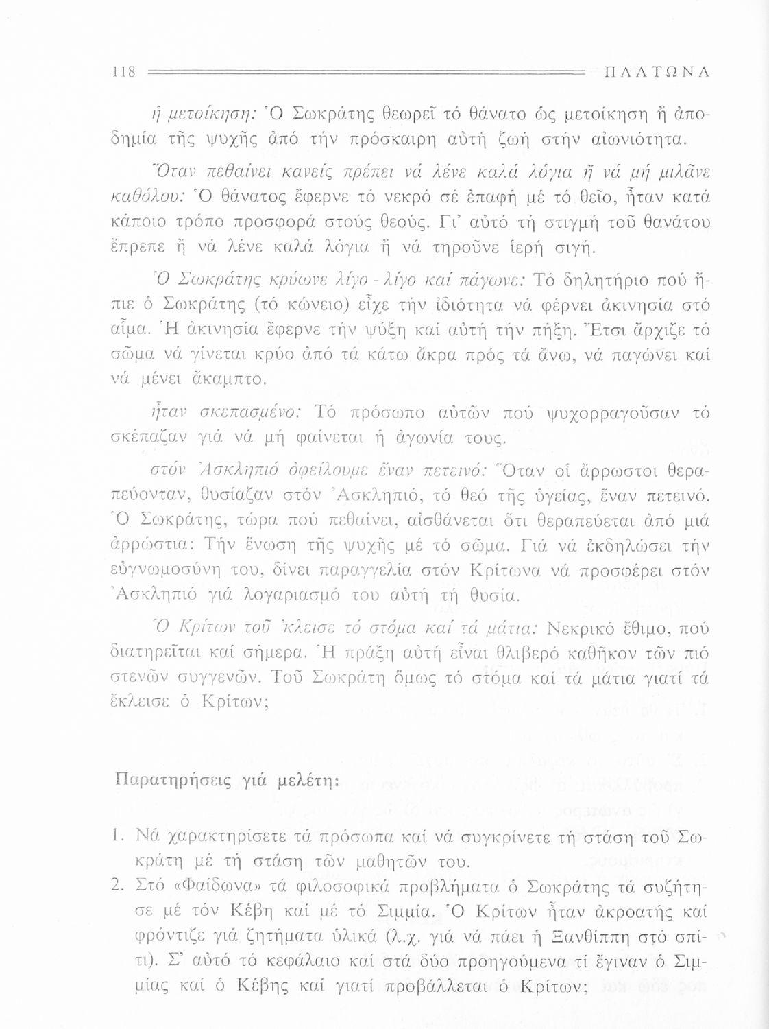 Σχολικό εγχειρίδιο της Γ΄ Γυμνασίου για το μάθημα των Αρχαίων Ελληνικών στο Γυμνάσιο. Πρόκειται για φιλοσοφικά κείμενα. Περιέχει ερμηνευτικές και πραγματολογικές παρατηρήσεις του συγγραφέα.