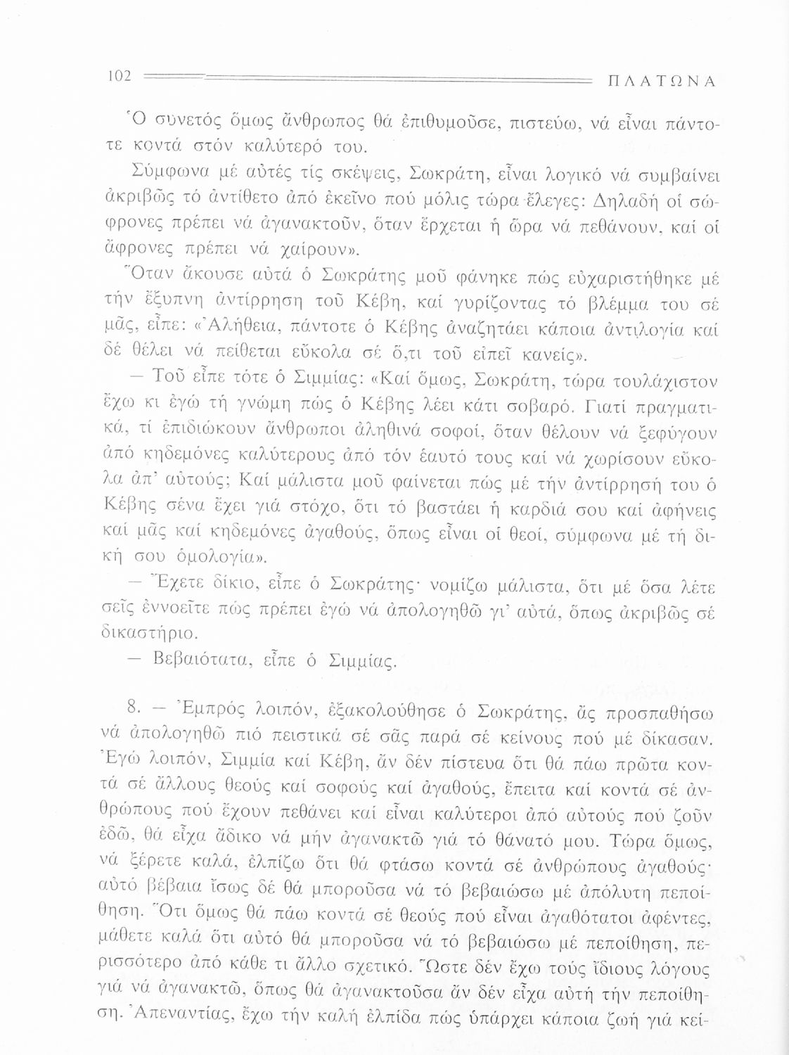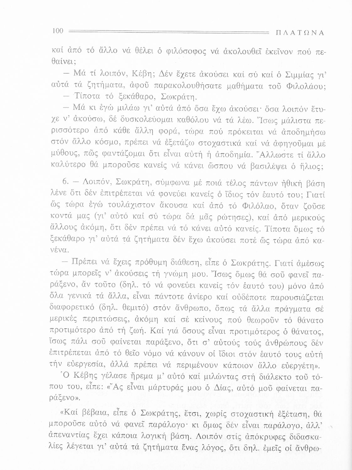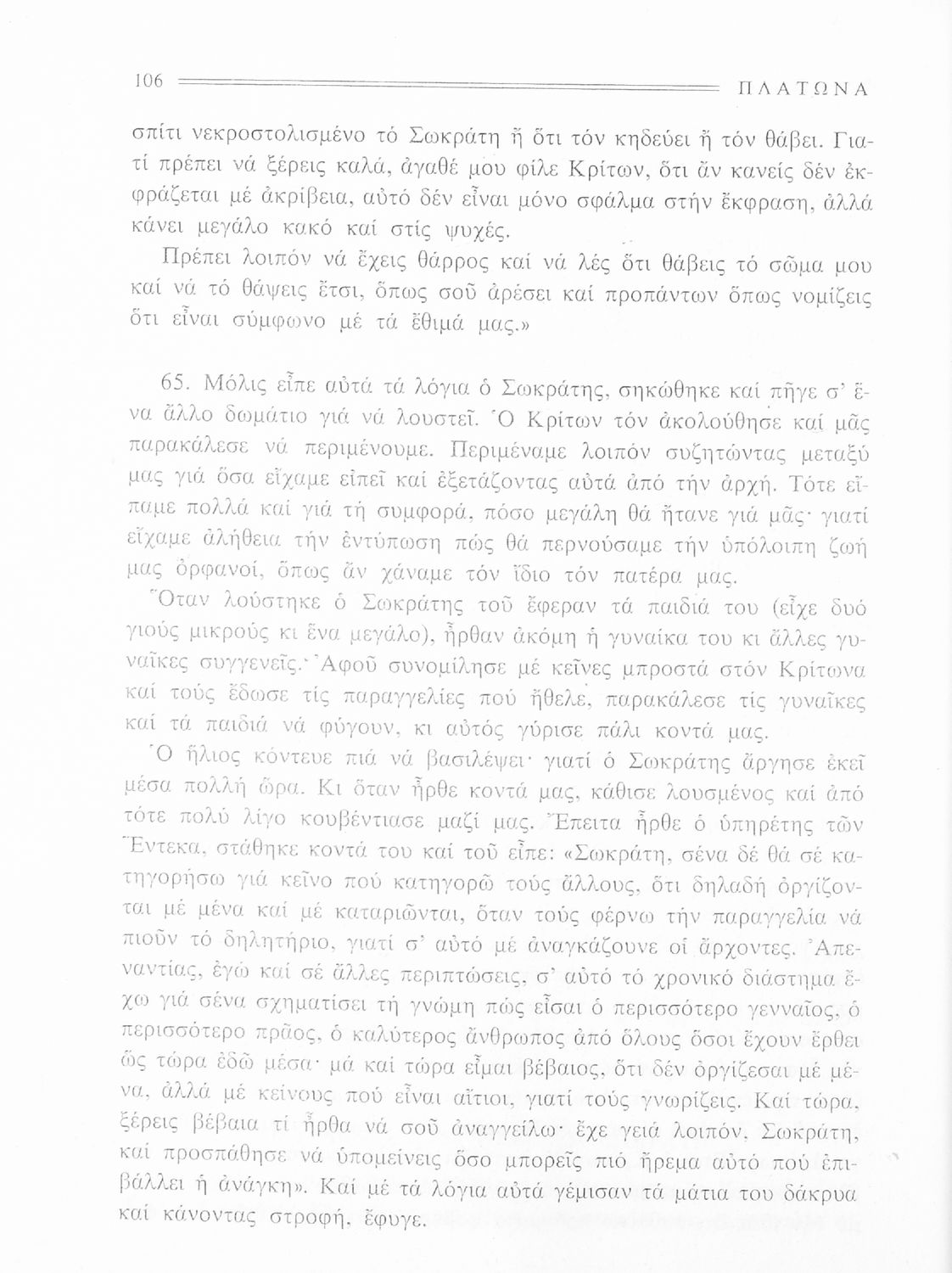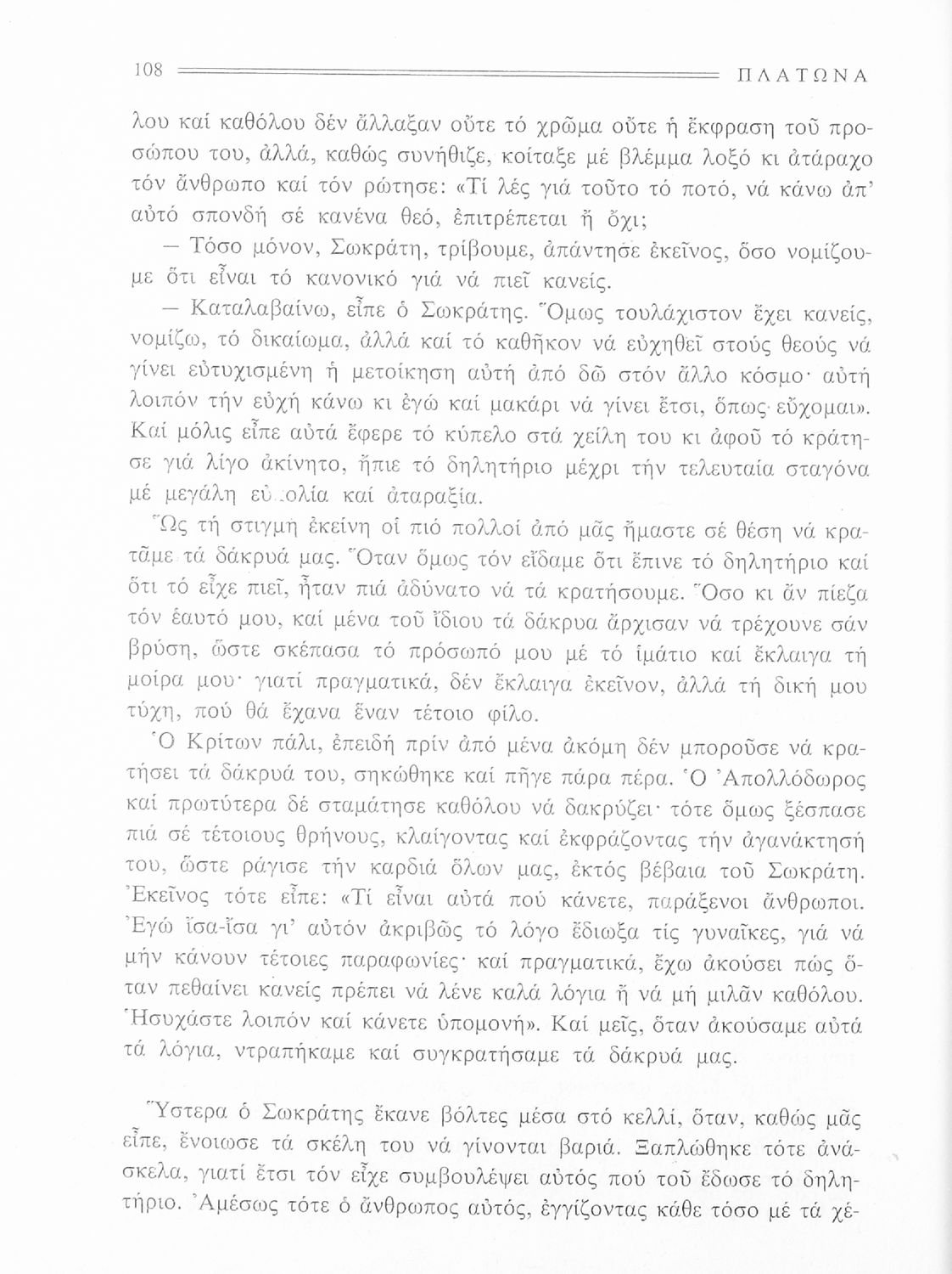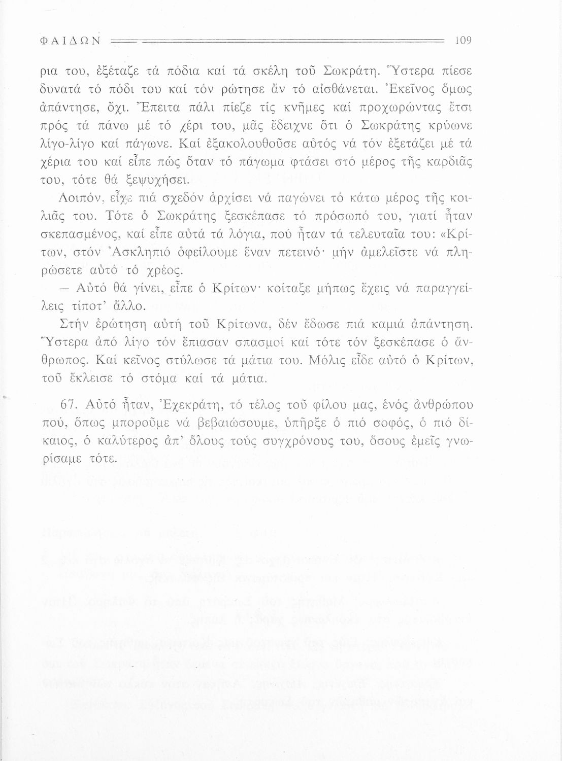 Σχολικό εγχειρίδιο Φιλοσοφίας Γ΄ Γυμνασίου που περιλαμβάνει τα κείμενα Απολογία του Σωκράτη, Κρίτων, Φαίδων και Ηθικά Νικομάχεια. Περιέχει εισαγωγικά και ερμηνευτικά σχόλια και παρατηρήσεις για μελέτη.
