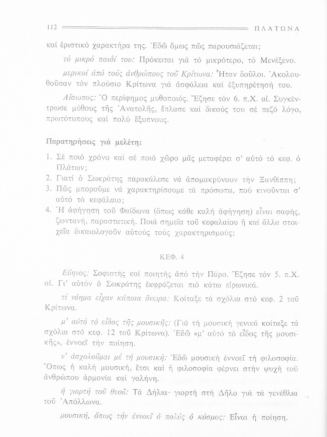 Σχολικό εγχειρίδιο Αρχαίων Ελληνικών για τη Β΄ Γυμνασίου. Περιέχει μεταφρασμένα κείμενα του Πλάτωνα και του Αριστοτέλη, εισαγωγές και ερμηνευτικά σχόλια του συγγραφέα.