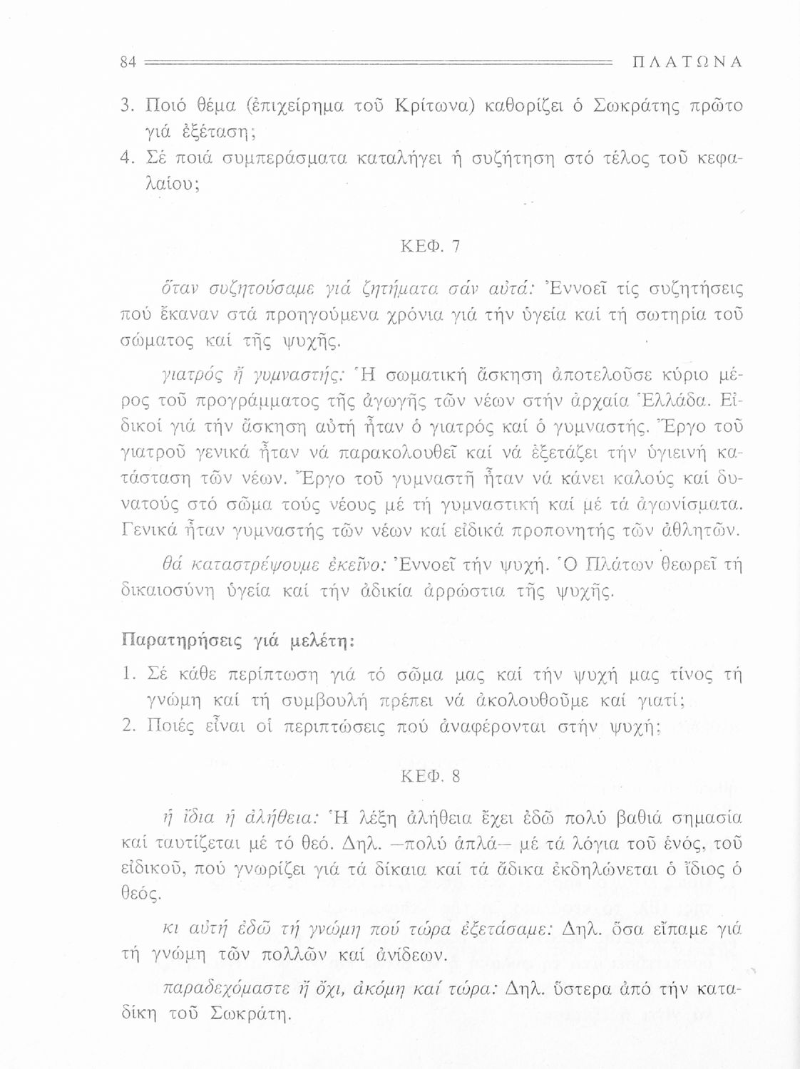 Σχολικό εγχειρίδιο της Γ΄ Γυμνασίου για το μάθημα των Αρχαίων Ελληνικών στο Γυμνάσιο. Πρόκειται για φιλοσοφικά κείμενα. Περιέχει ερμηνευτικές και πραγματολογικές παρατηρήσεις του συγγραφέα.