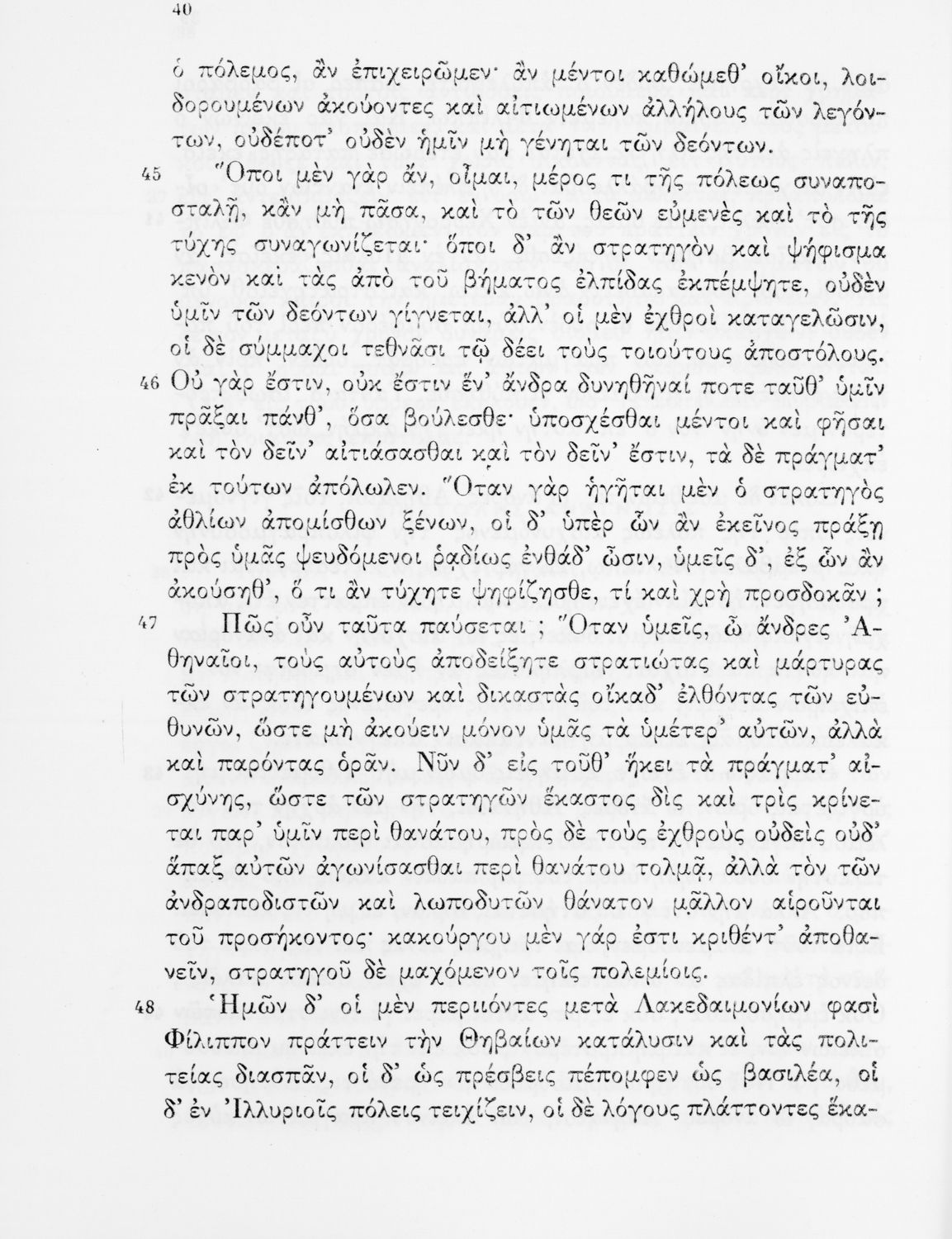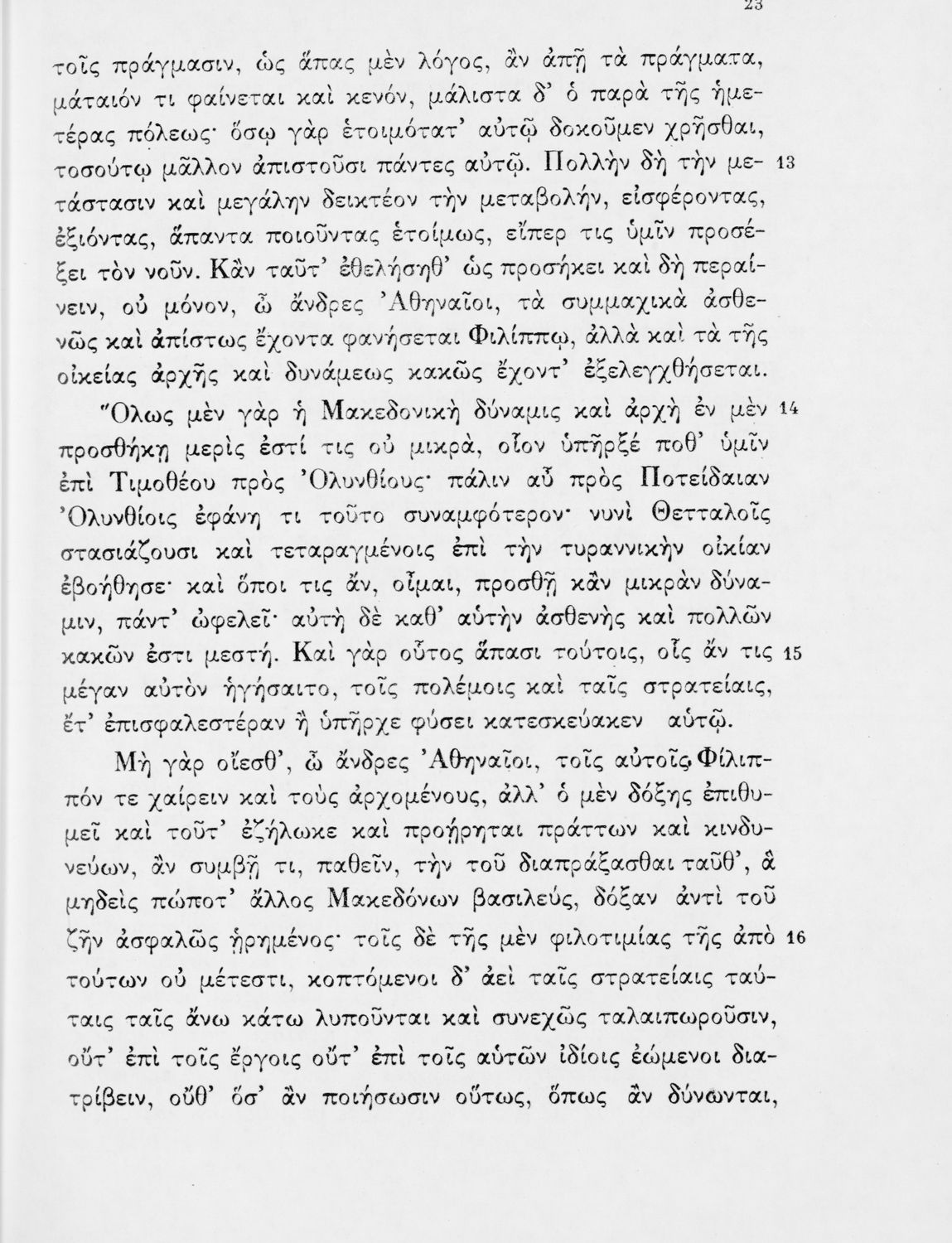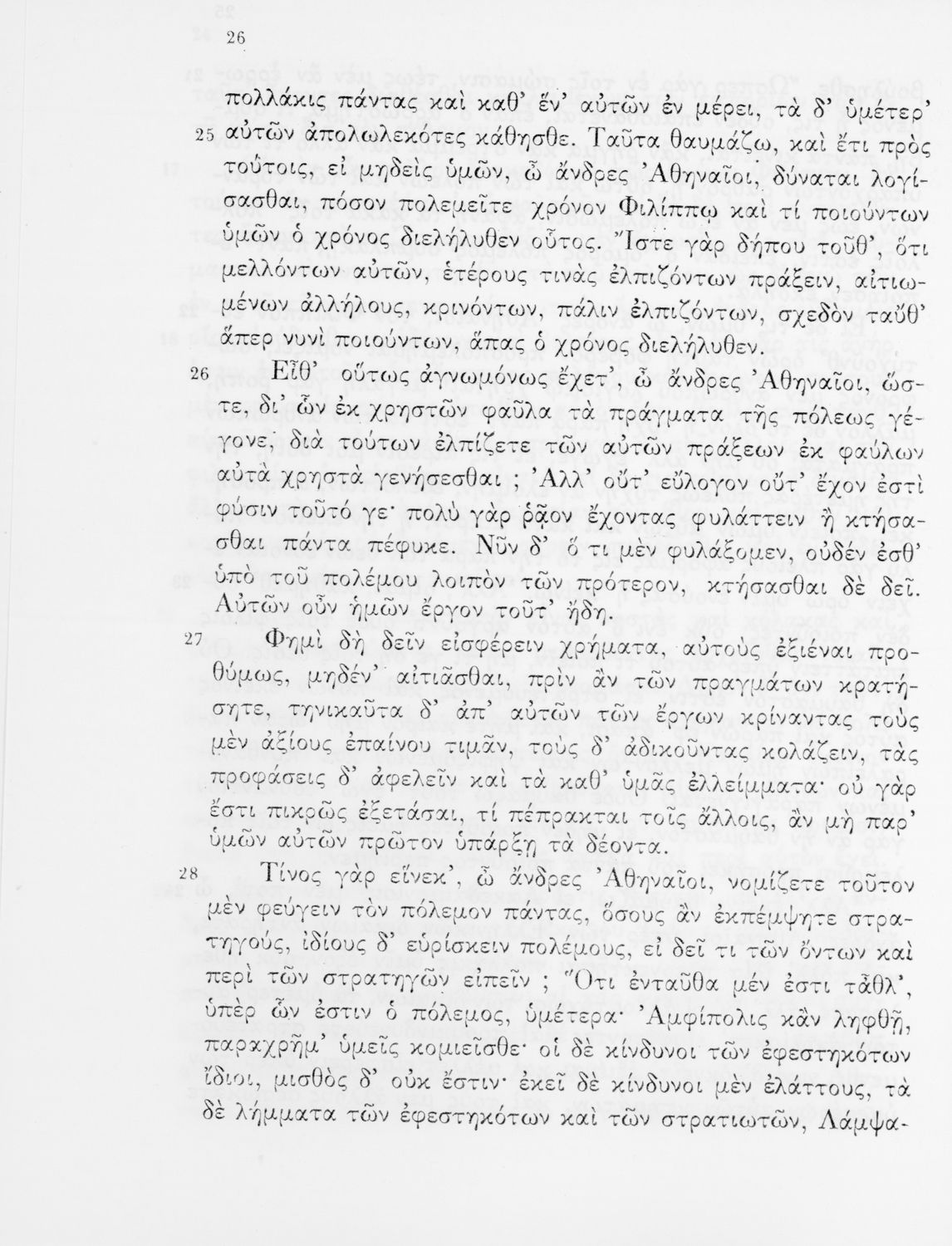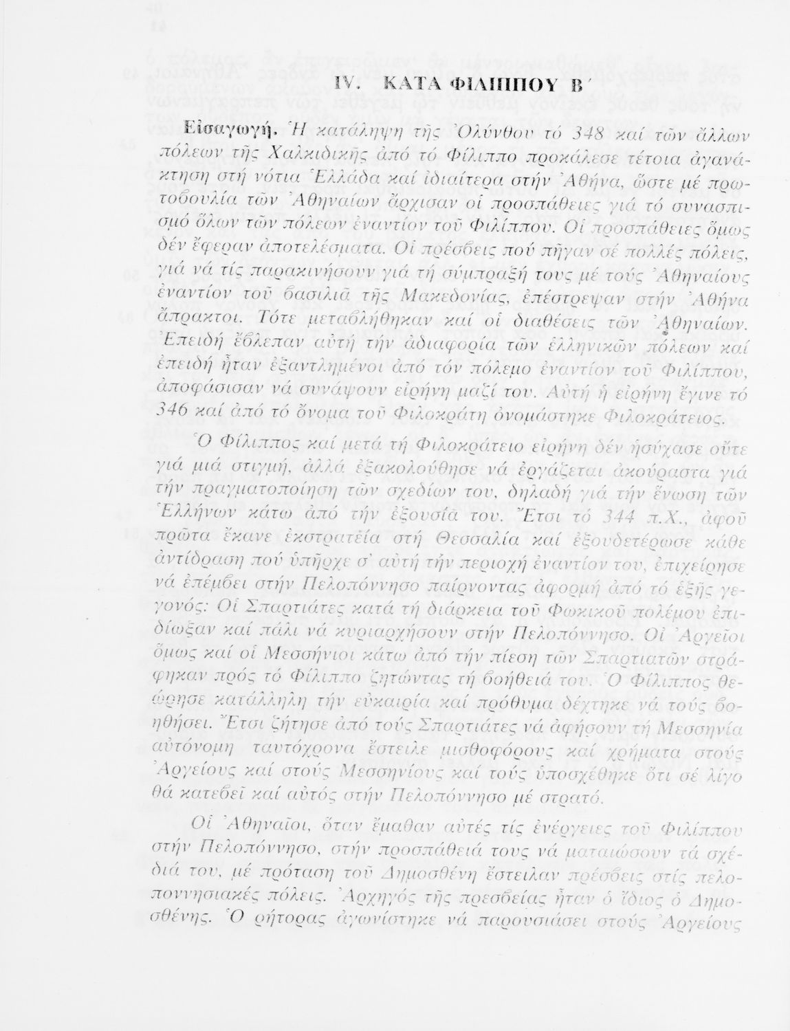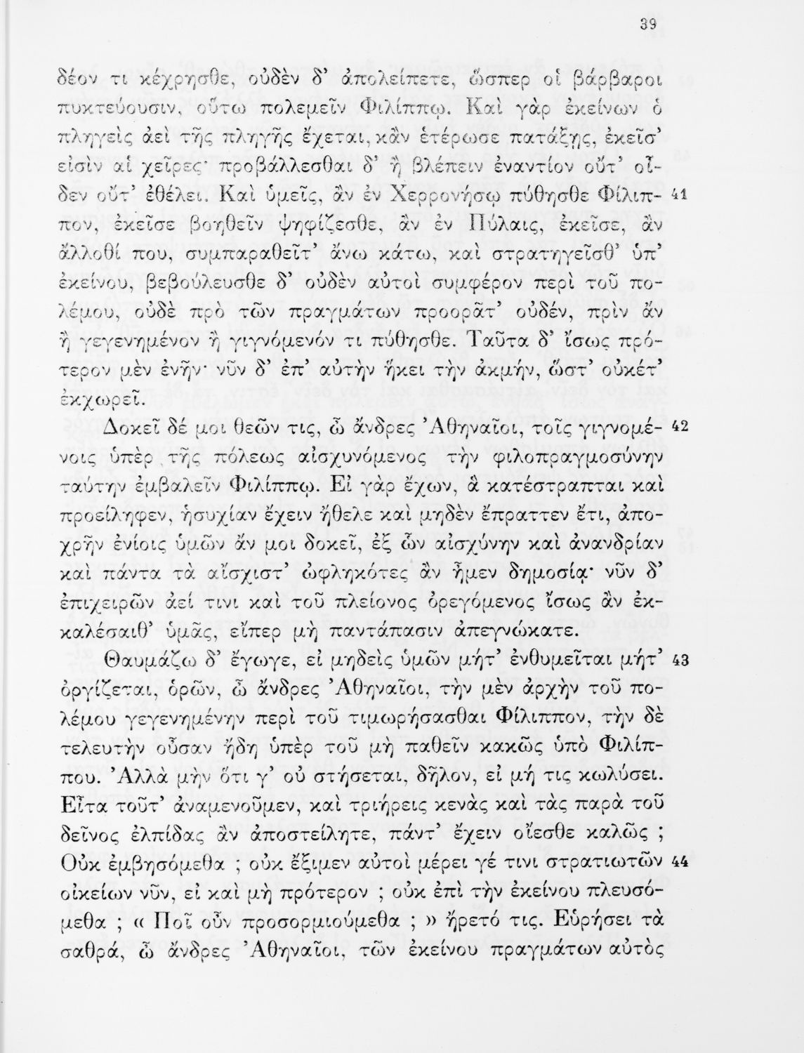 Σχολικό εγχειρίδιο Αρχαίων Ελληνικών. Α΄ Λυκείου που περιλαμβάνει εισαγωγή στη ζωή και το έργο του Δημοσθένη, τους Λόγους Α΄ και Β΄ Ολυνθιακός και Α΄ και Β΄ κατά Φιλίππου και ερμηνευτικές σημειώσεις.