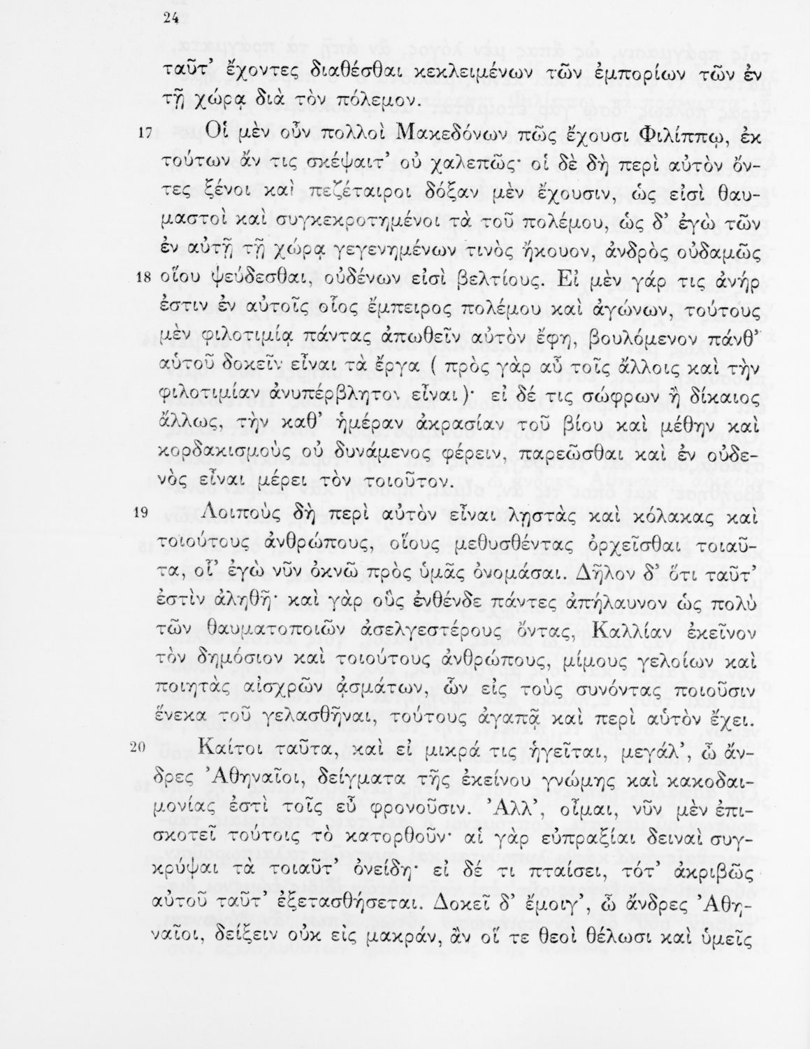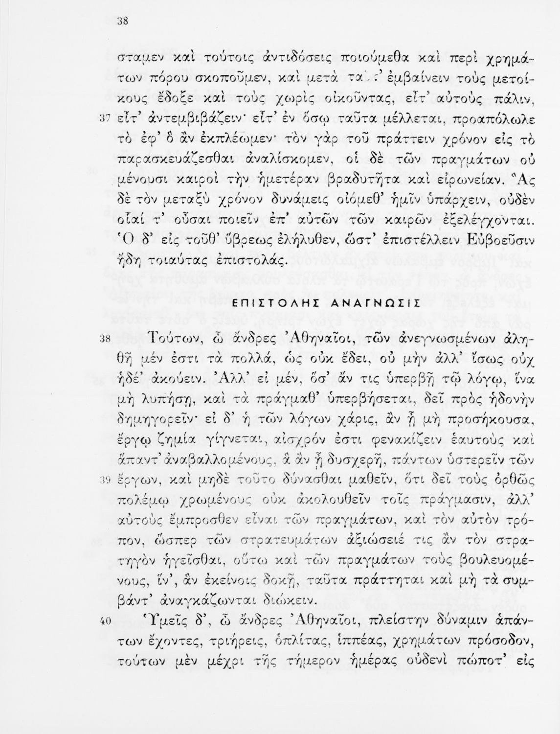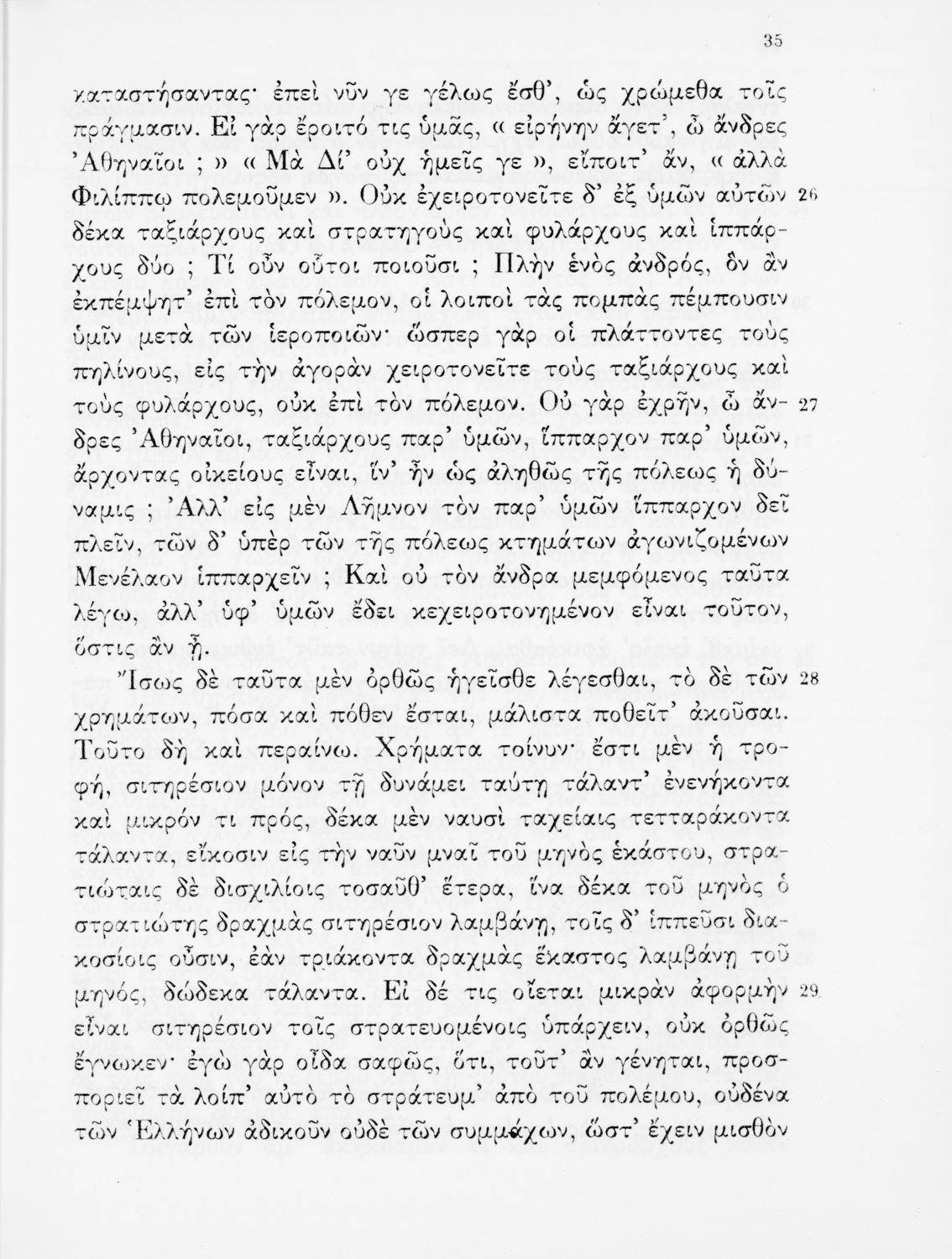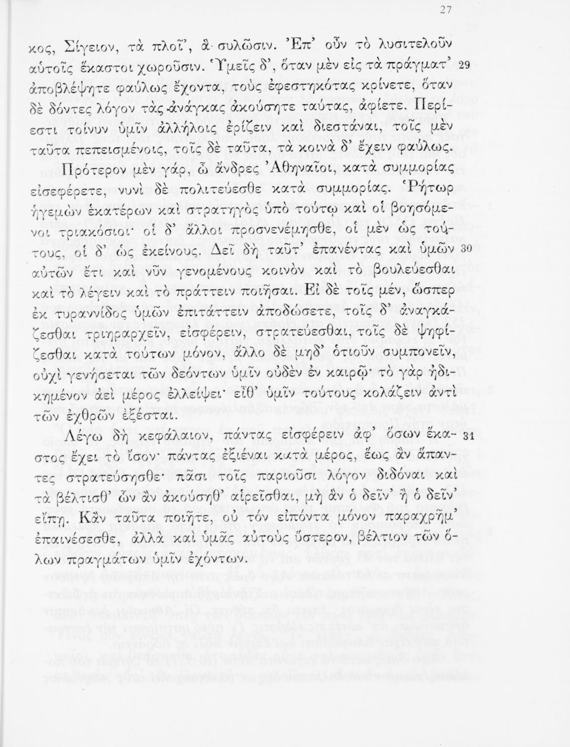 Σχολικό εγχειρίδιο Αρχαίων Ελληνικών. Α΄ Λυκείου που περιλαμβάνει εισαγωγή στη ζωή και το έργο του Δημοσθένη, τους Λόγους Α΄ και Β΄ Ολυνθιακός και Α΄ και Β΄ κατά Φιλίππου και ερμηνευτικές σημειώσεις.