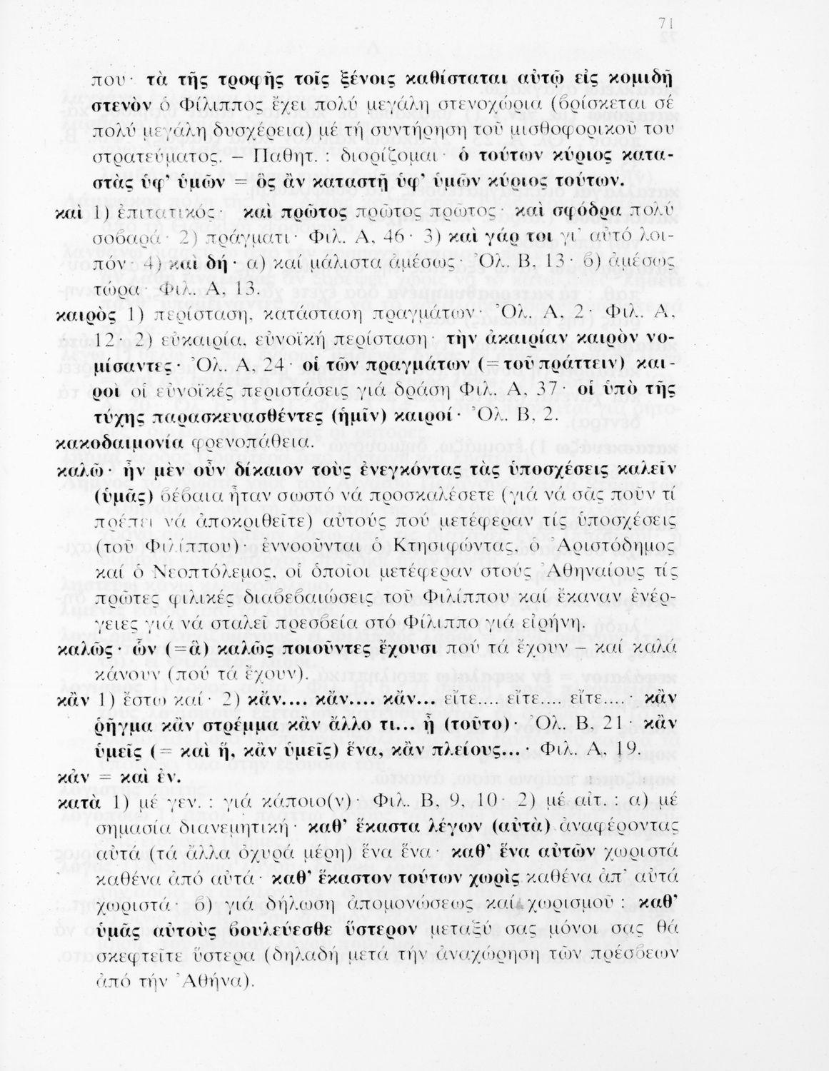 Δημοσθένης, Κυριάκος Κοσμάς (εισαγωγικά κείμενα, λεξιλόγιο)