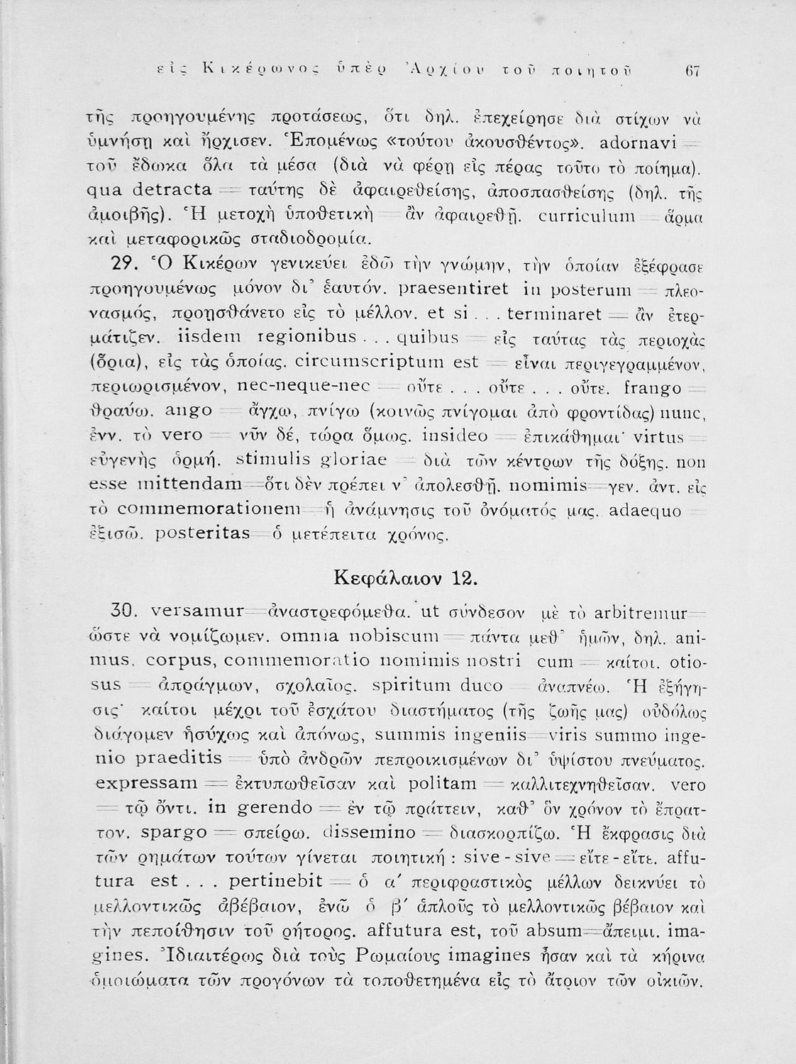 Σχολικό εγχειρίδιο Λατινικών για την Ε΄ Γυμνασίου παλαιού τύπου και την ΣΤ΄ Γυμνασίου νέου τύπου ου περιέχει βιογραφικό σημείωμα των Κικέρωνα και Οβίδιου, εισαγωγικά σχόλια, κείμενο και ερμηνευτικές σημειώσεις.