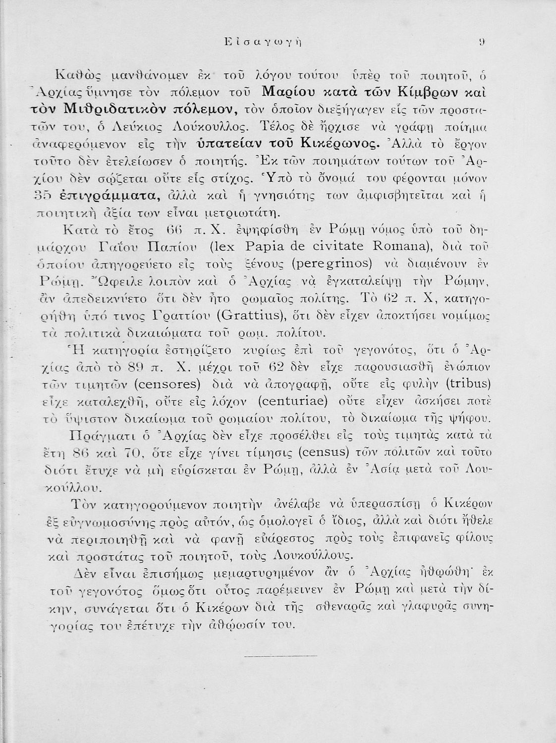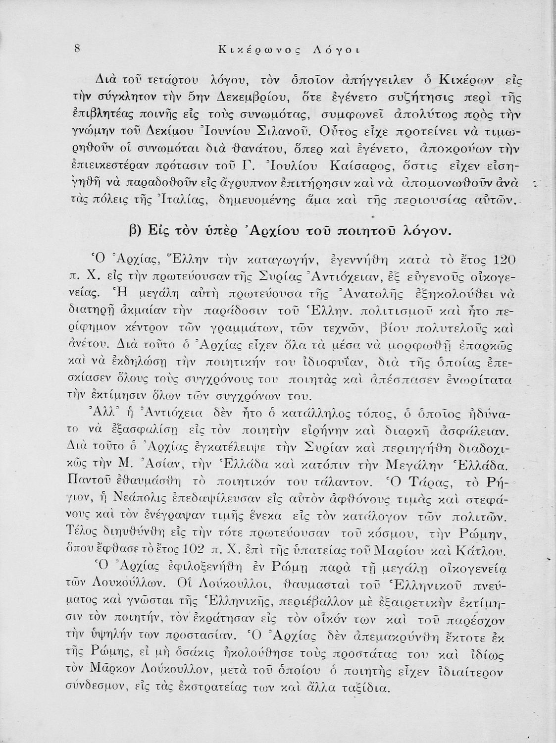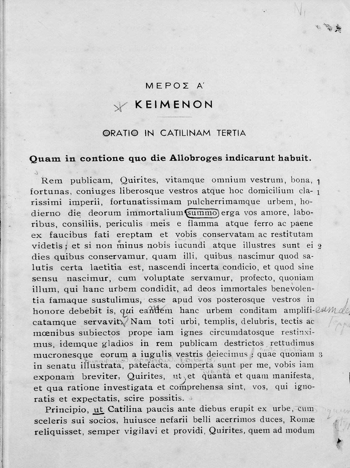 Κικέρωνος Λόγοι Τρίτος κατά Κατιλίνα και ο υπέρ Αρχίου του Ποιητού, δια την Ε΄ τάξιν των Γυμνασίων παλαιού τύπου