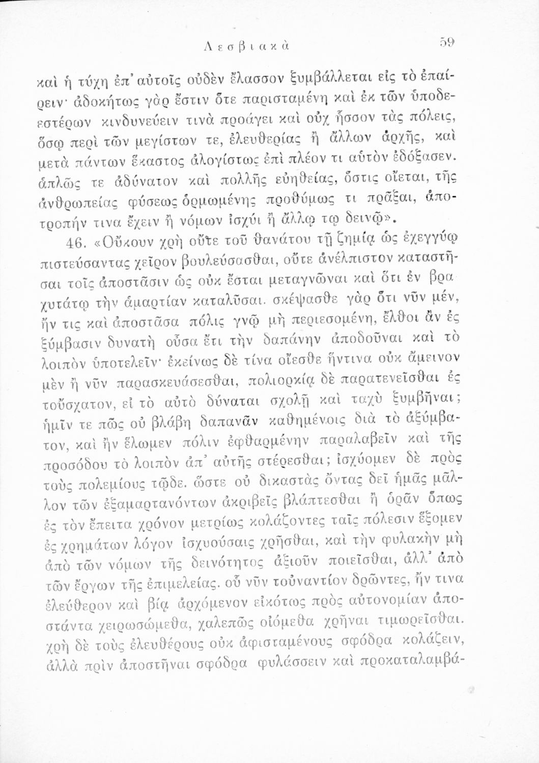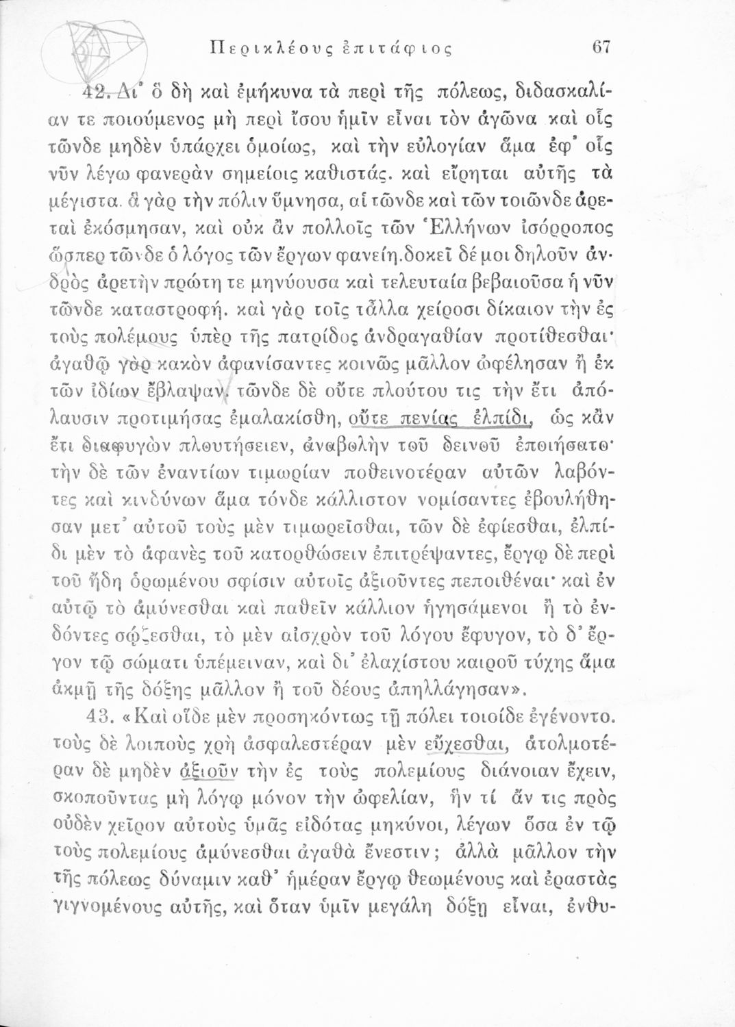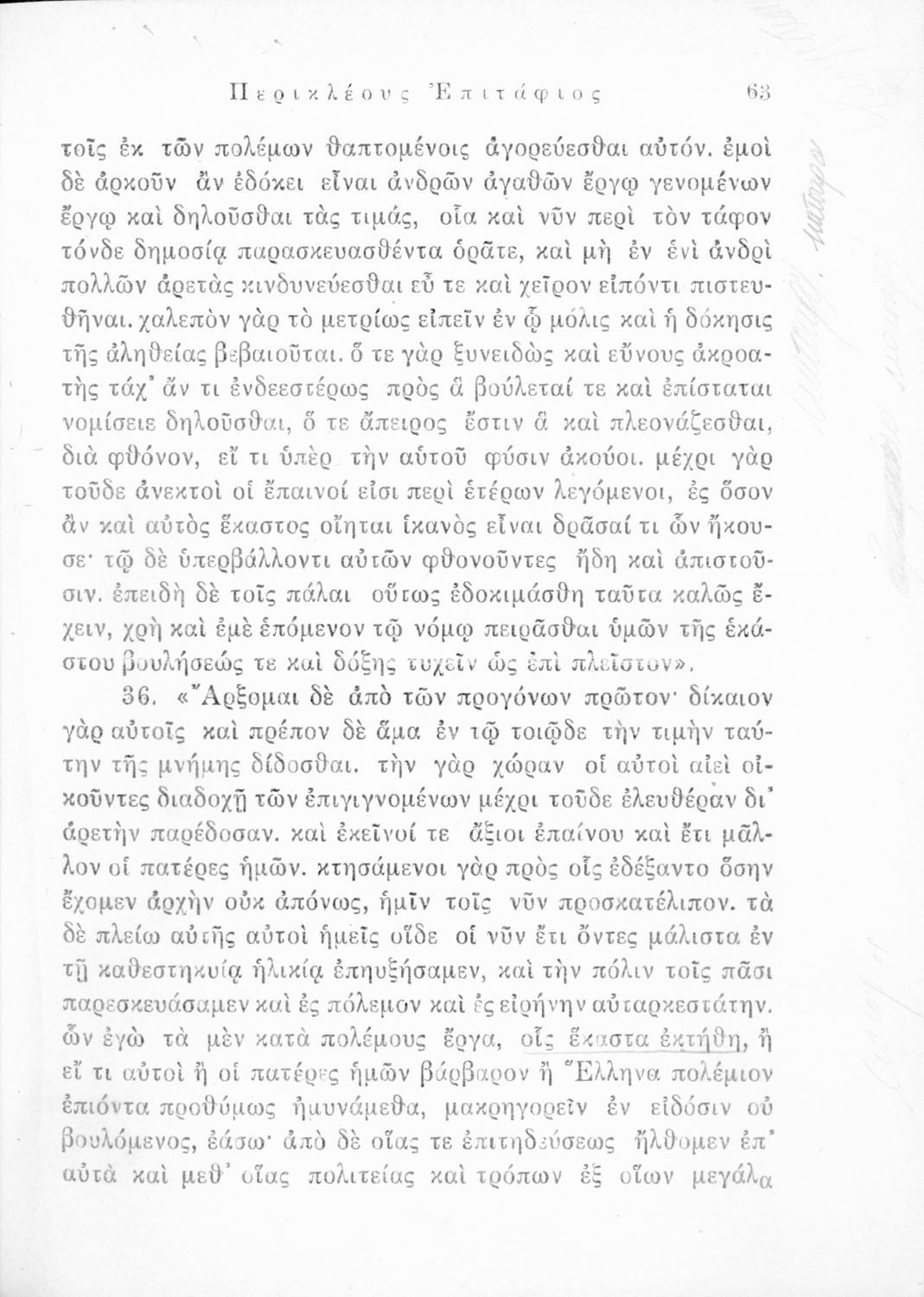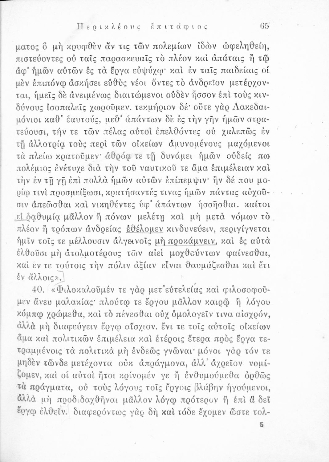 Σχολικό εγχειρίδιο Αρχαίων Ελληνικών Γυμνασίου που περιέχει εισαγωγή στη ζωή και το έργο του Θουκυδίδη, αποσπάσματα από τα Πλαταιϊκά, τα Λεσβιακά και τον Επιτάφιο του Περικλή και ερμηνευτικές σημειώσεις.