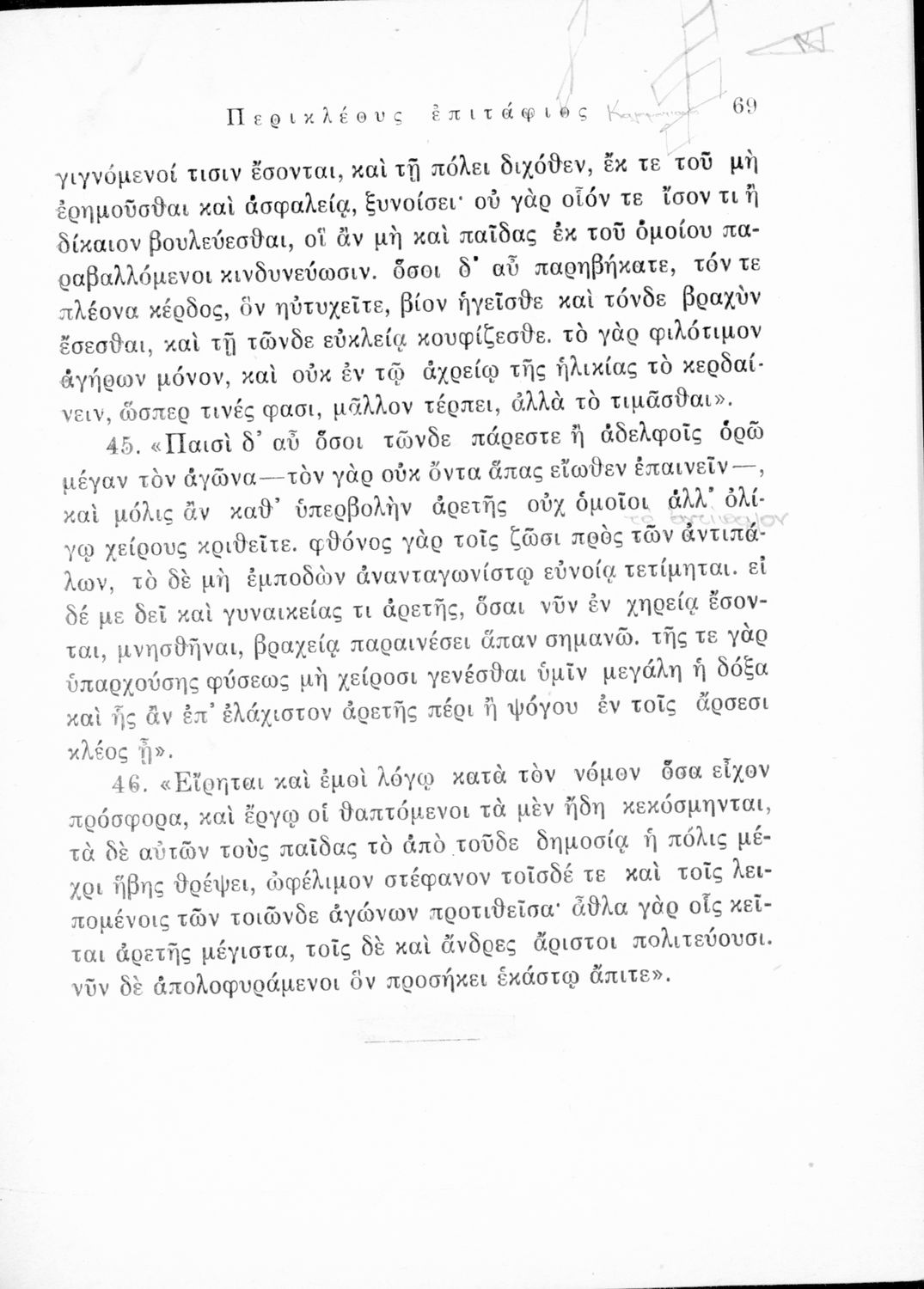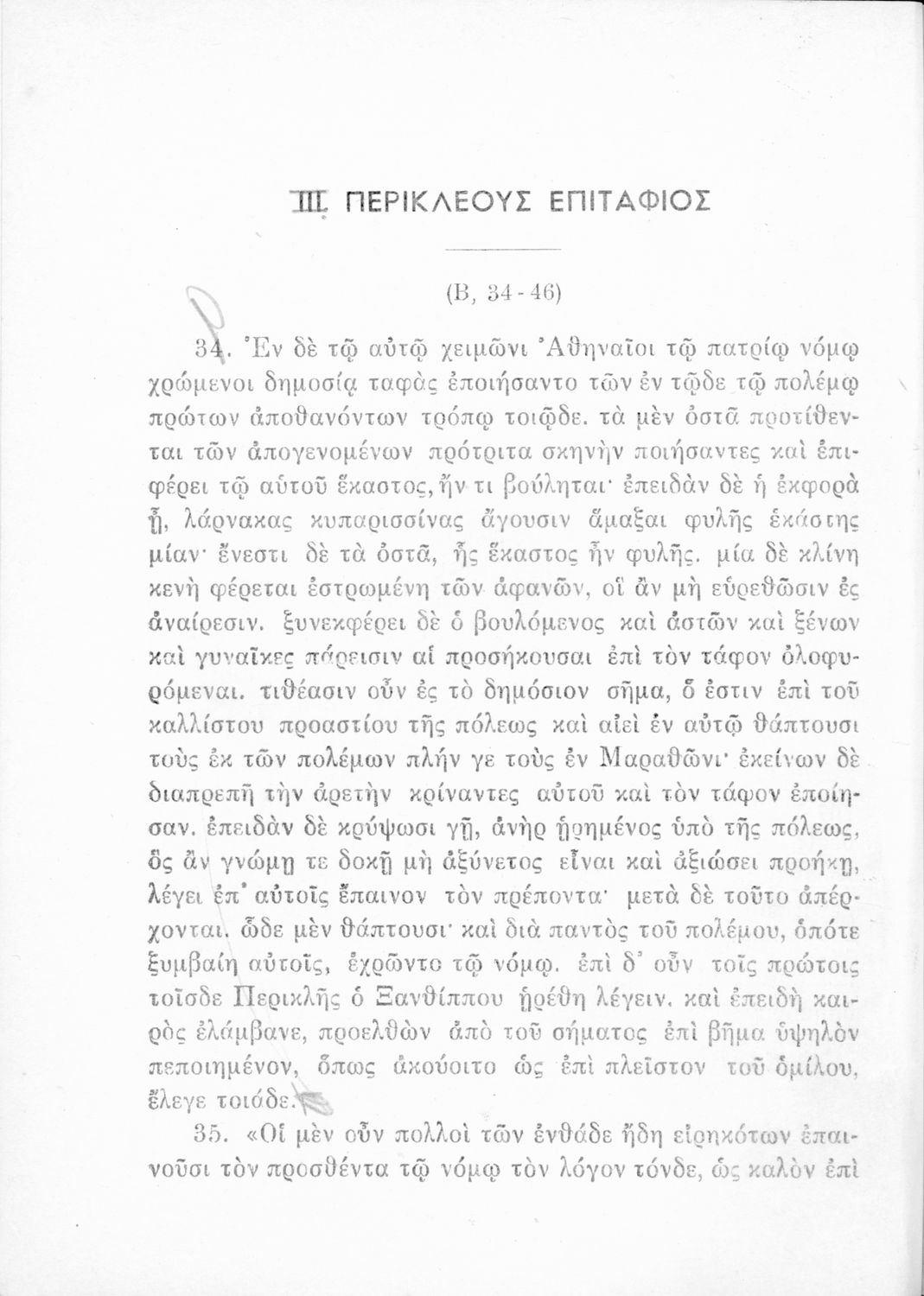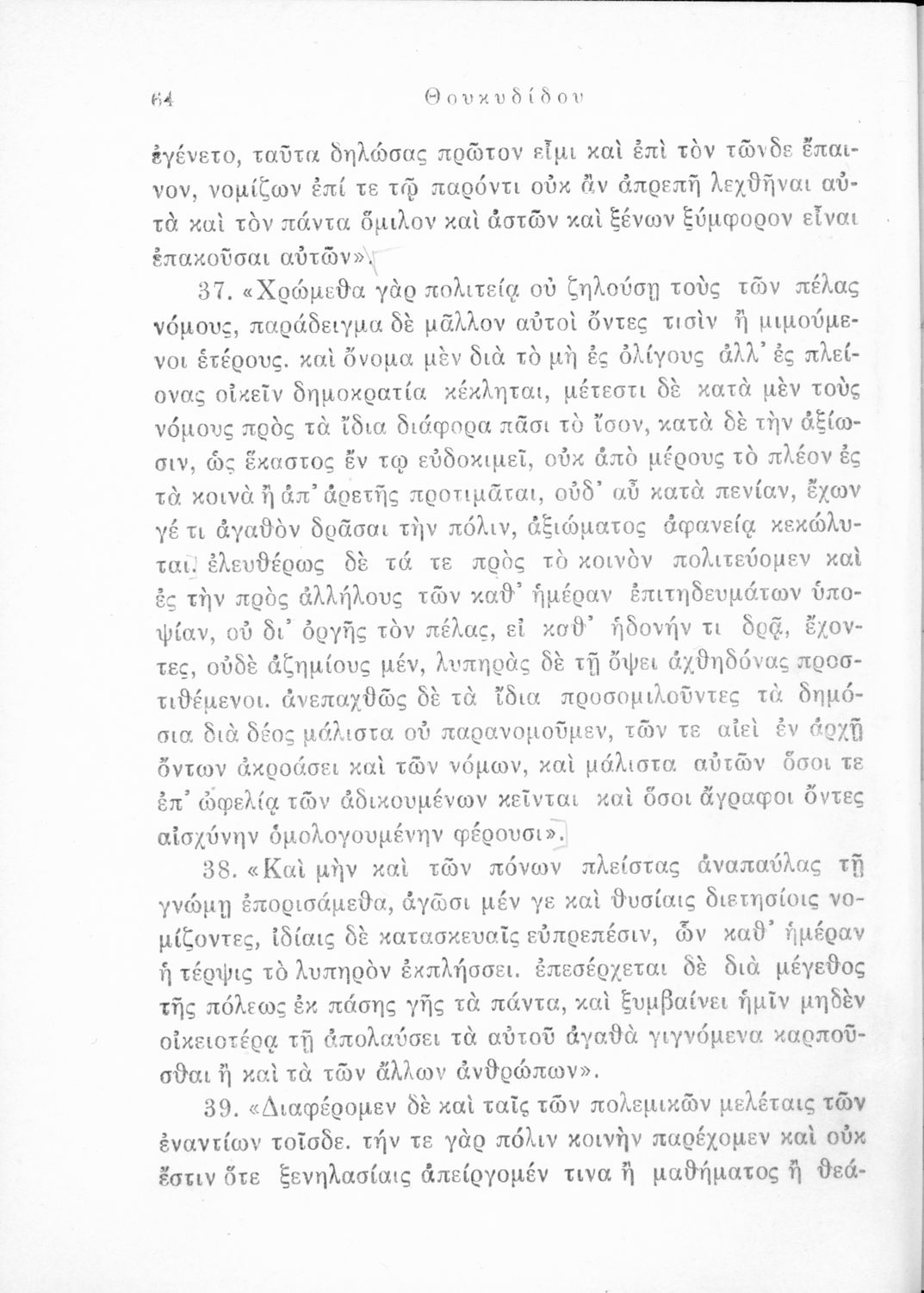 Σχολικό εγχειρίδιο Αρχαίων Ελληνικών για τις τάξεις του Γυμνασίου το οποίο περιέχει αποσπάσματα από το έργο του Θουκυδίδη, εισαγωγή στη ζωή και το έργο του και ερμηνευτικές σημειώσεις.