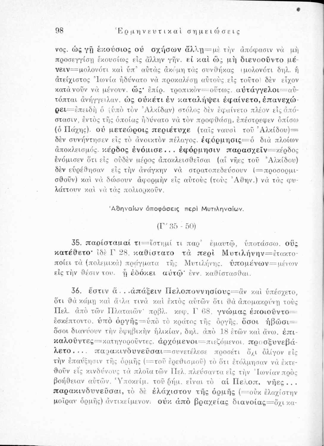 Θουκυδίδης, Χρισ. Παπαναστασίου (σχόλια)