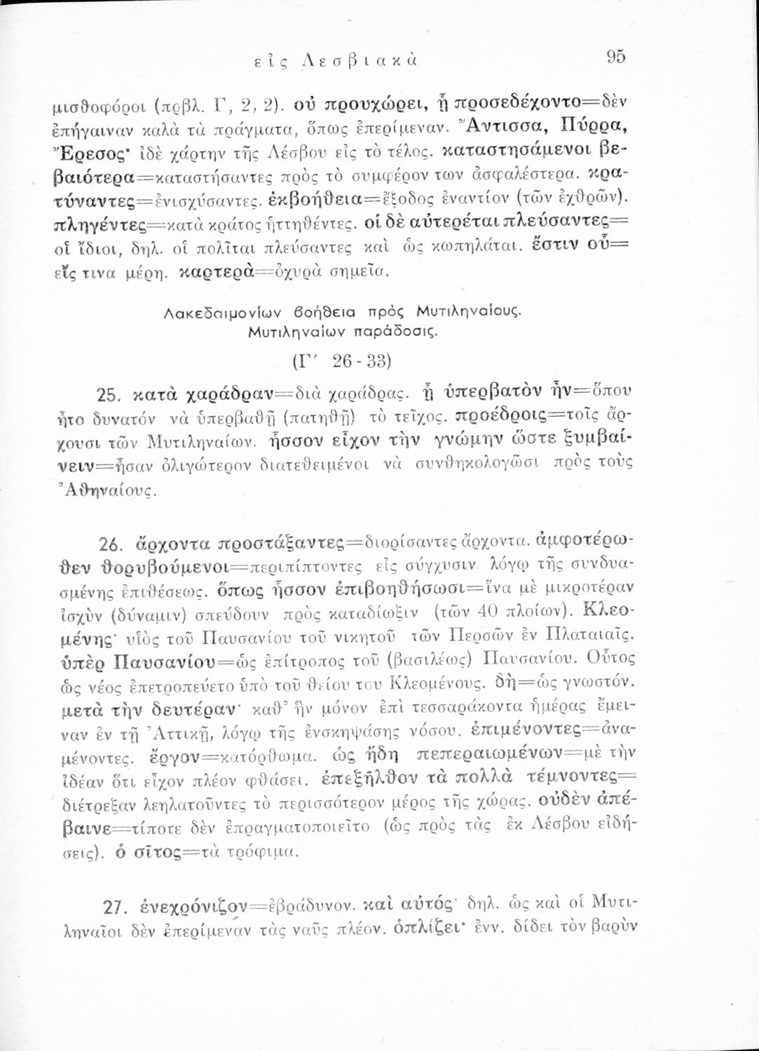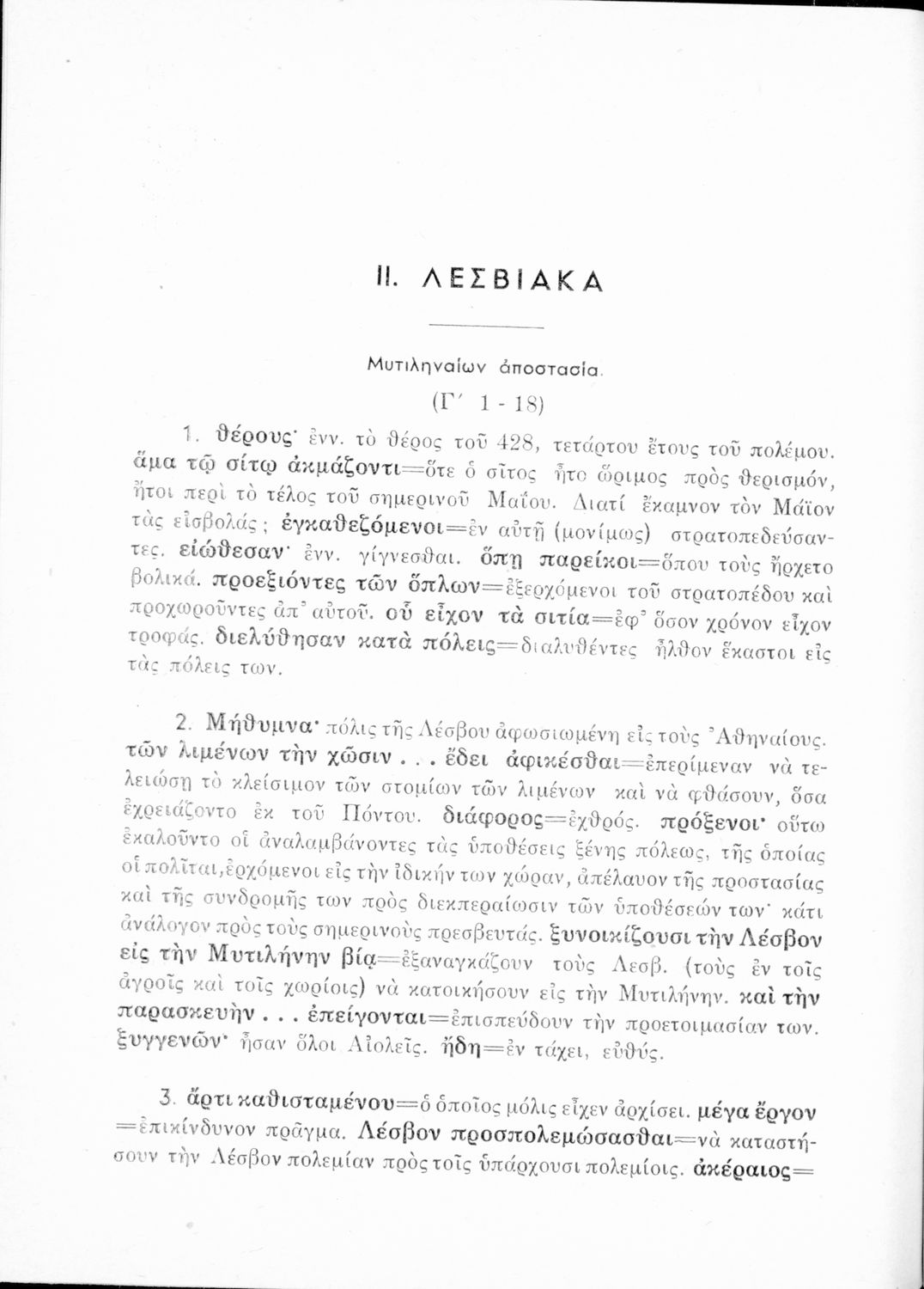 Σχολικό εγχειρίδιο Αρχαίων Ελληνικών Γυμνασίου που περιέχει εισαγωγή στη ζωή και το έργο του Θουκυδίδη, αποσπάσματα από τα Πλαταιϊκά, τα Λεσβιακά και τον Επιτάφιο του Περικλή και ερμηνευτικές σημειώσεις.