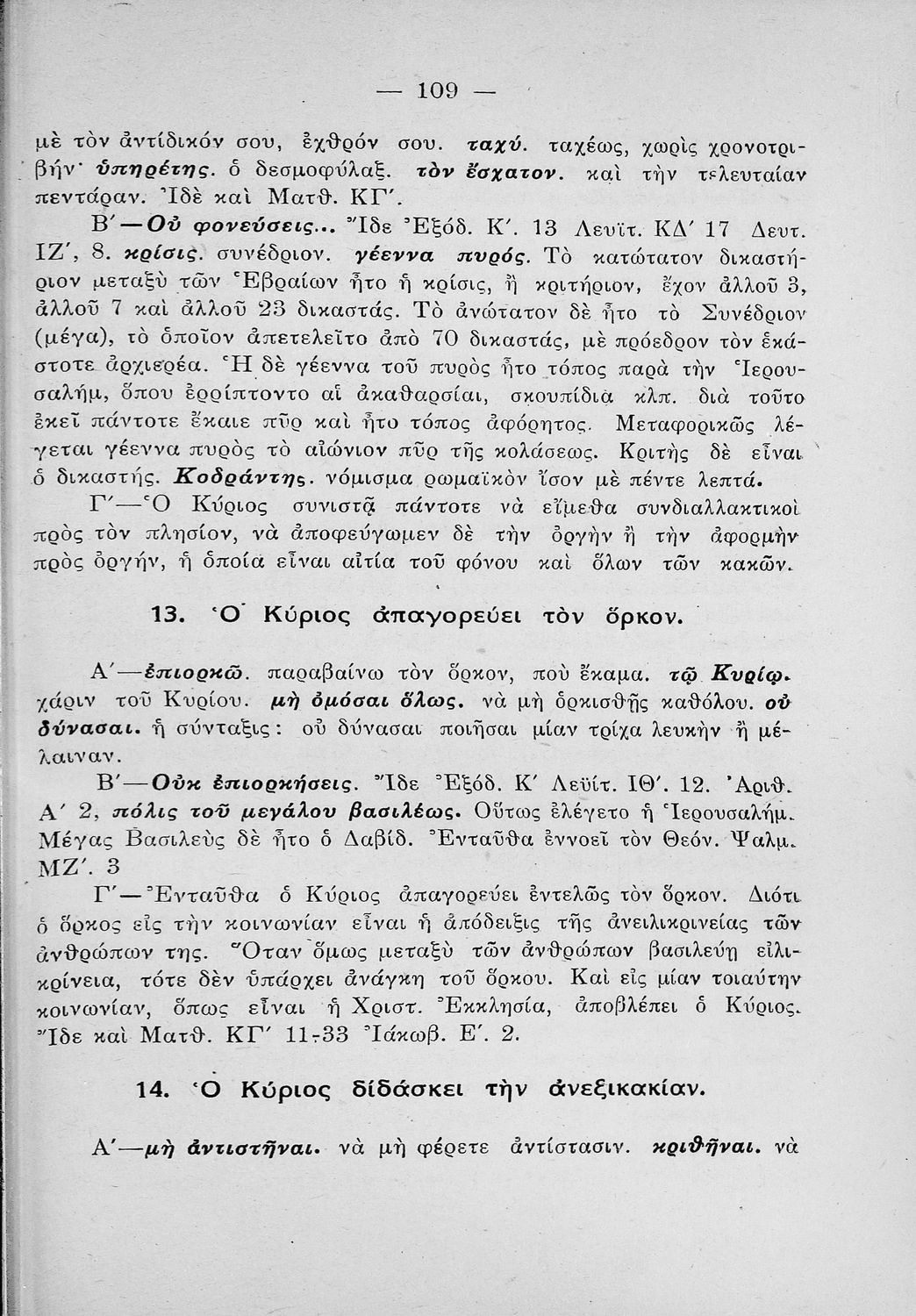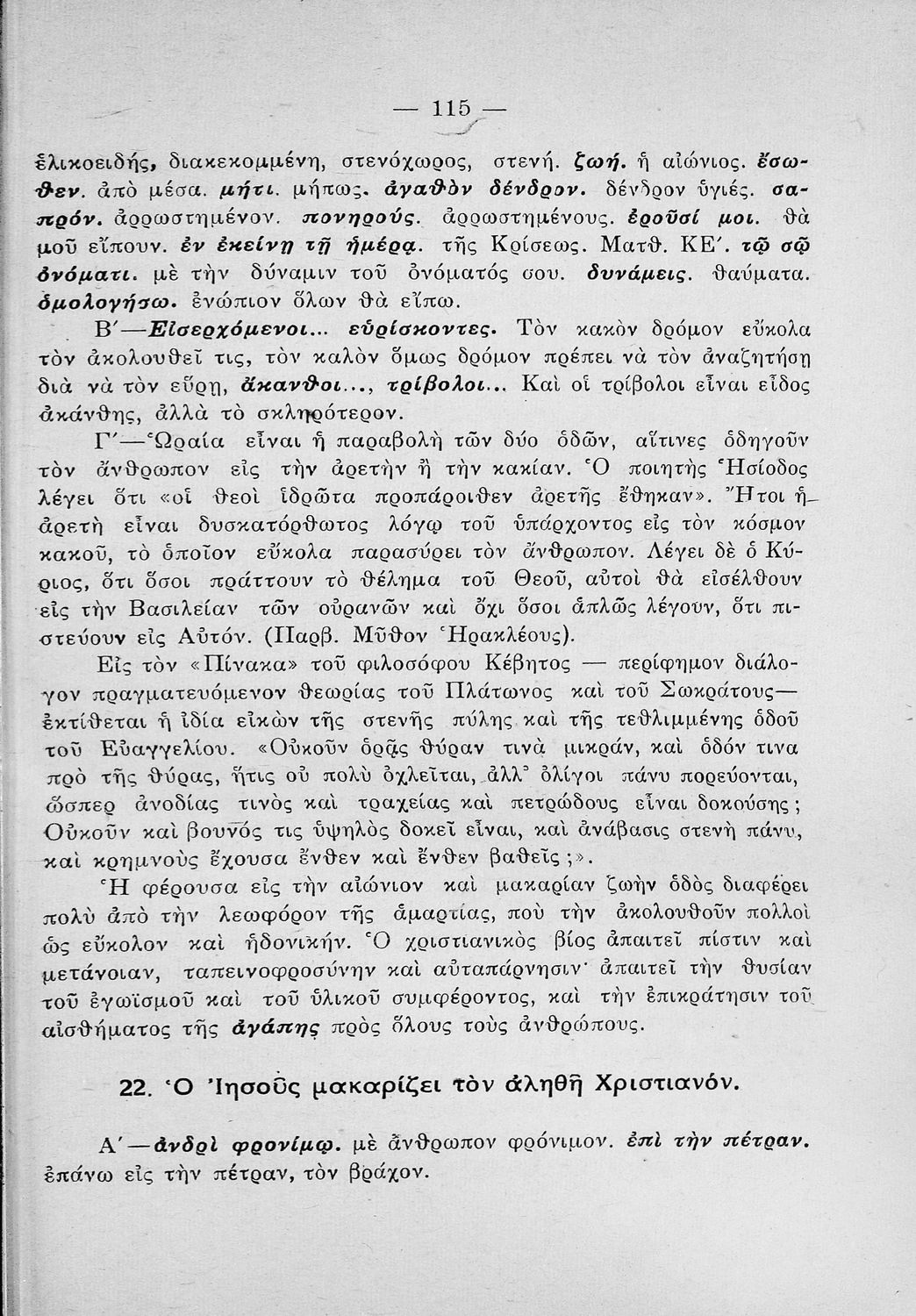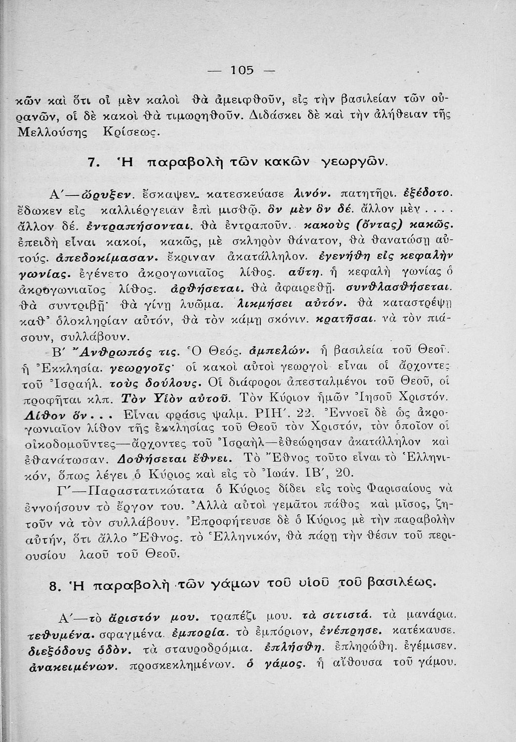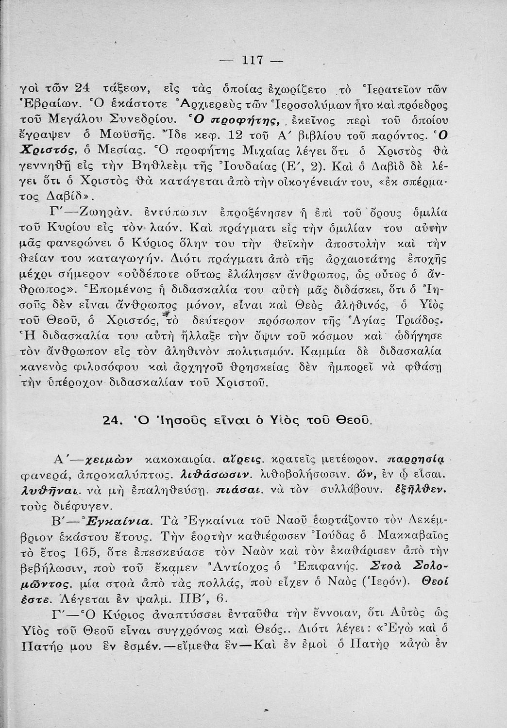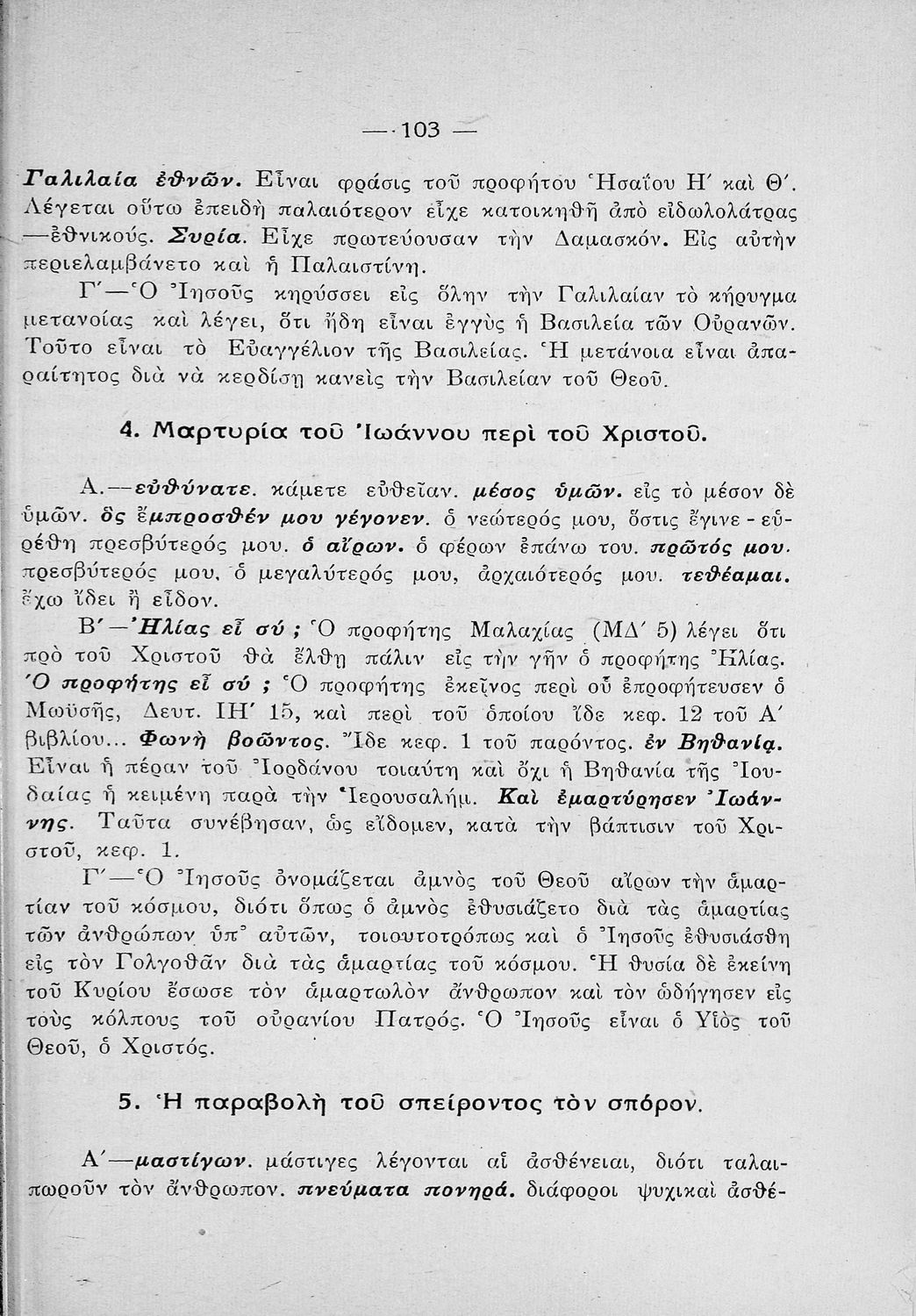 Βαθμίδα εκπαίδευσης: Δευτεροβάθμια Τάξη: Ε' Οκταταξίου Γυμνασίου / Γ' Εξαταξίου Γυμνασίου Μάθημα: Θρησκευτικά Γλώσσα: Καθαρεύουσα Παρουσίαση περιεχομένου: Σχολικό εγχειρίδιο Θρησκευτικών για την Ε΄ Οκταταξίου και Εξατάξιου Γυμνασίου που περιέχει εισαγωγικά σχόλια στα βιβλία της Παλαιάς και Καινής Διαθήκης, περικοπές, ερμηνευτικές και πραγματολογικές σημειώσεις |