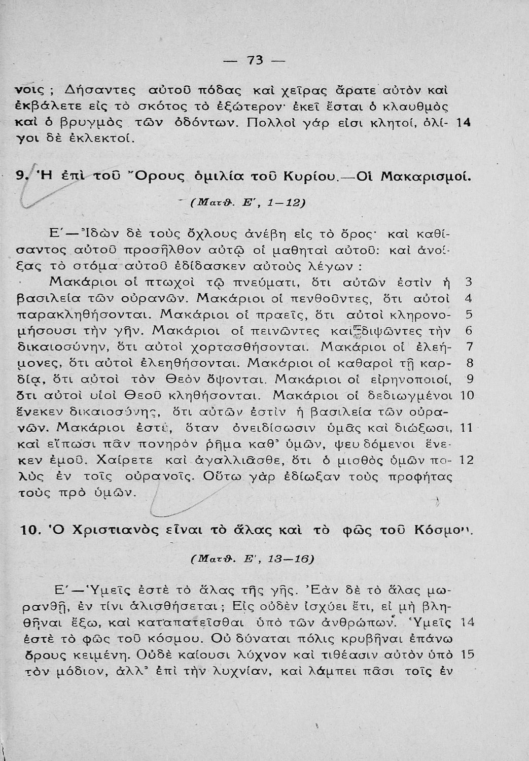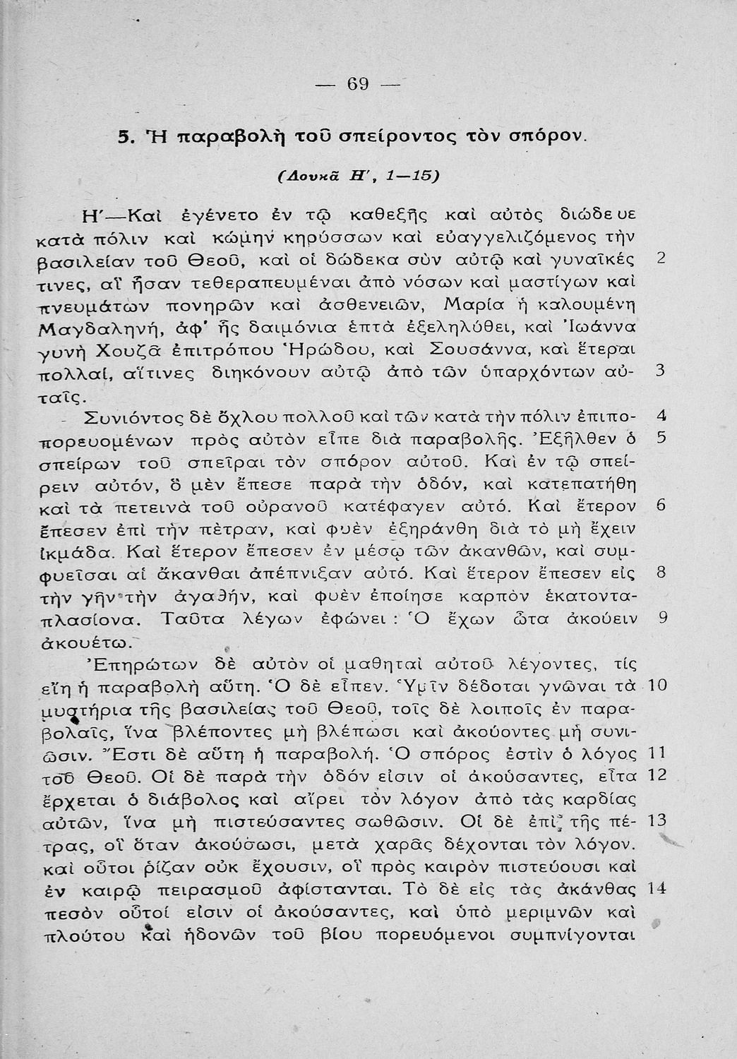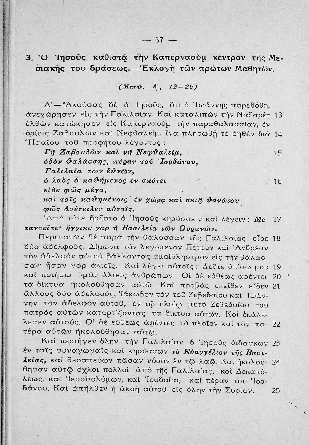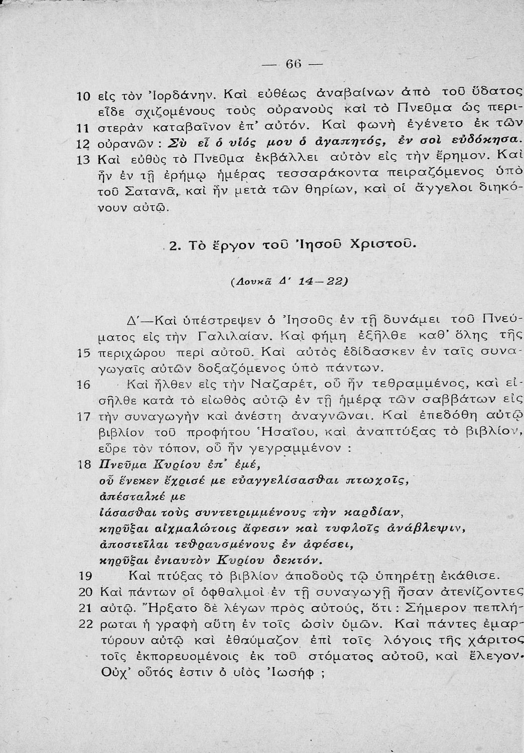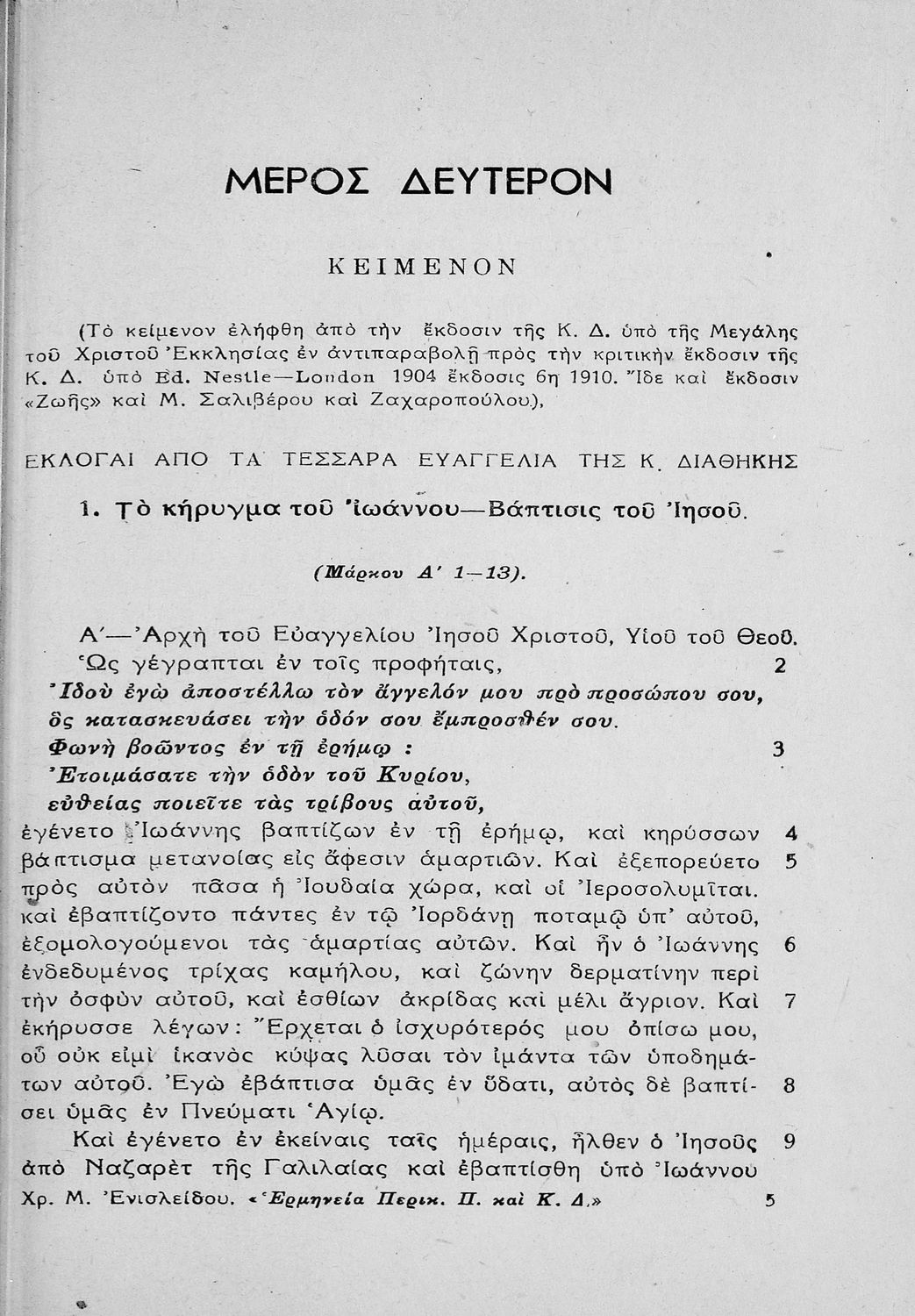 Σχολικό εγχειρίδιο Θρησκευτικών για την Γ΄ Γυμνασίου, τα Διδασκαλεία και τα Ανώτερα Παρθεναγωγεία που περιέχει περικοπές από τα βιβλία της Καινής Διαθήκης και ερμηνευτικές σημειώσεις.