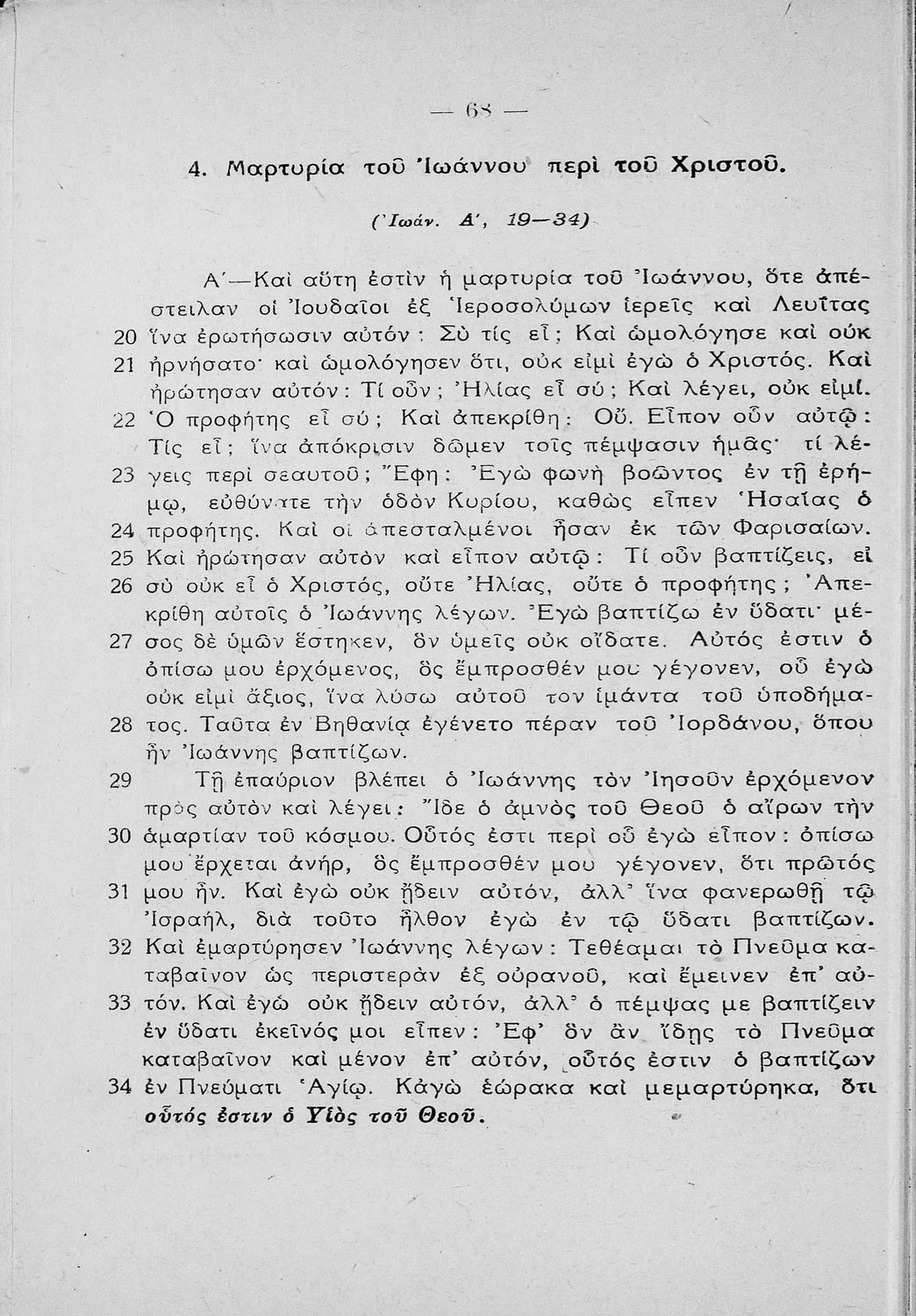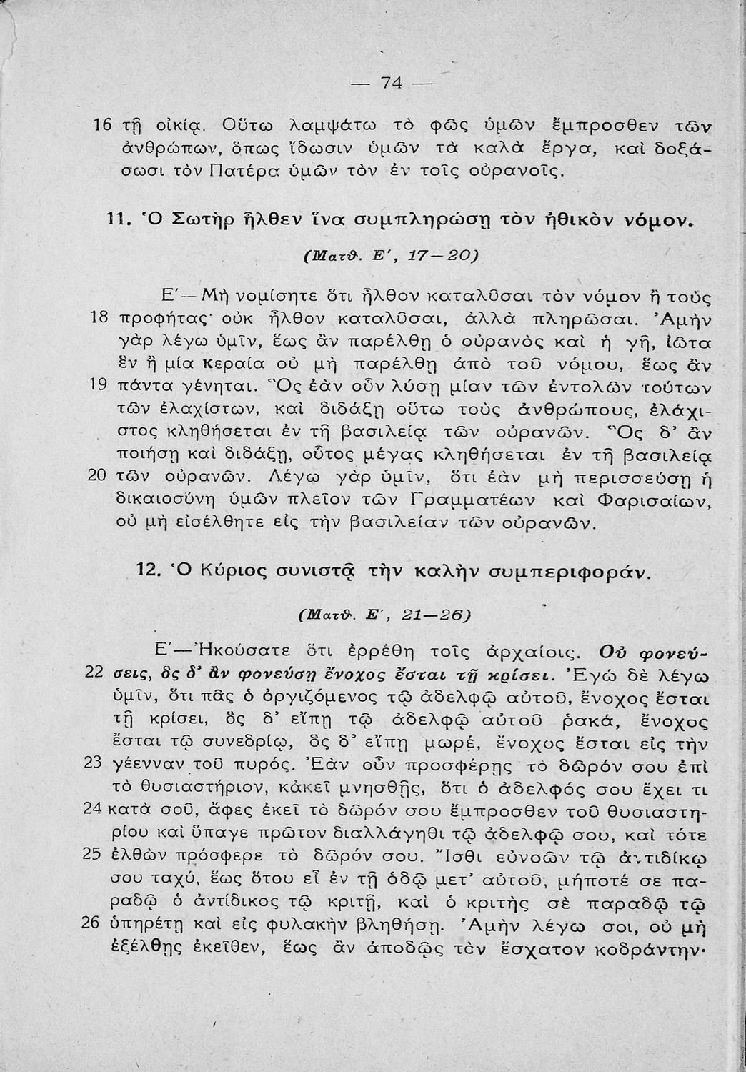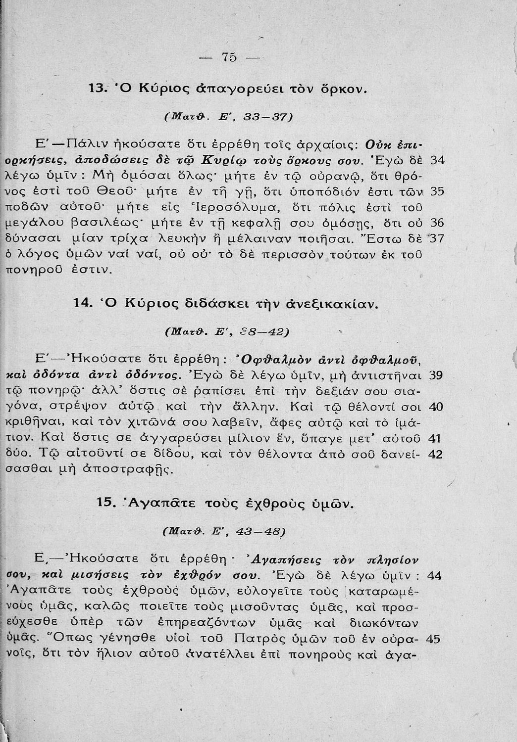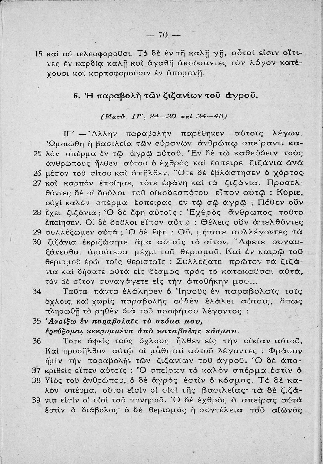 Σχολικό εγχειρίδιο Θρησκευτικών για την Γ΄ Γυμνασίου, τα Διδασκαλεία και τα Ανώτερα Παρθεναγωγεία που περιέχει περικοπές από τα βιβλία της Καινής Διαθήκης και ερμηνευτικές σημειώσεις.