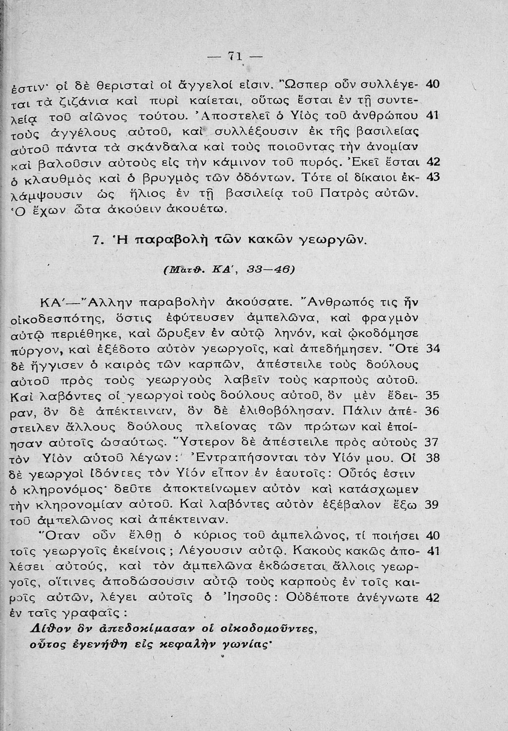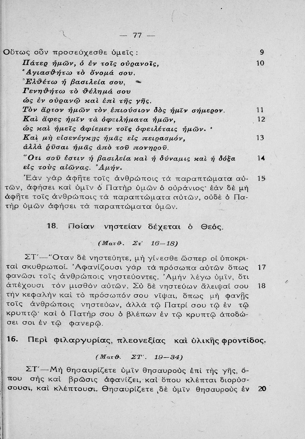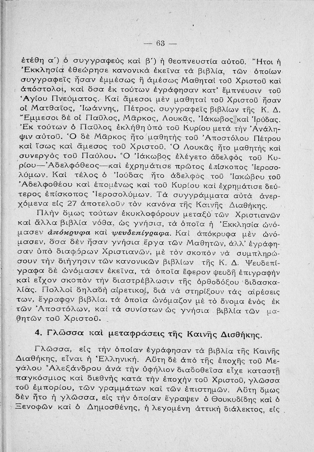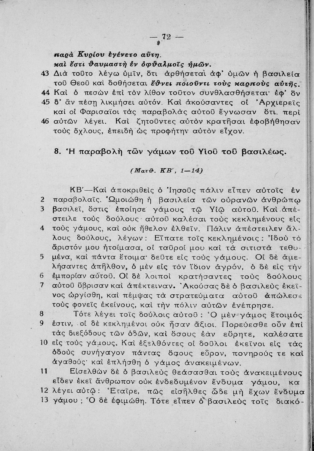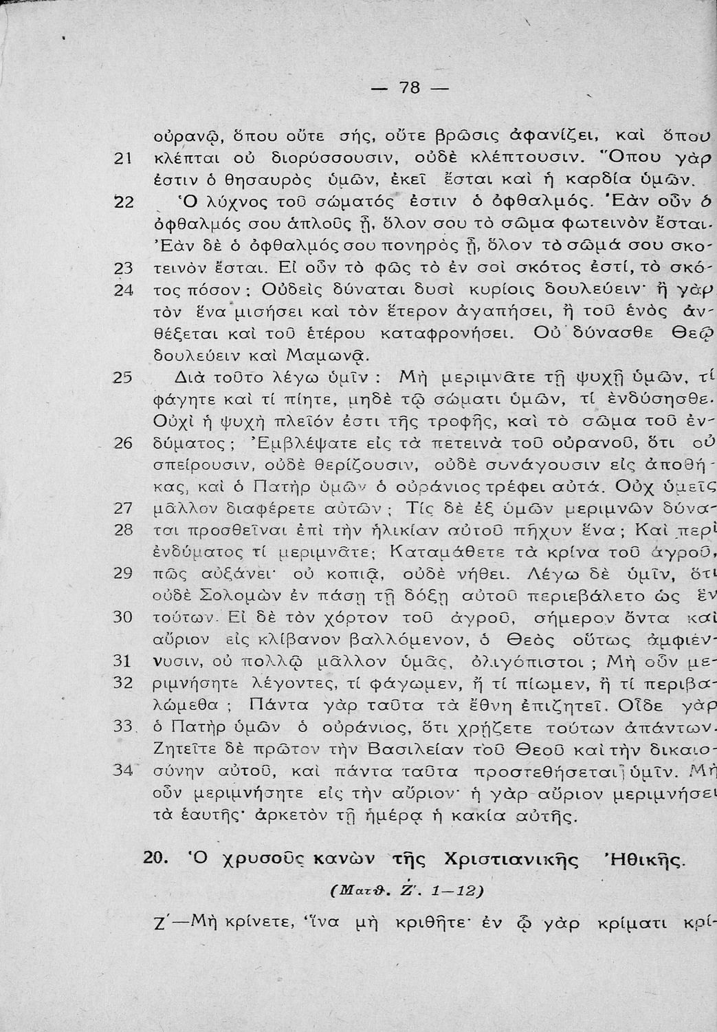 Σχολικό εγχειρίδιο Θρησκευτικών για την Γ΄ Γυμνασίου, τα Διδασκαλεία και τα Ανώτερα Παρθεναγωγεία που περιέχει περικοπές από τα βιβλία της Καινής Διαθήκης και ερμηνευτικές σημειώσεις.