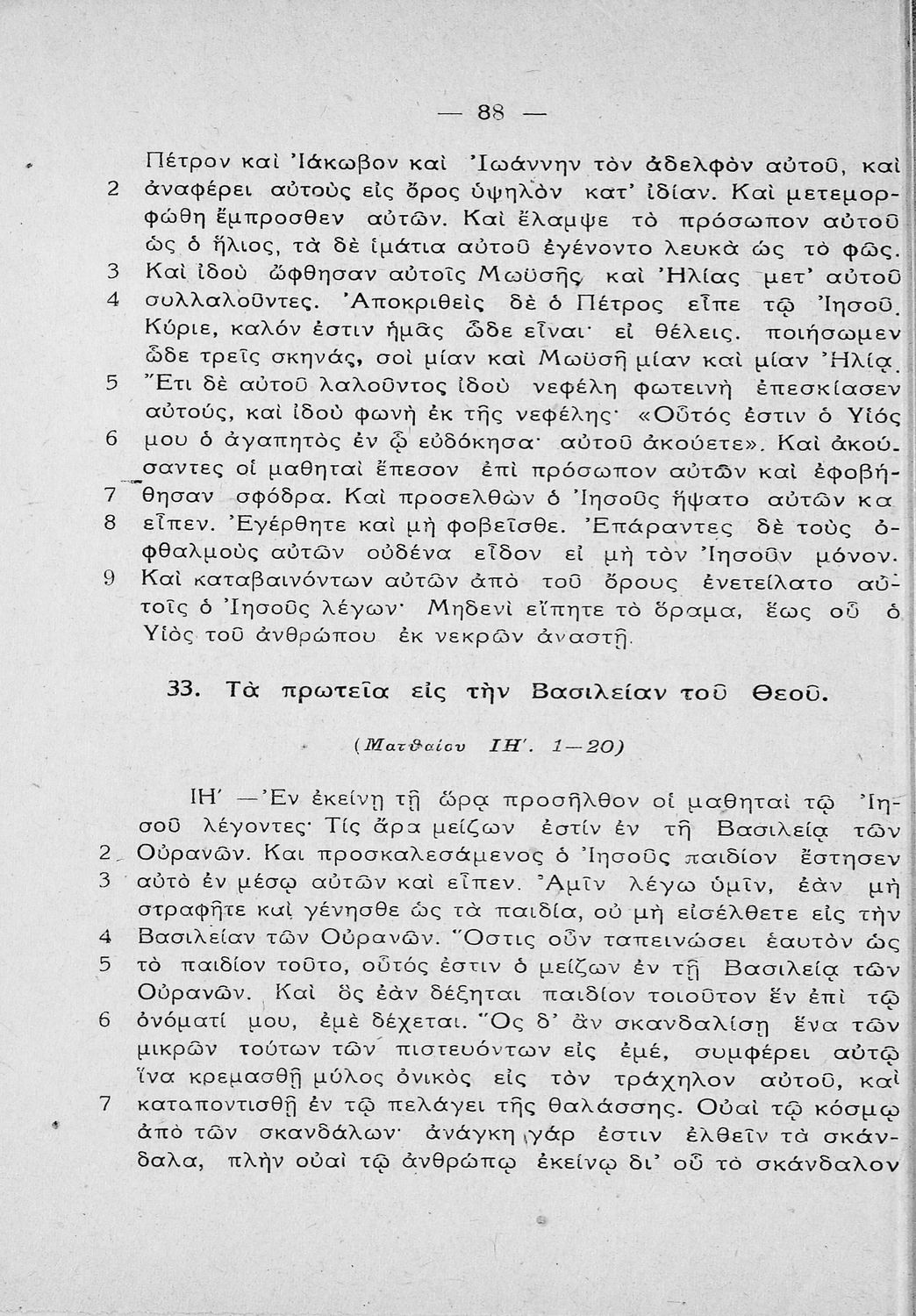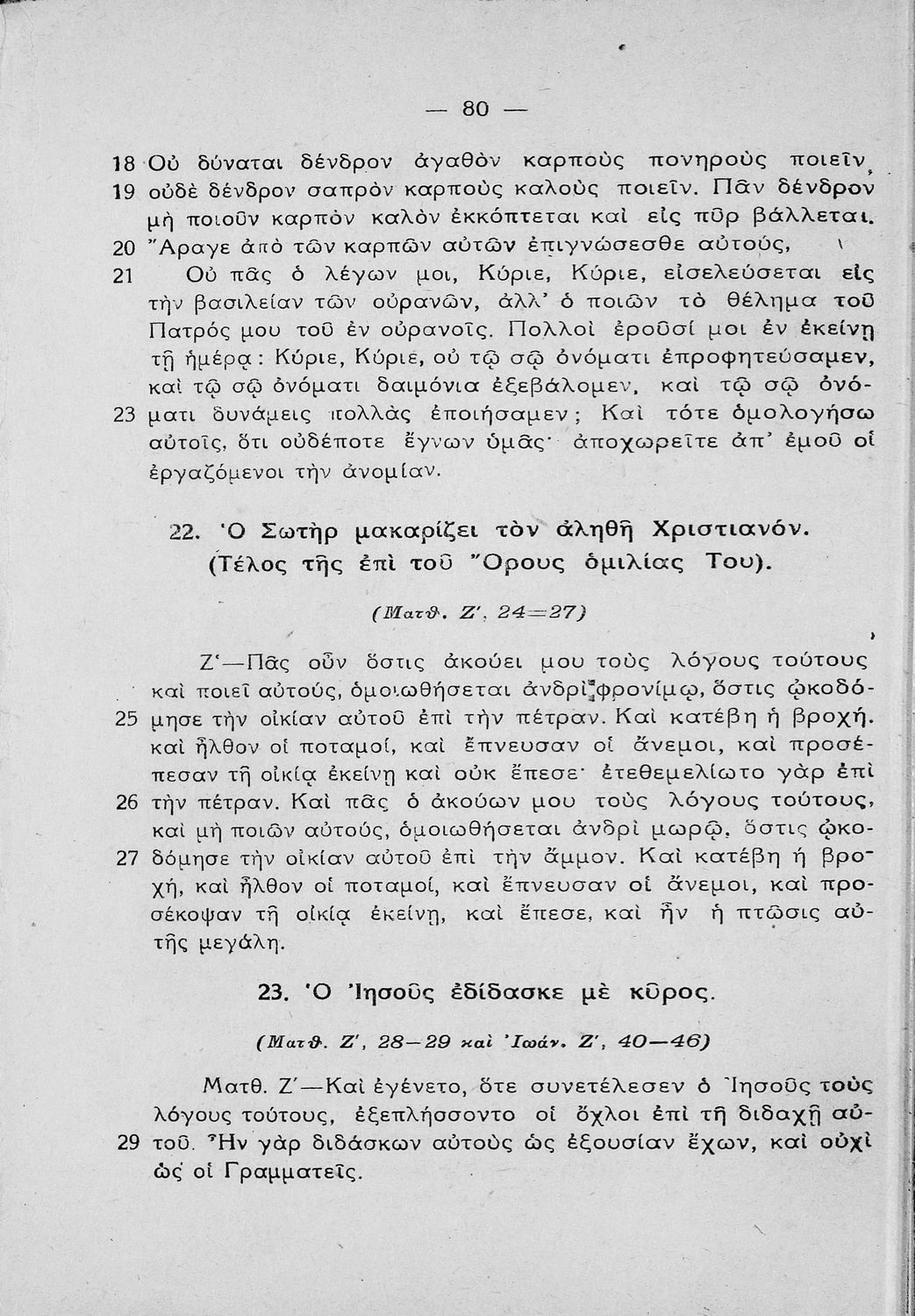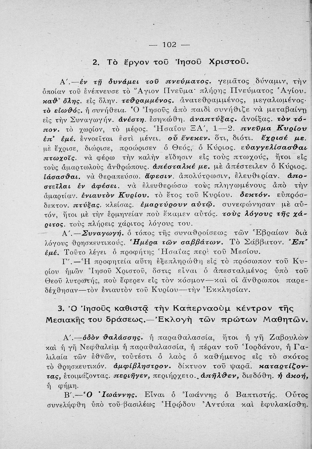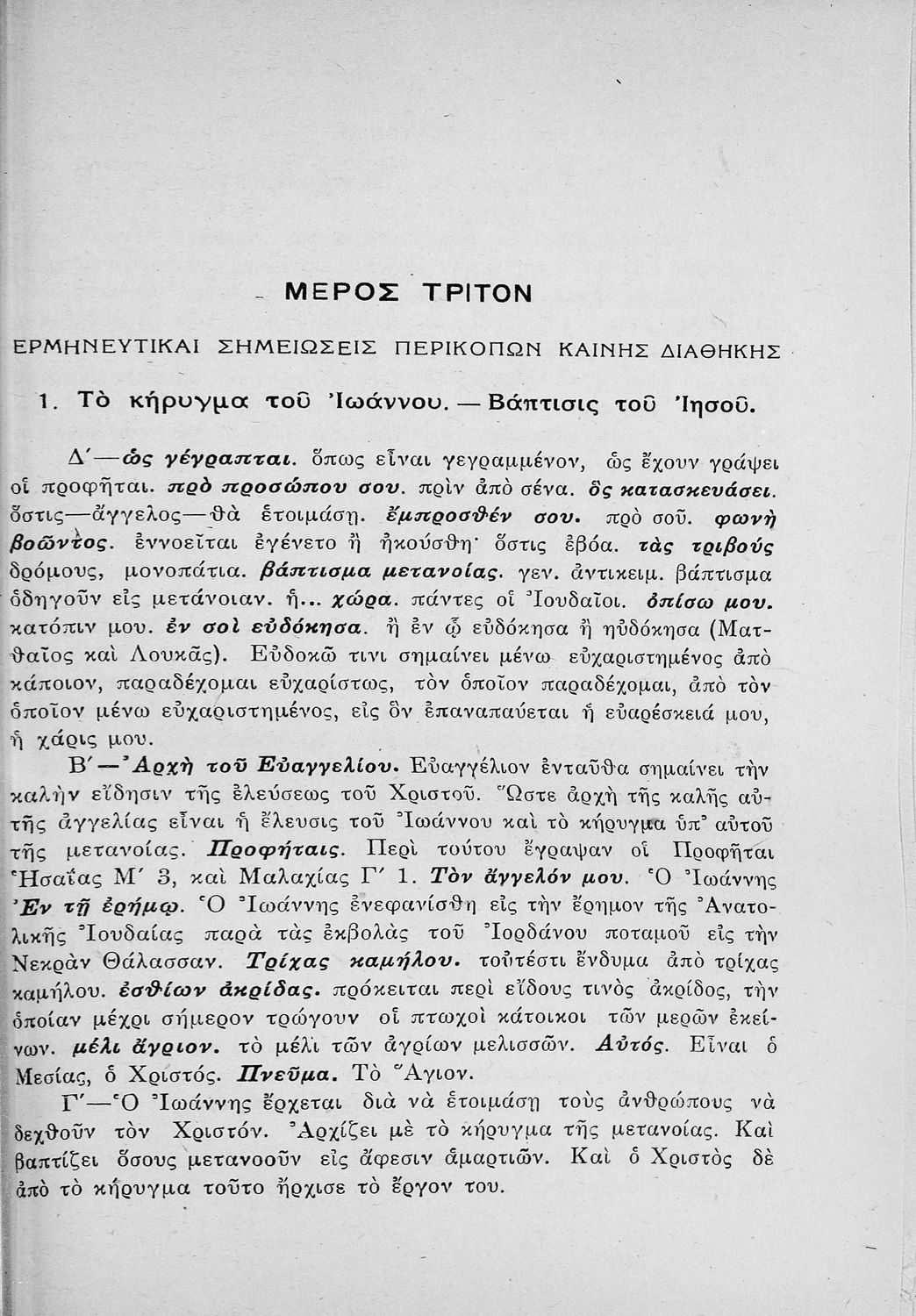 Σχολικό εγχειρίδιο Θρησκευτικών για την Γ΄ Γυμνασίου, τα Διδασκαλεία και τα Ανώτερα Παρθεναγωγεία που περιέχει περικοπές από τα βιβλία της Καινής Διαθήκης και ερμηνευτικές σημειώσεις.