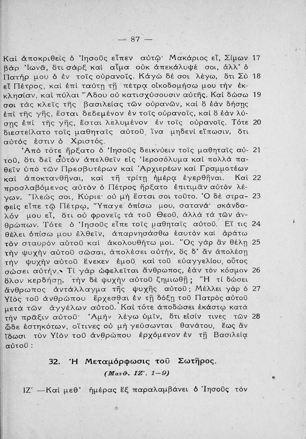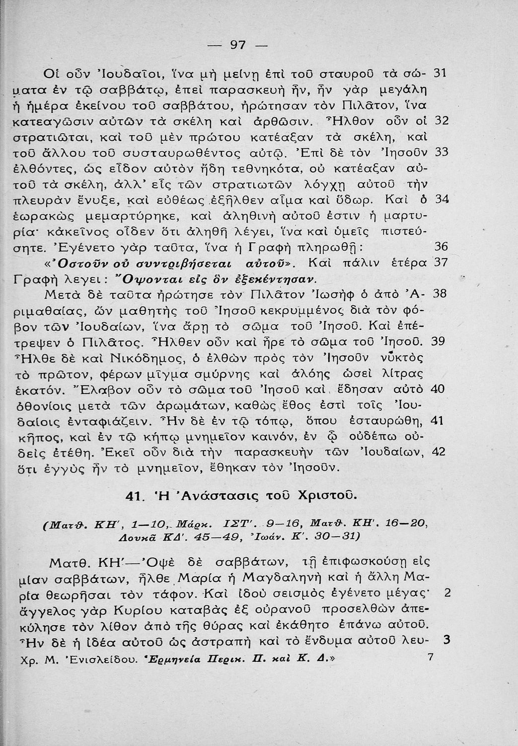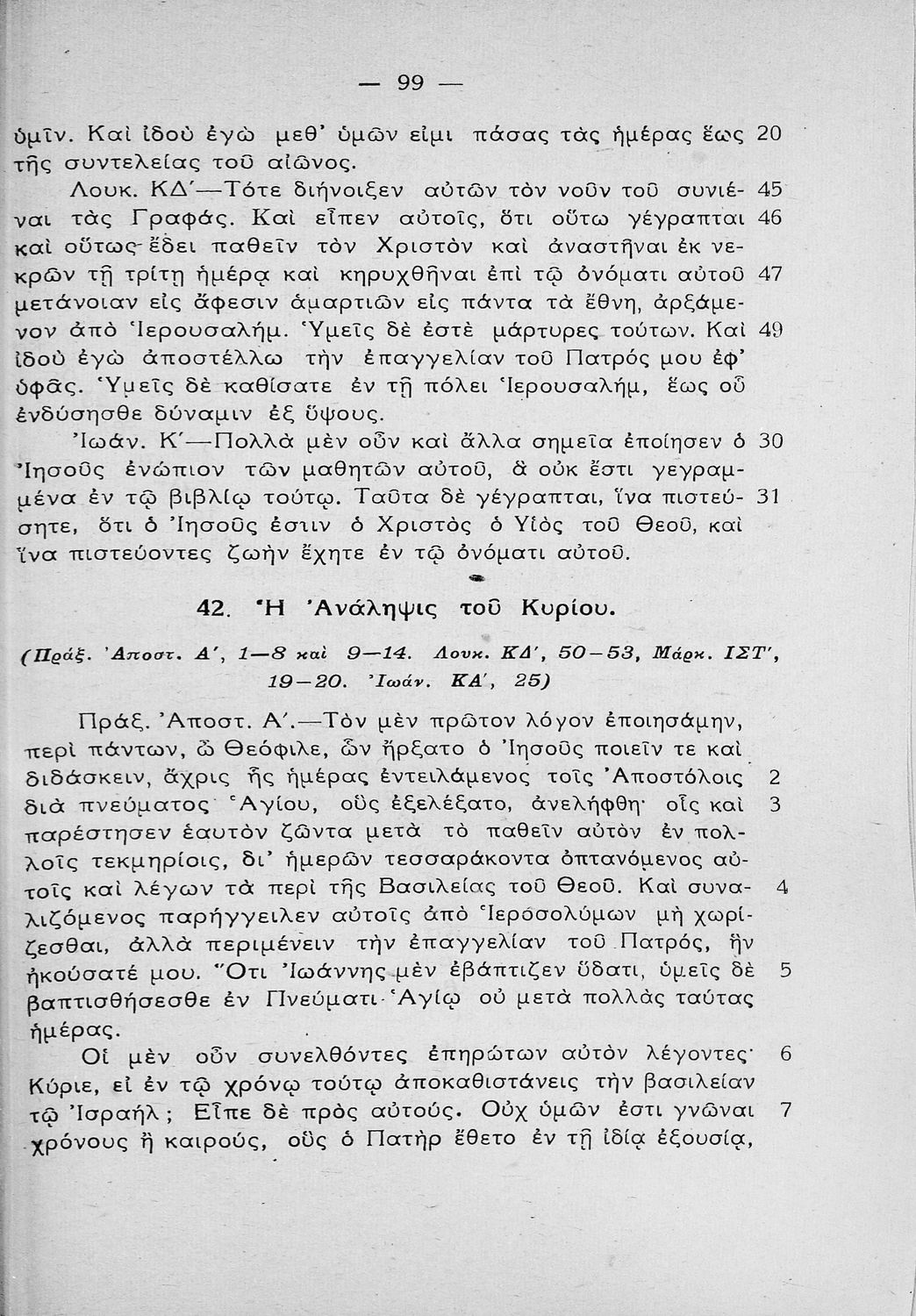 Σχολικό εγχειρίδιο Θρησκευτικών για την Γ΄ Γυμνασίου, τα Διδασκαλεία και τα Ανώτερα Παρθεναγωγεία που περιέχει περικοπές από τα βιβλία της Καινής Διαθήκης και ερμηνευτικές σημειώσεις.